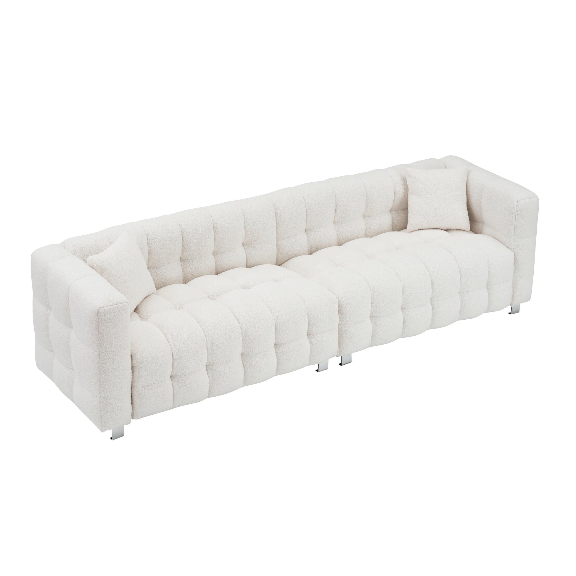 Divano moderno imbottito a 4 posti, divano in velluto 102 con 2 cuscini decorativi e supporto per i piedi per soggiorno e appartamento