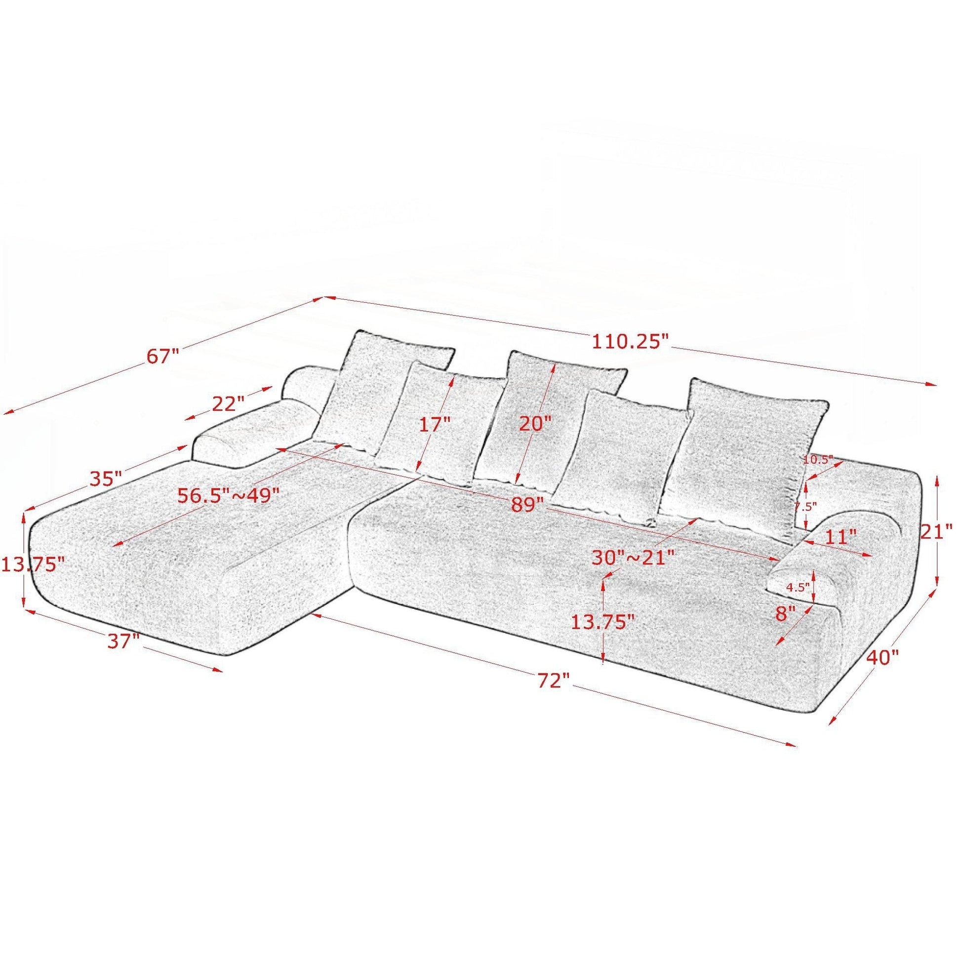 Dimensioni dei sedili: 67'P x 110,25'W x 21'H