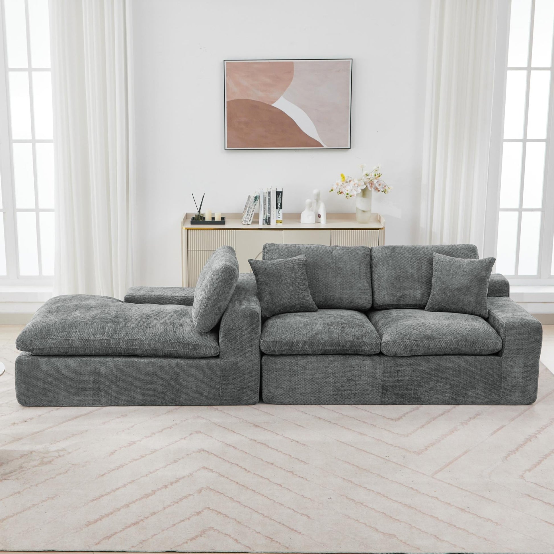 Divano componibile modulare Chenille Cloud con cuscini a...
