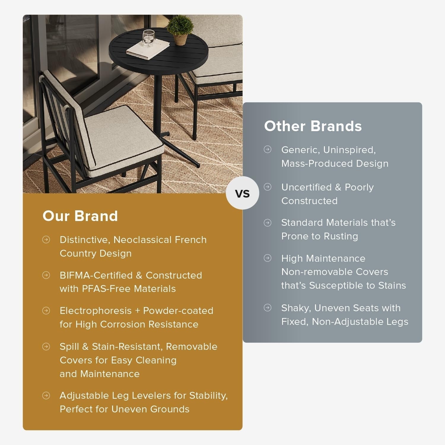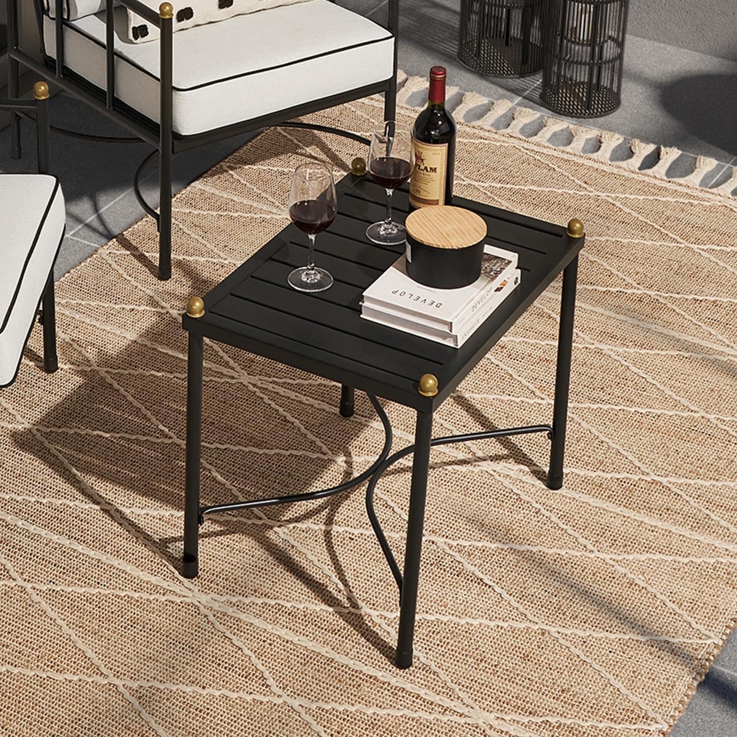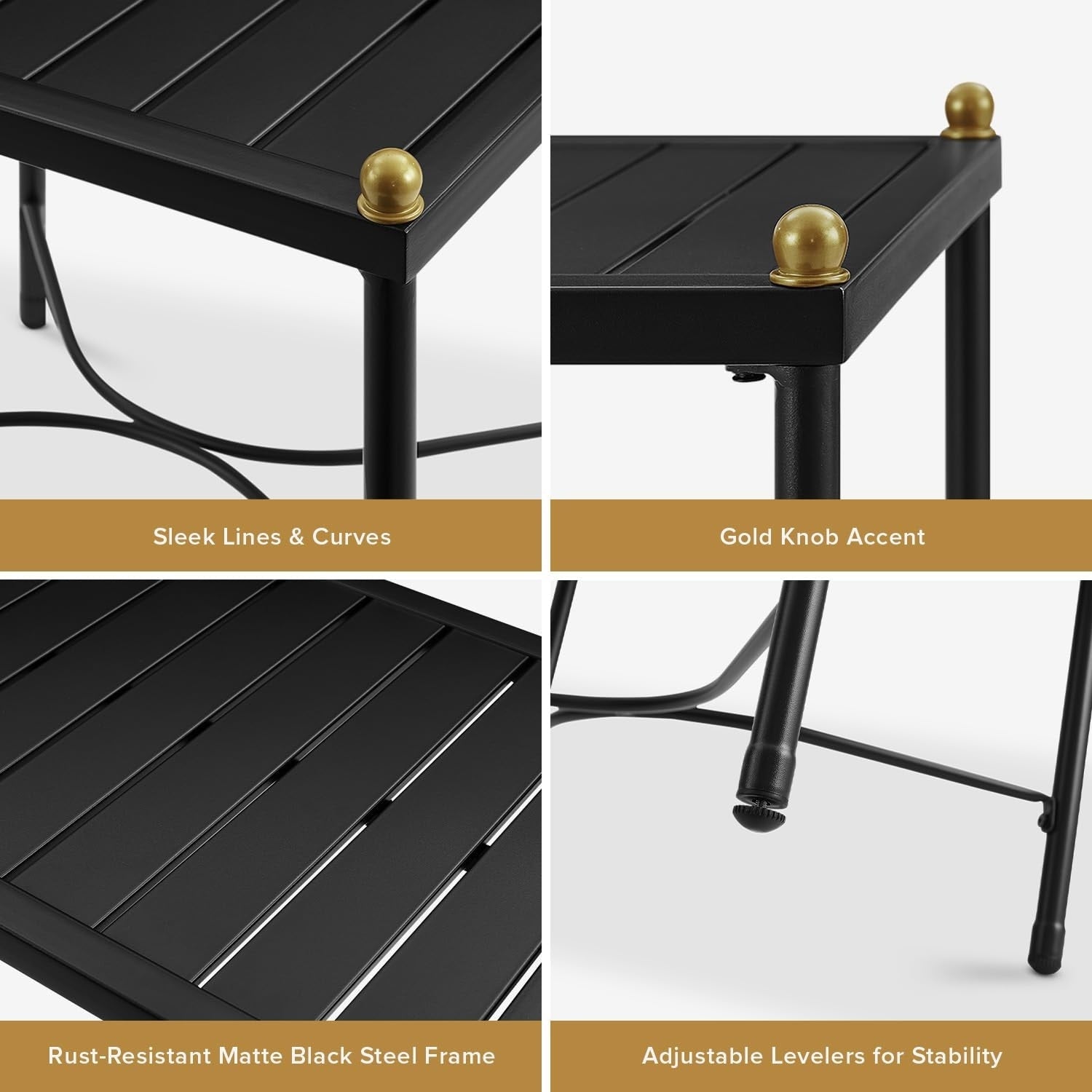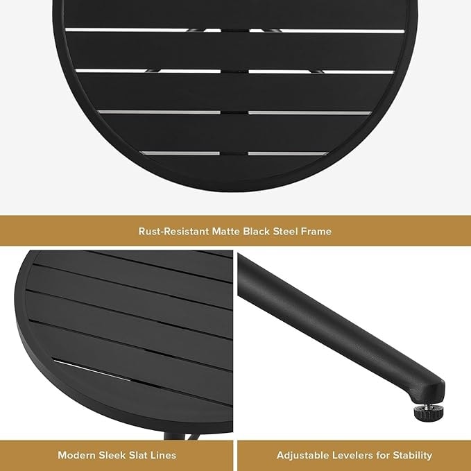 Set da patio 3 pezzi nero e oro