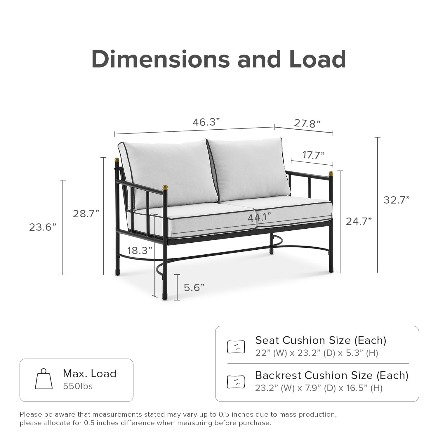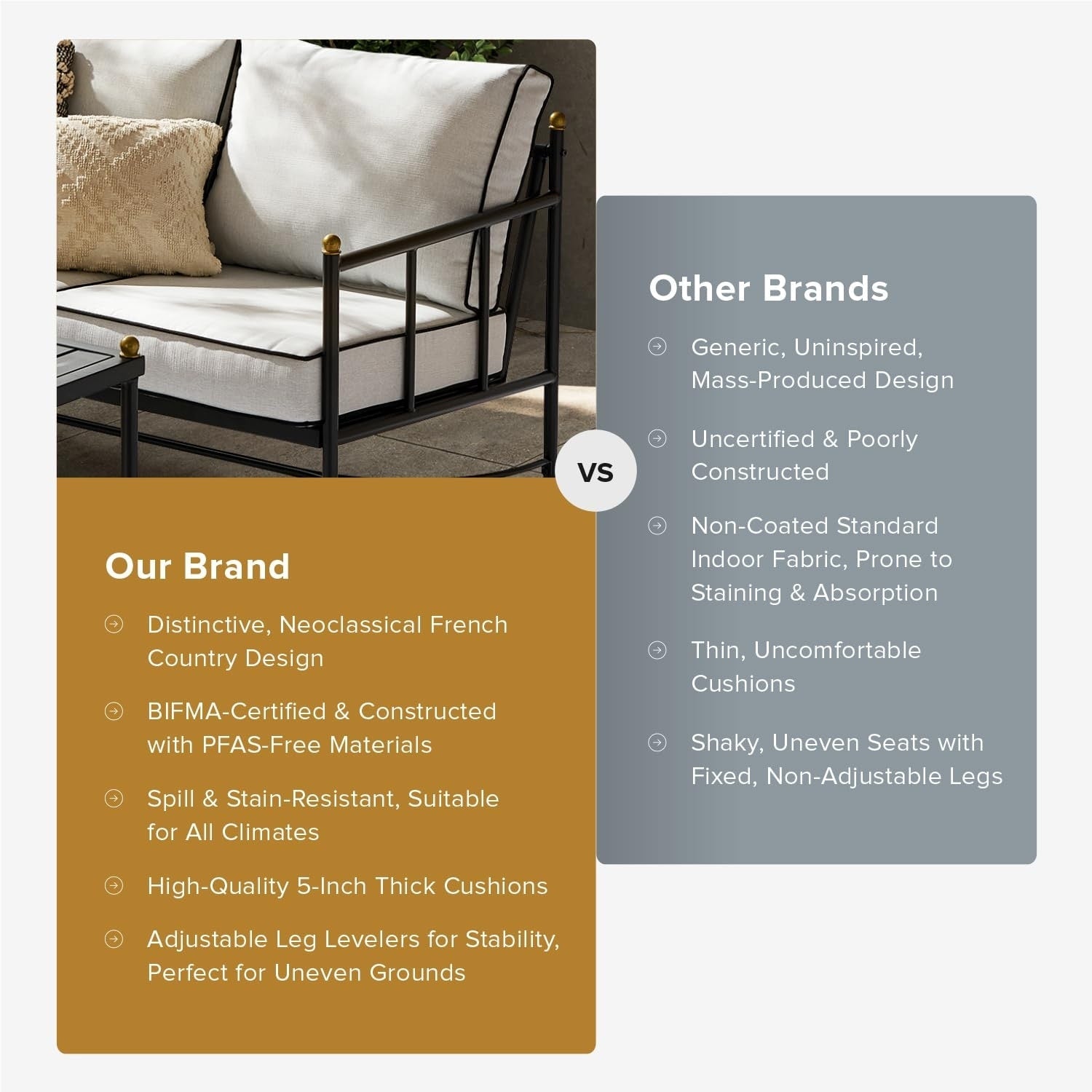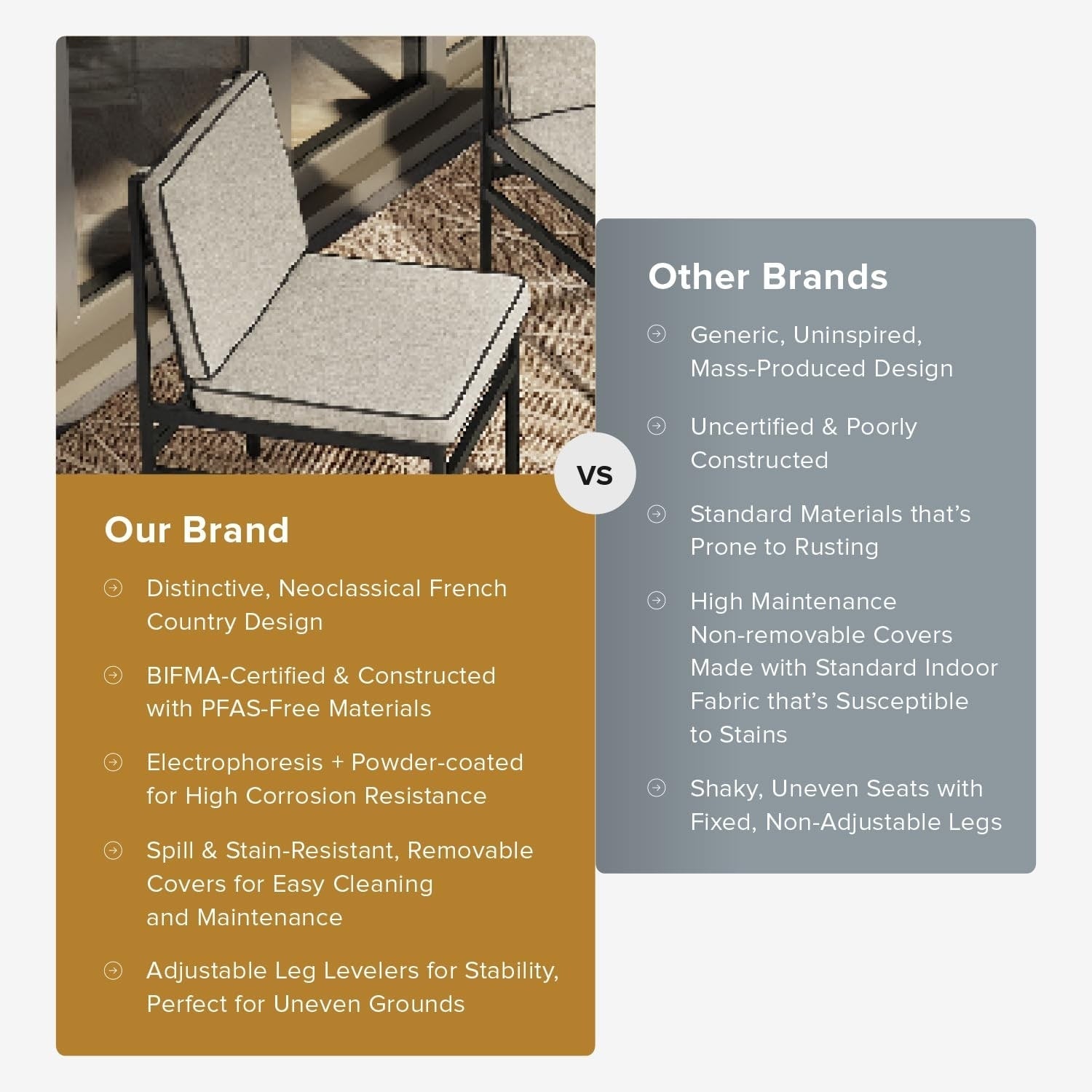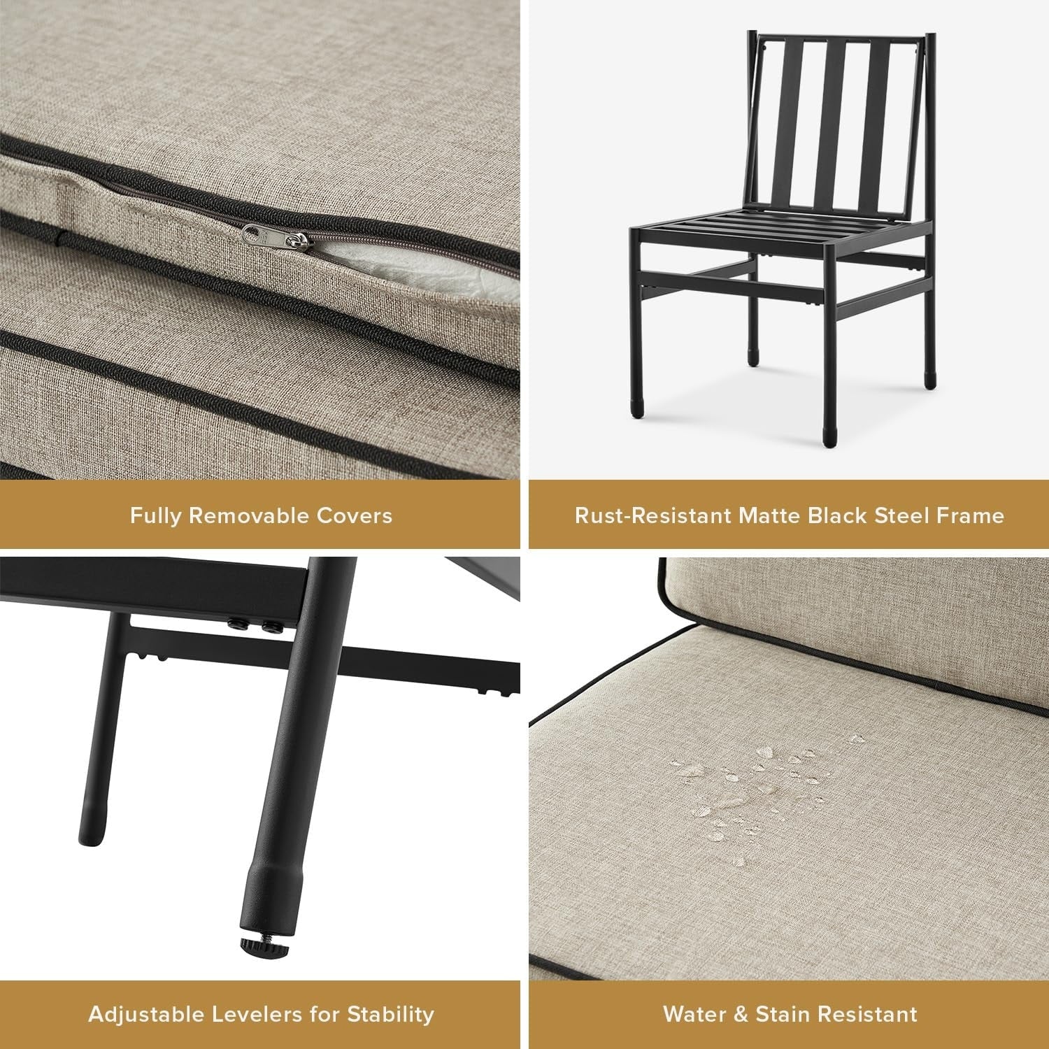Set da patio 3 pezzi nero e oro