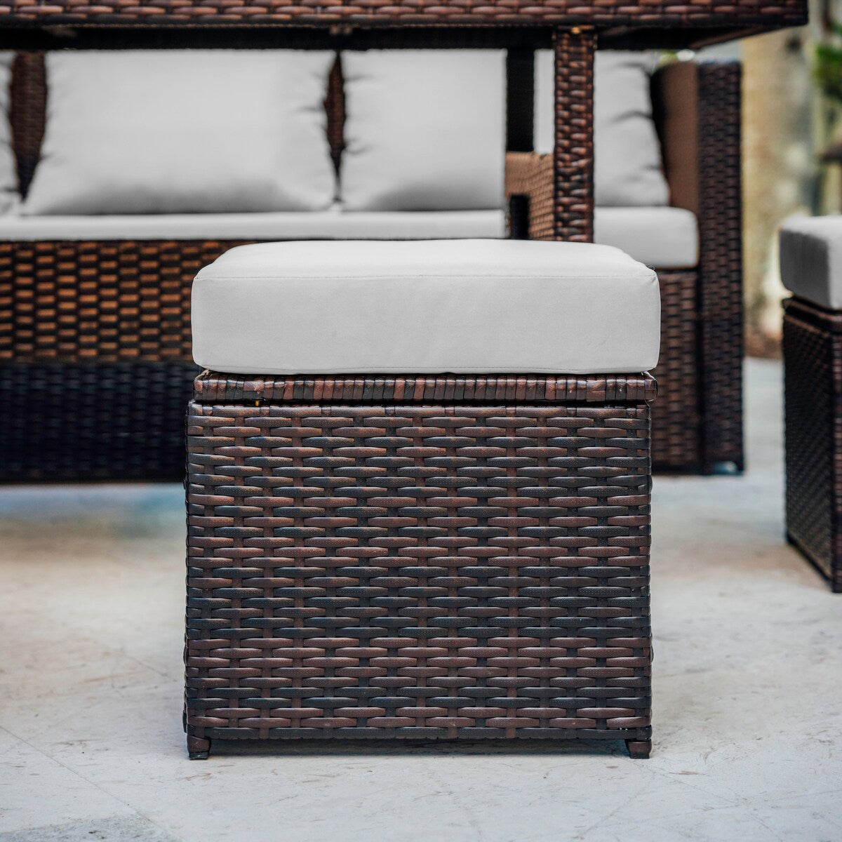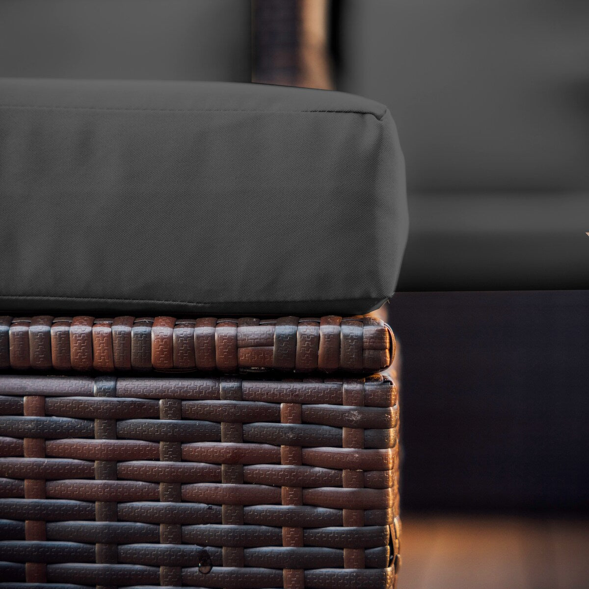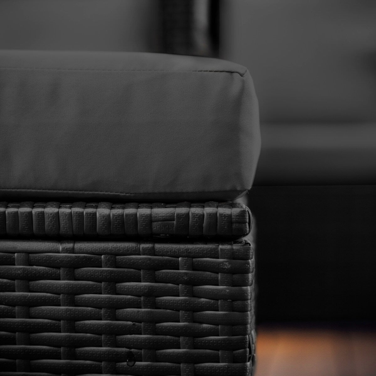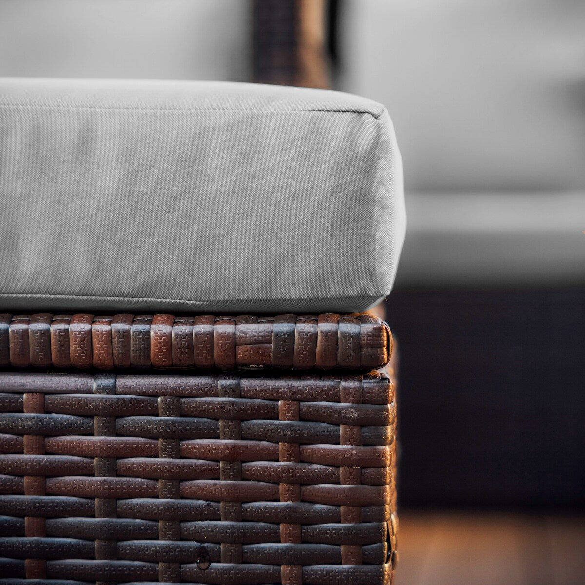 Trasforma il tuo patio o terrazzo in un accogliente spazio all'aperto con il set da pranzo in vimini Nestlè da 7 pezzi, che include un tavolo da pranzo, tre pouf e tre panche che possono essere combinati per formare un ampio divano a L. Rilassati sui morbidi cuscini di seduta e appoggiati sui cuscini dello schienale, riunendoti attorno all'ampio e robusto tavolo da pranzo con la famiglia e gli amici. Realizzato in resistente acciaio zincato e intrecciato in polyrattan con piano del tavolo in poliresina, questo splendido set di mobili da giardino è impermeabile e resistente alle intemperie, garantendo anni di divertimento.