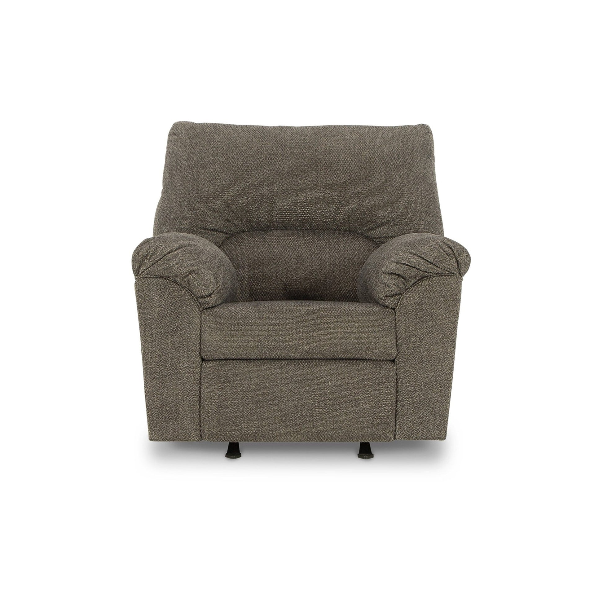 Rilassati nel massimo comfort con questa poltrona reclinabile. Rivestita in morbido poliestere grigio, è dotata di braccioli con cuscino e cuscini in schiuma ad alta resilienza per un supporto duraturo. Un delicato movimento oscillante e un meccanismo di reclinazione con una sola mano assicurano un facile relax, mentre la robusta struttura con blocchi angolari ne aumenta la durata. Esplora la nostra collezione Noto per ulteriori opzioni.