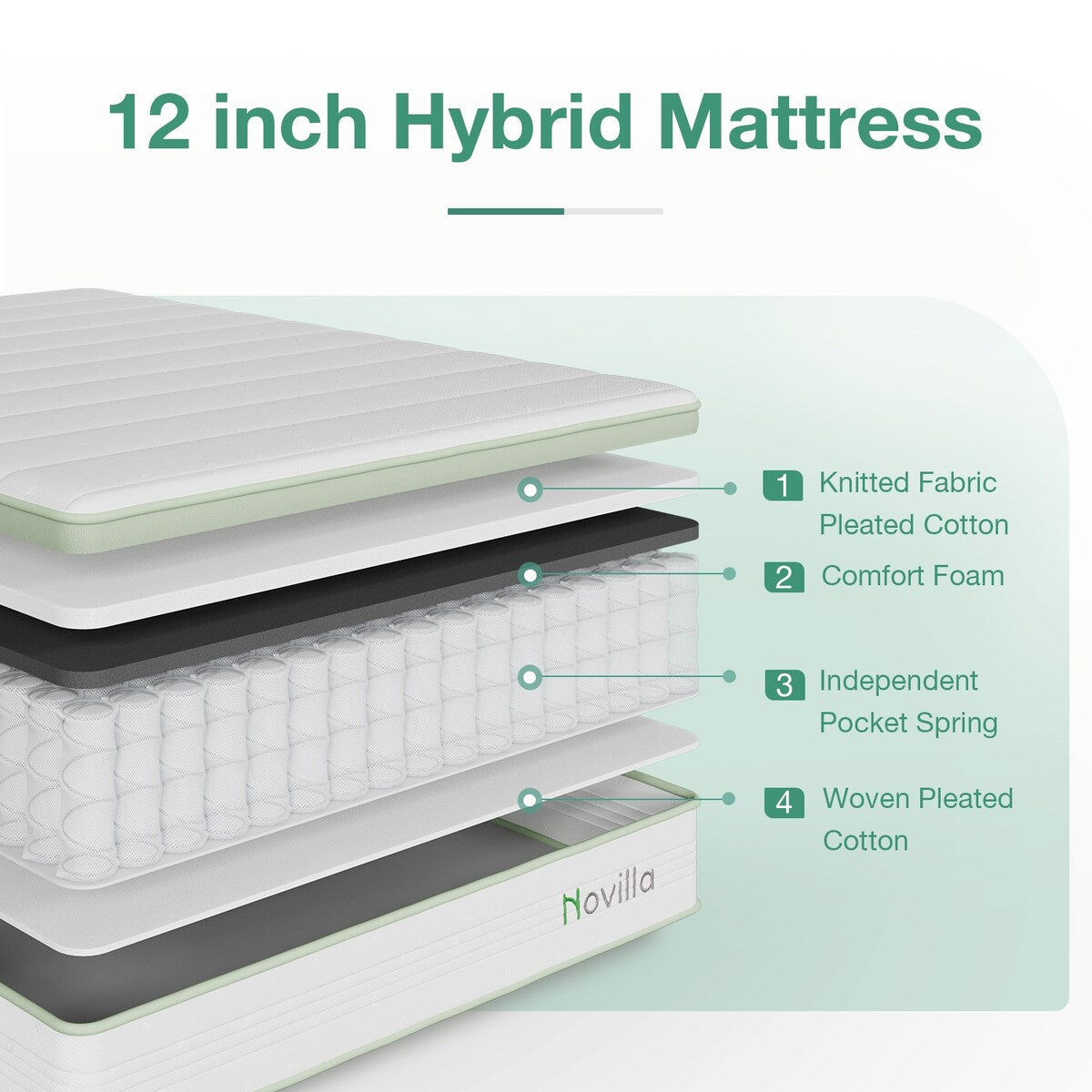 Materasso in schiuma ibrida a molle interne Novilla da 12 pollici