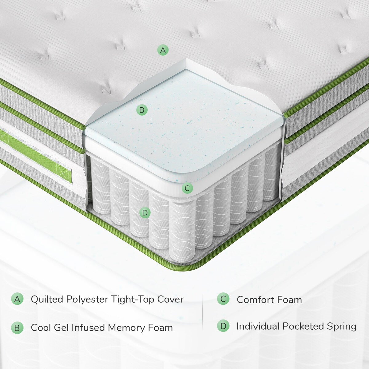 Materasso ibrido a molle insacchettate in memory foam gel Novilla da 12 pollici