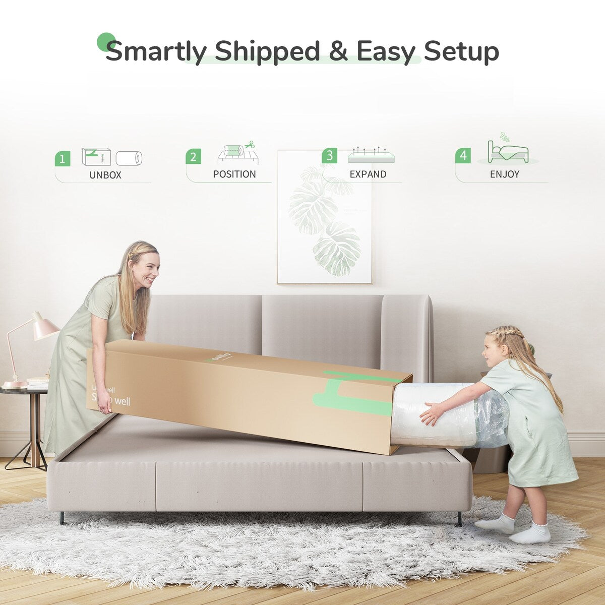 • Materasso ibrido Novilla queen size in una scatola che viene compressa e arrotolata per la spedizione e una facile installazione, anche i tuoi bambini possono aiutarti