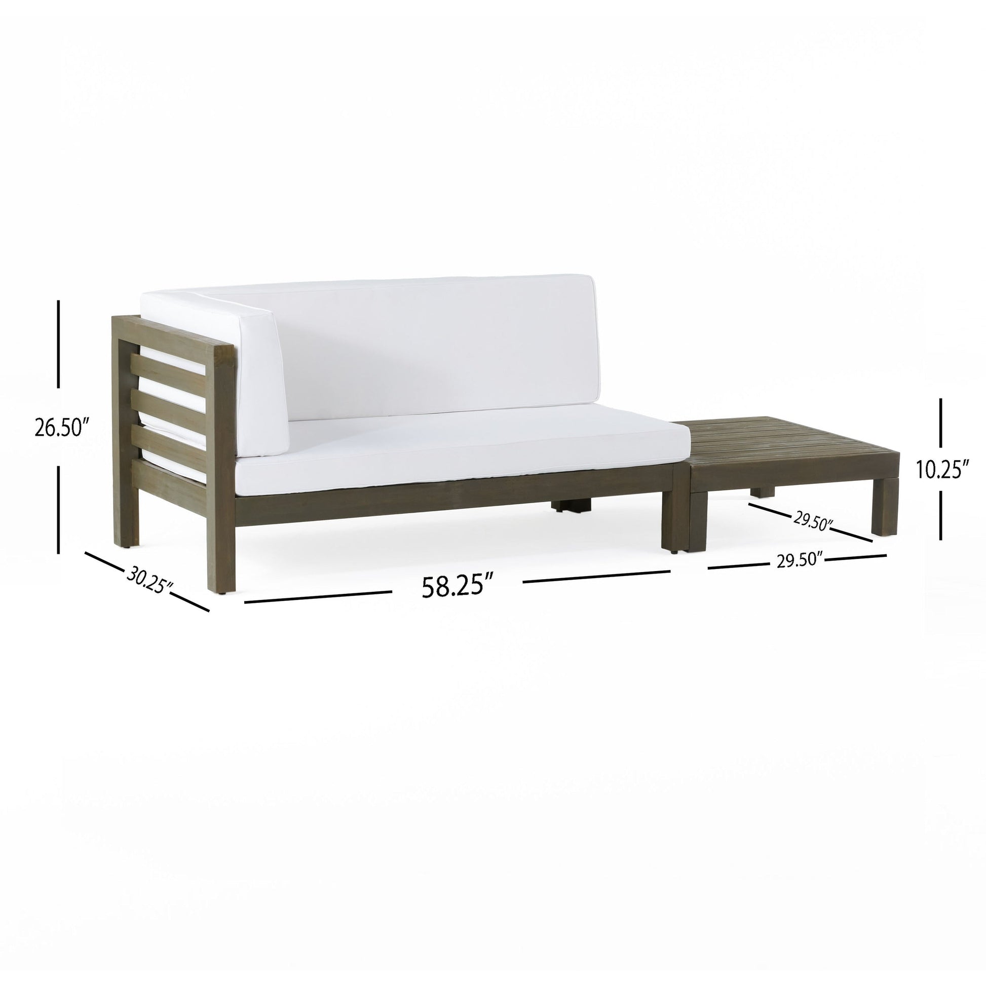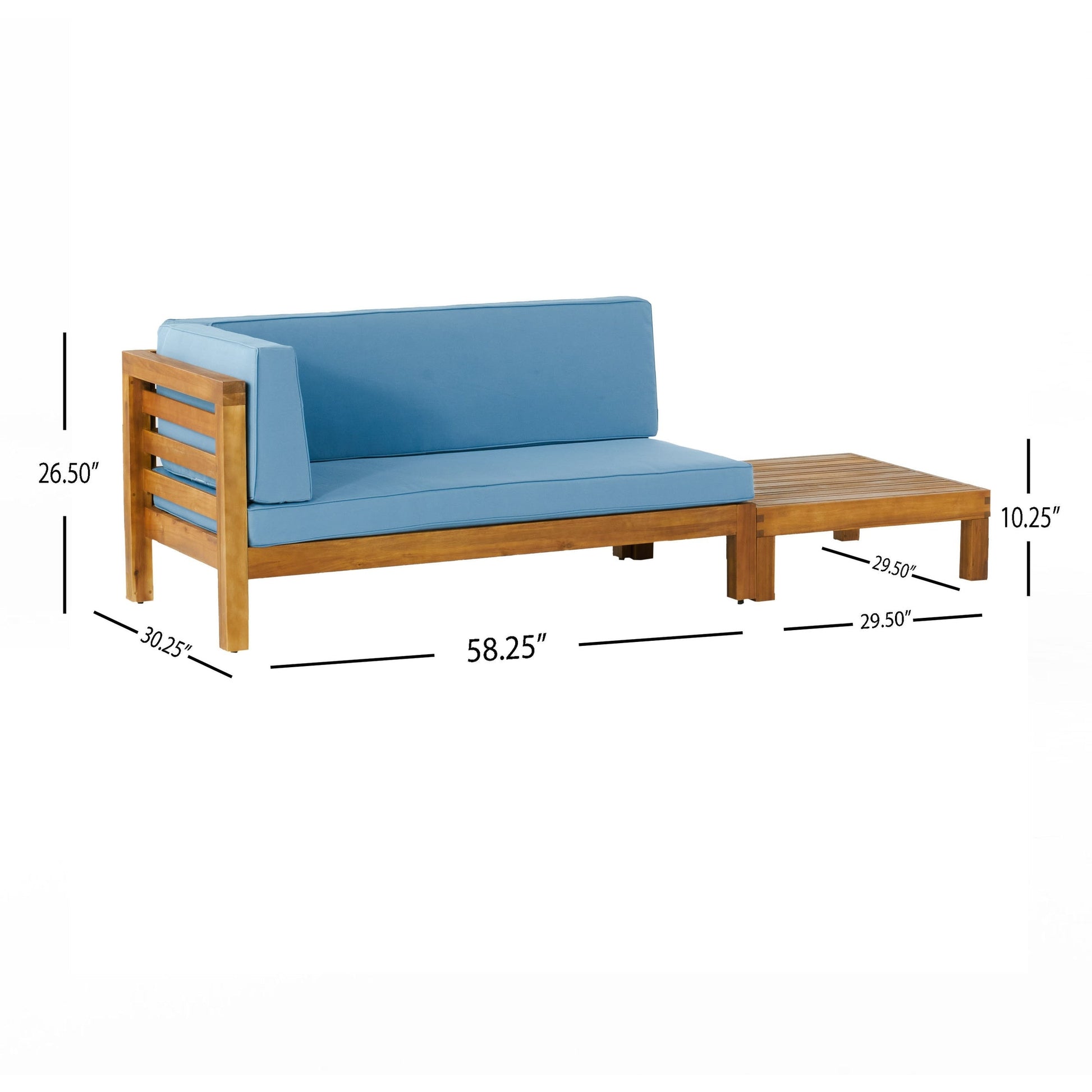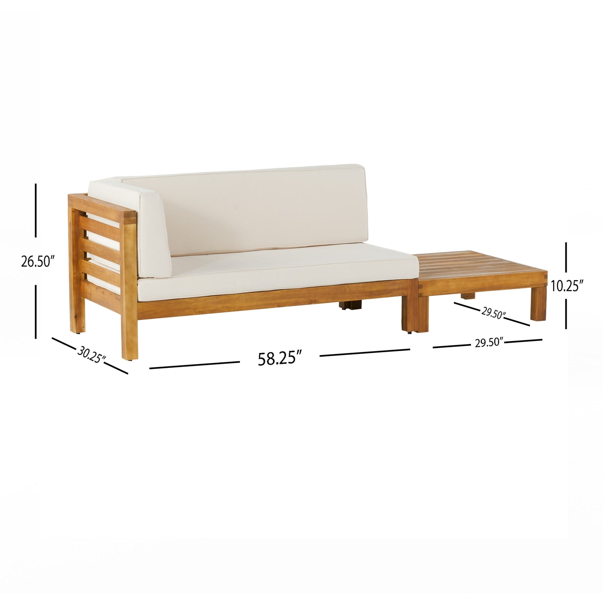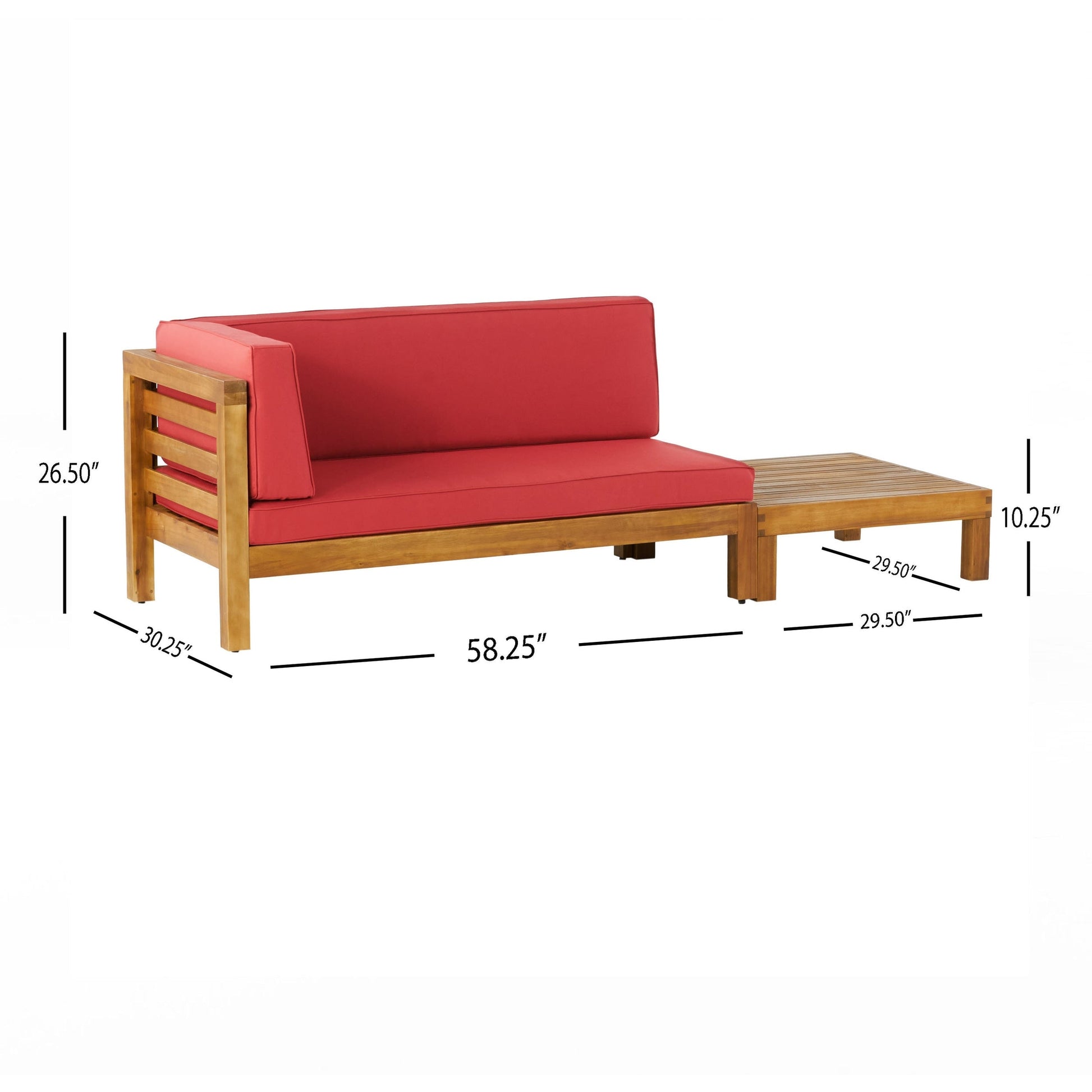 Set di divano a due posti e tavolino da caffè con bracciolo sinistro in legno di acacia Oana per esterni con cuscino di Christopher Knight Home