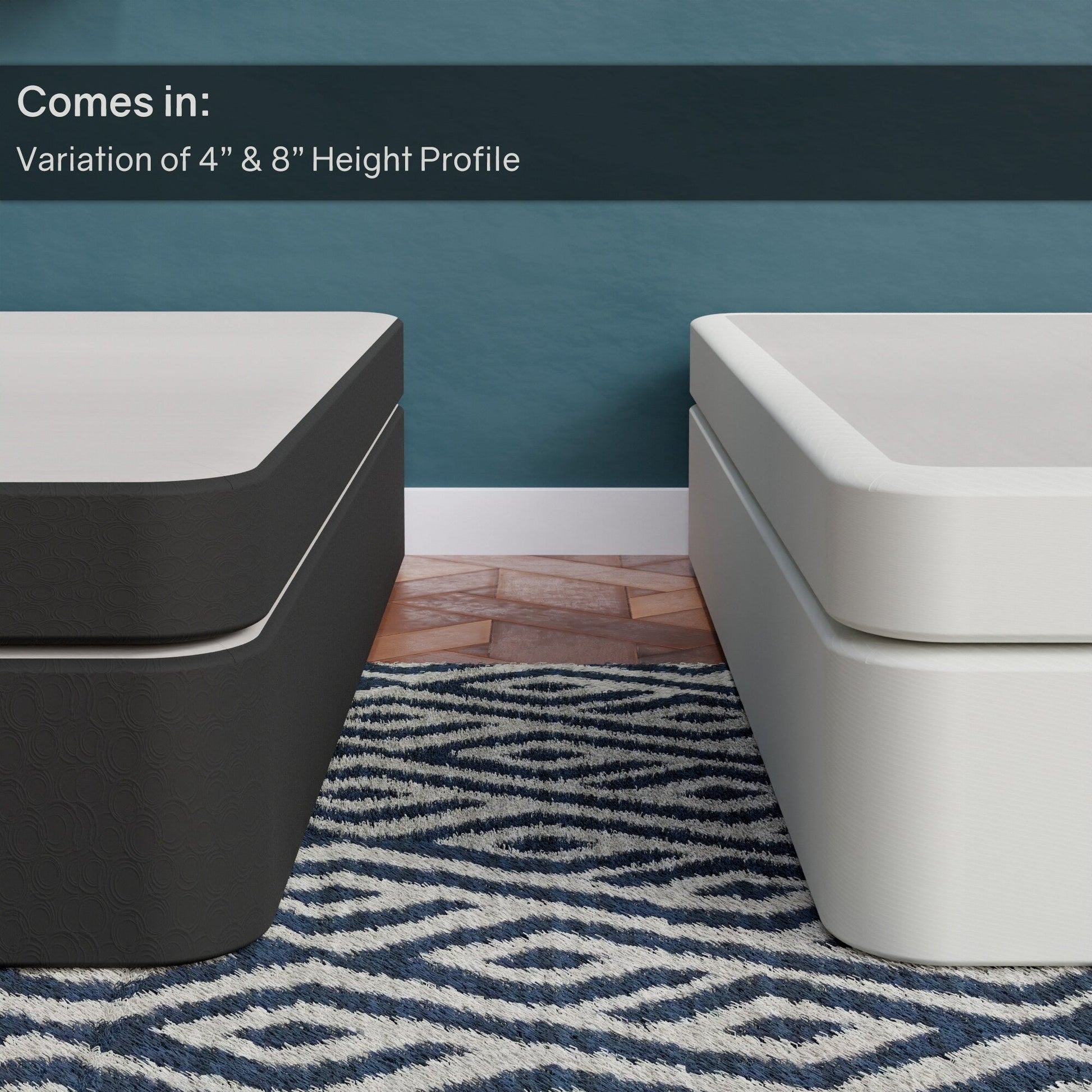 • Design a basso profilo con altezza di 4 pollici per materassi alti o altezza di 8 pollici per materassi bassi