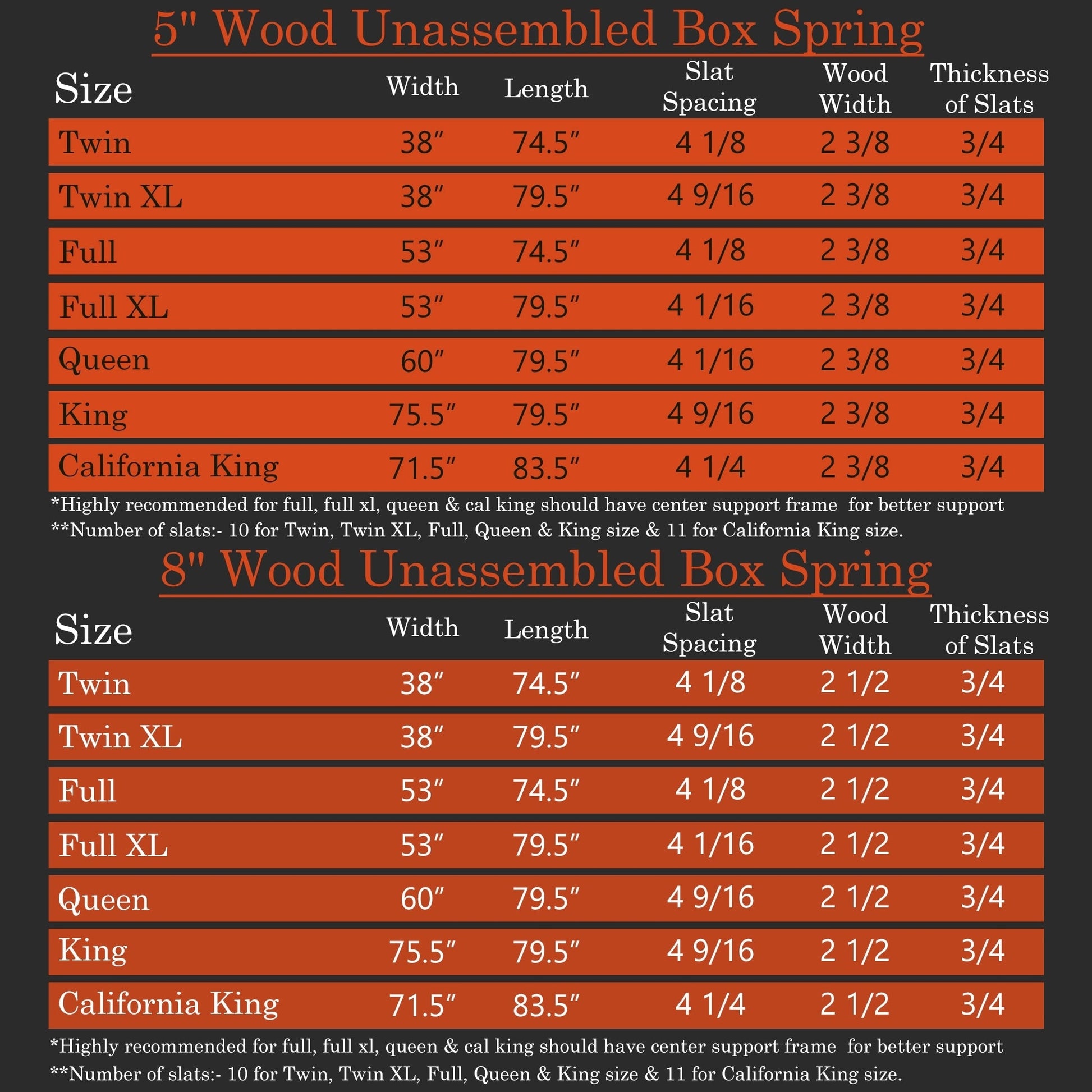 ONETAN, box spring/fondazione in legno da 5" e 8" con montaggio semplice, bianco.