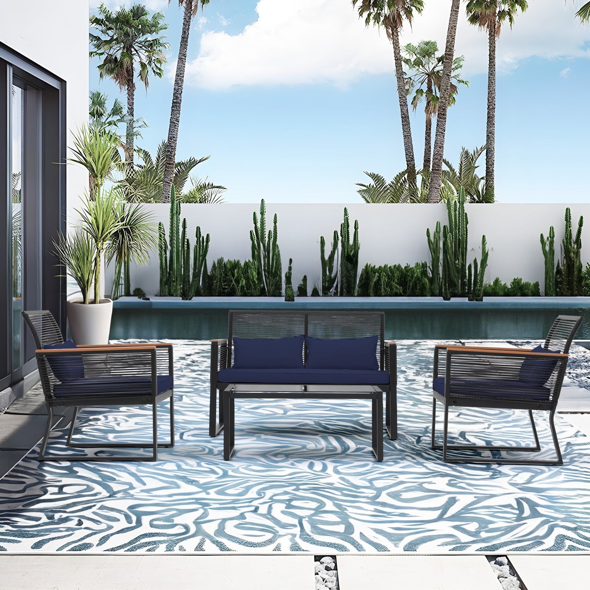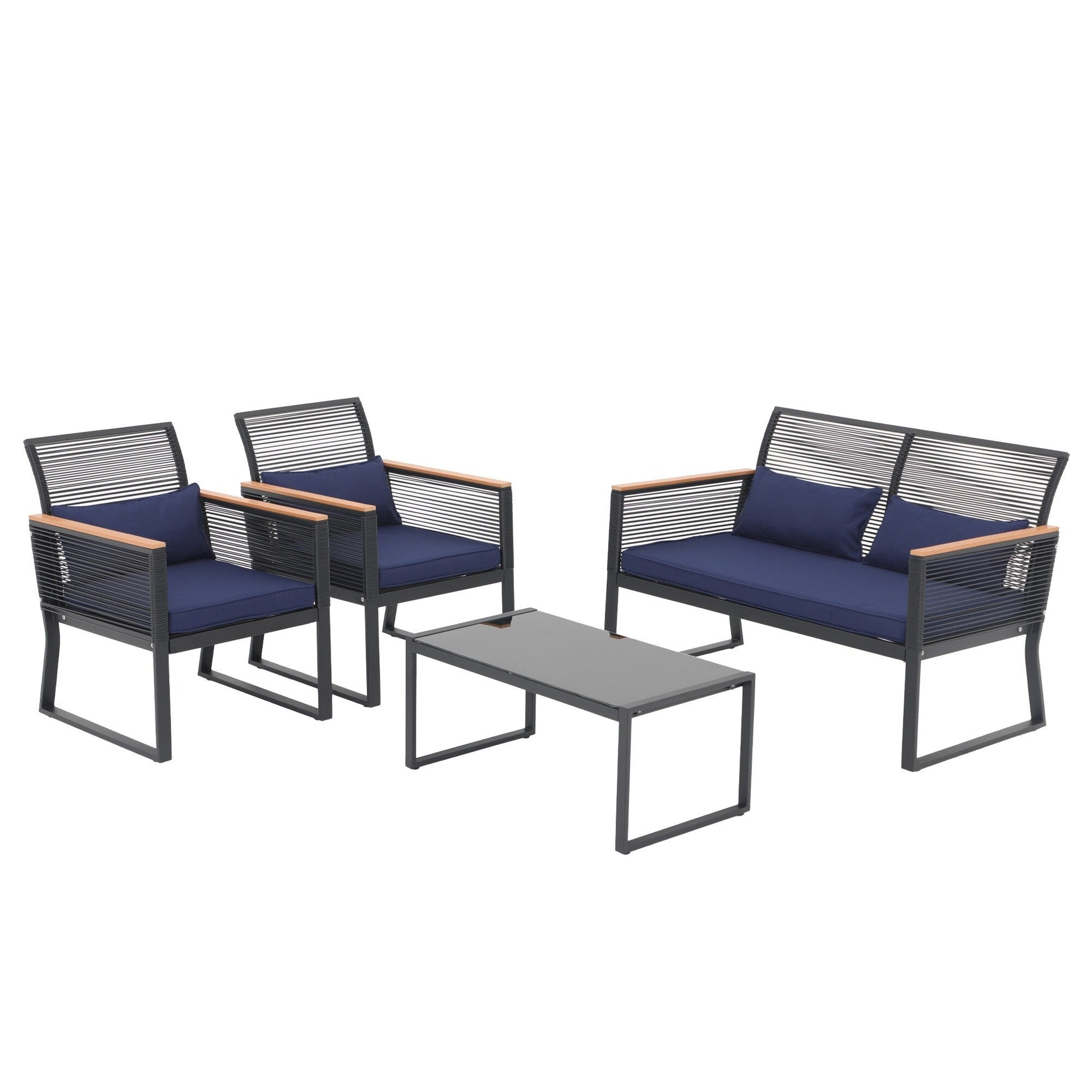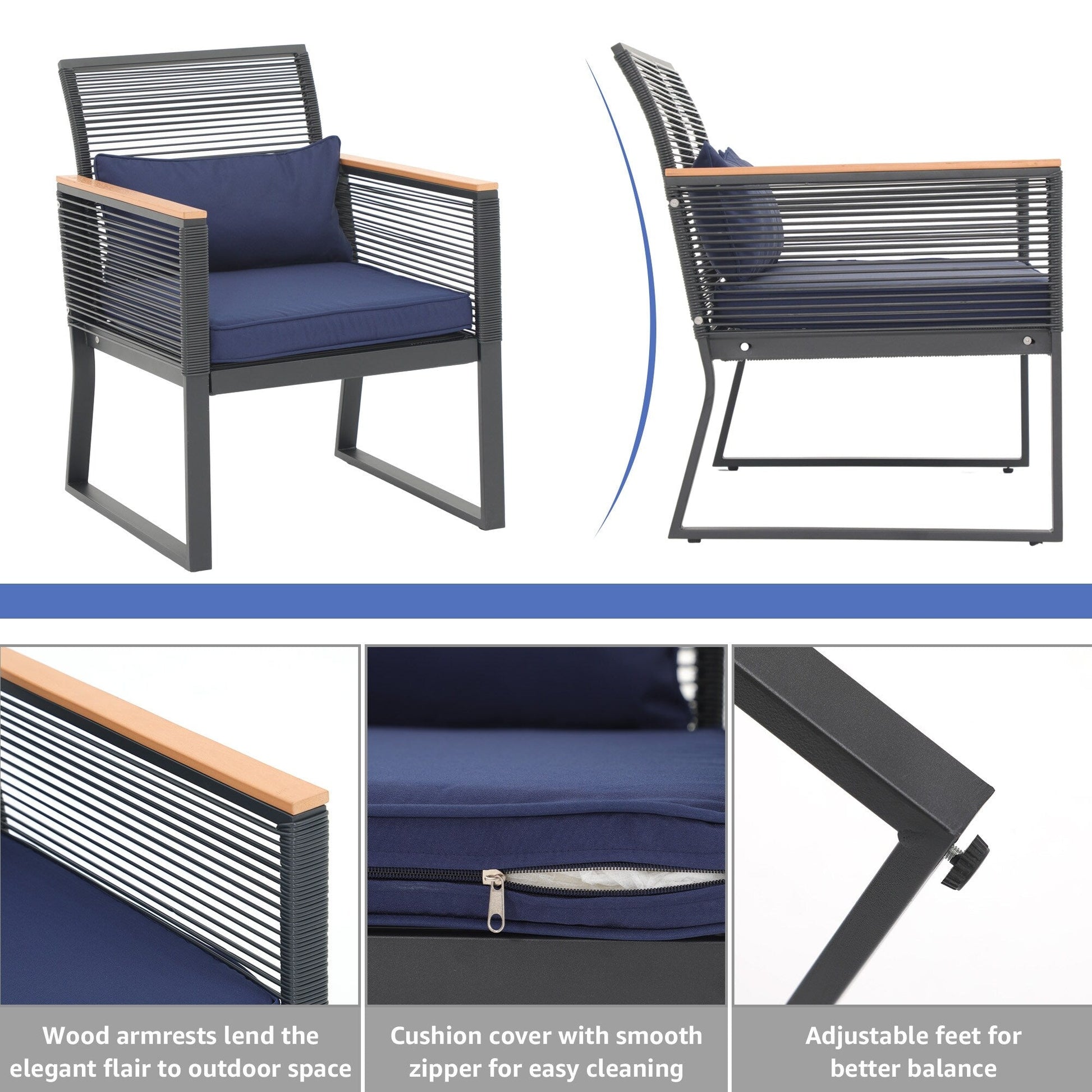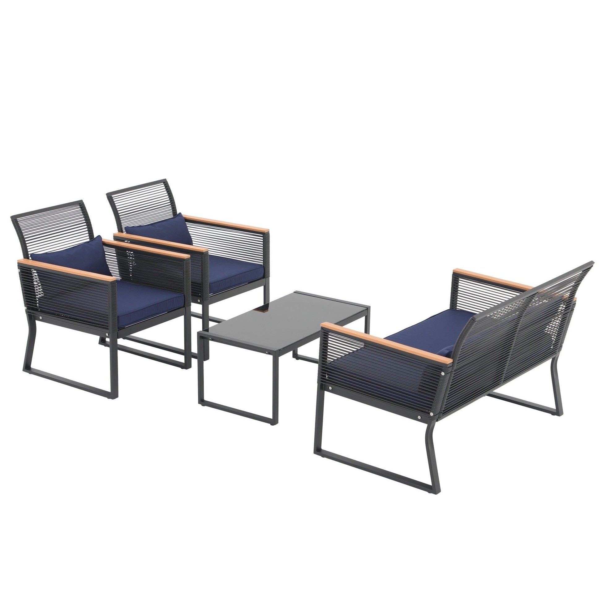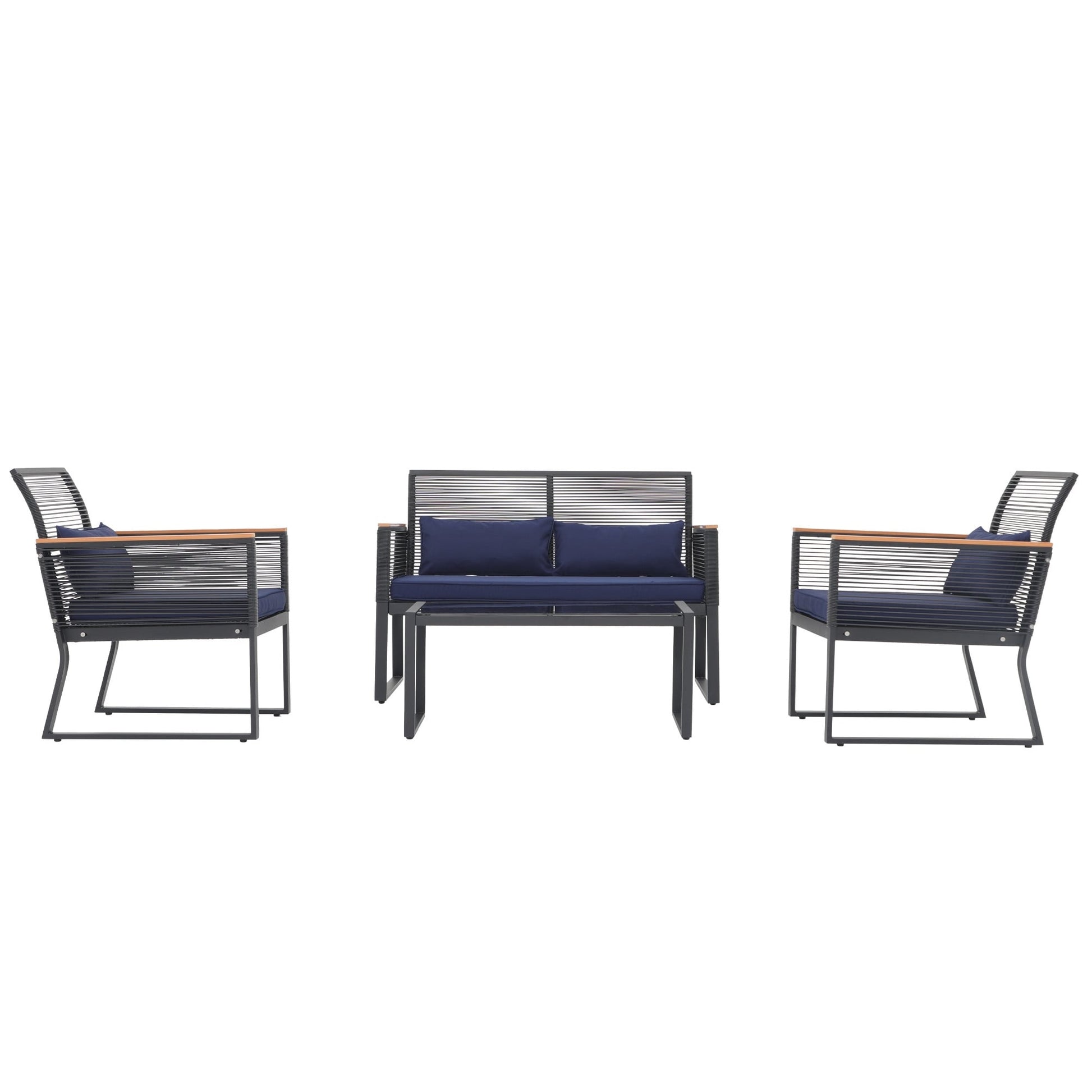 Godetevi conversazioni accoglienti, splendidi tramonti e aria fresca con gli amici su questo elegante e pratico set da conversazione per patio. Realizzato in vimini PE di alta qualità e telaio in acciaio verniciato a polvere, questo set da conversazione per esterni è progettato per resistere a diverse condizioni climatiche e garantire un utilizzo affidabile per anni a venire. Il vimini nero rende il set facile da abbinare all'ambiente circostante, mentre i braccioli in legno conferiscono un tocco di eleganza all'arredamento del patio. Il set da conversazione è dotato di 4 cuscini per la vita per offrire ulteriore comfort durante i momenti di relax all'aperto.