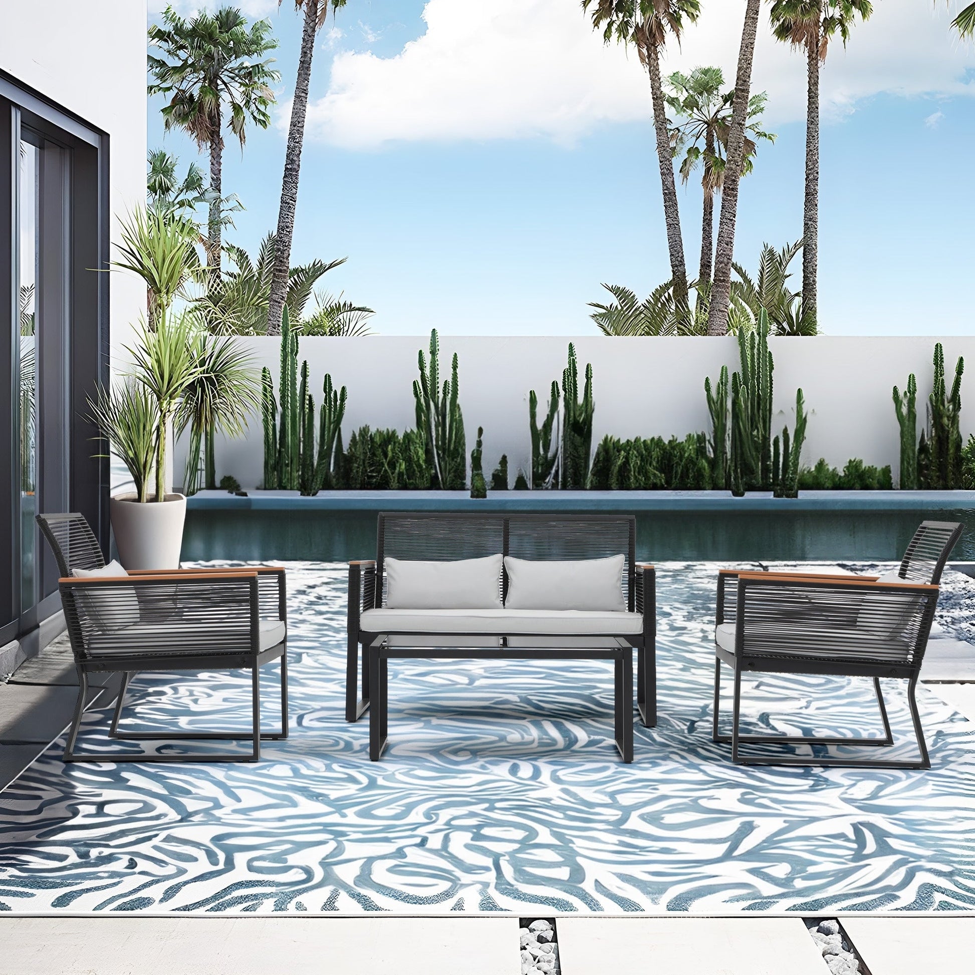 Set da conversazione in vimini da esterno, 4 pezzi