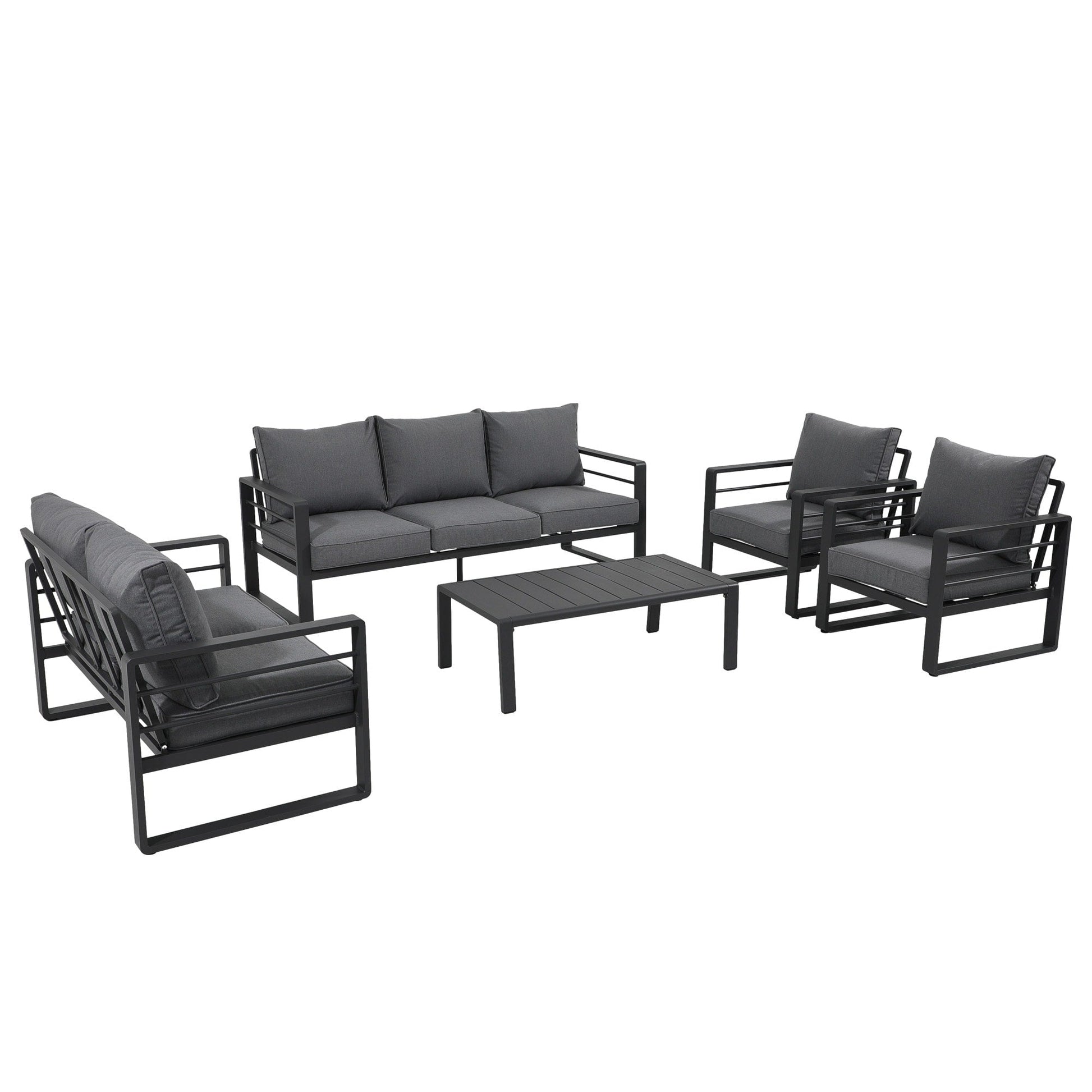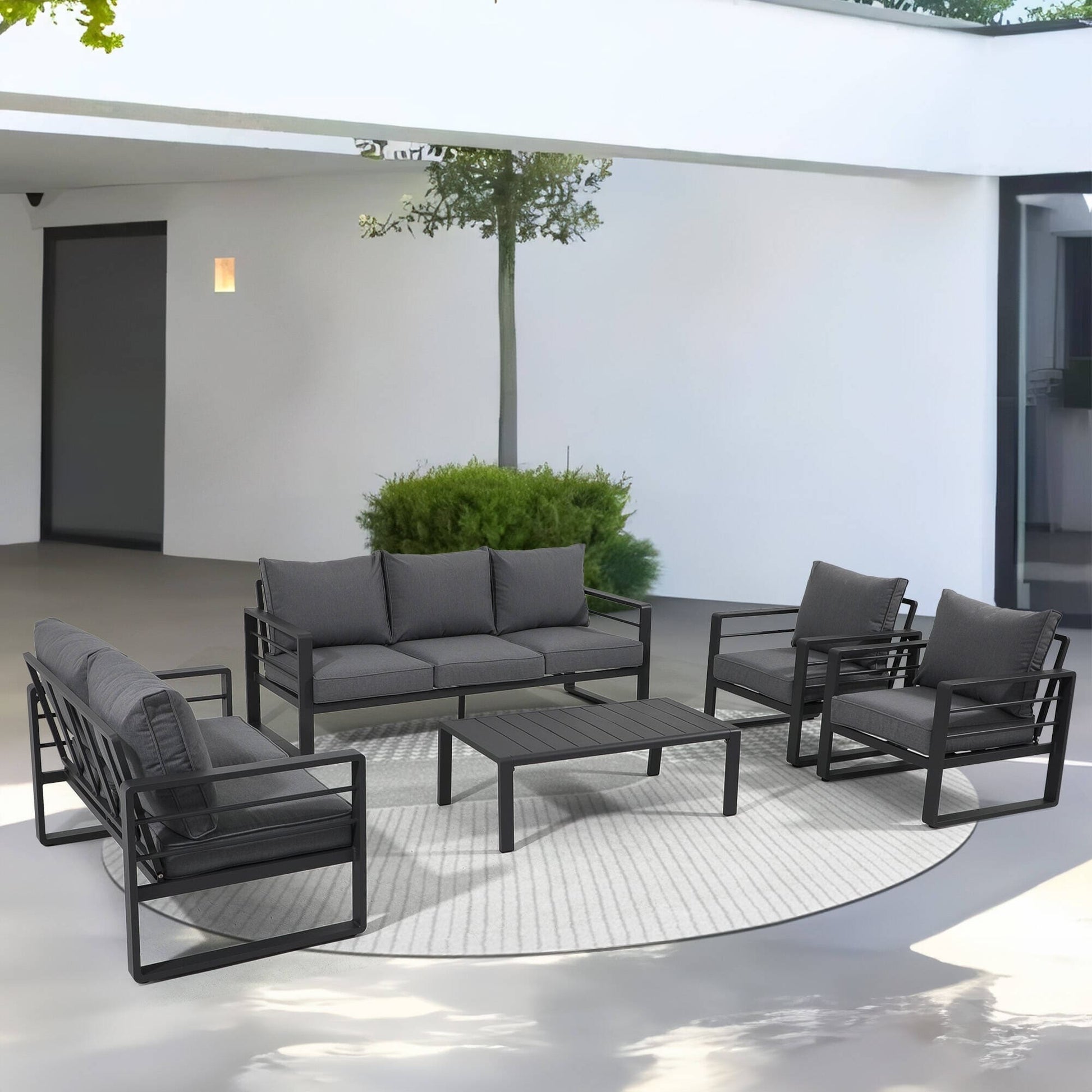 Set di divani da esterno in alluminio da 5 pezzi con cuscino