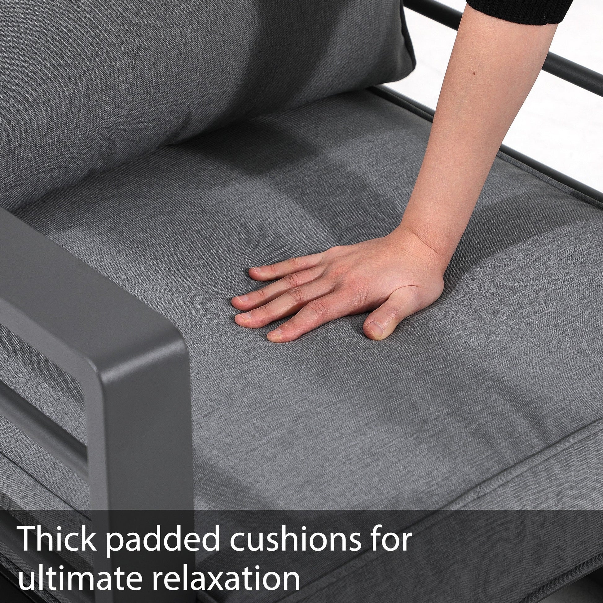 Arricchisci i tuoi eventi all'aperto con il nostro elegante e confortevole set di divani in alluminio da 5 pezzi. Perfetto per organizzare feste o eventi familiari, questo set di divani componibili include 2 poltrone, 1 divano a due posti, 1 divano a 3 posti e 1 tavolino. Grazie ai cuscini ad alta resistenza, potrai goderti il ​​massimo relax nel tuo giardino, in giardino o a bordo piscina. Il design modulare ti consente di personalizzare e creare la disposizione dei posti a sedere perfetta in base alle tue preferenze. Preparati a valorizzare il tuo spazio esterno e a creare ricordi indelebili con il nostro elegante set di divani in alluminio!