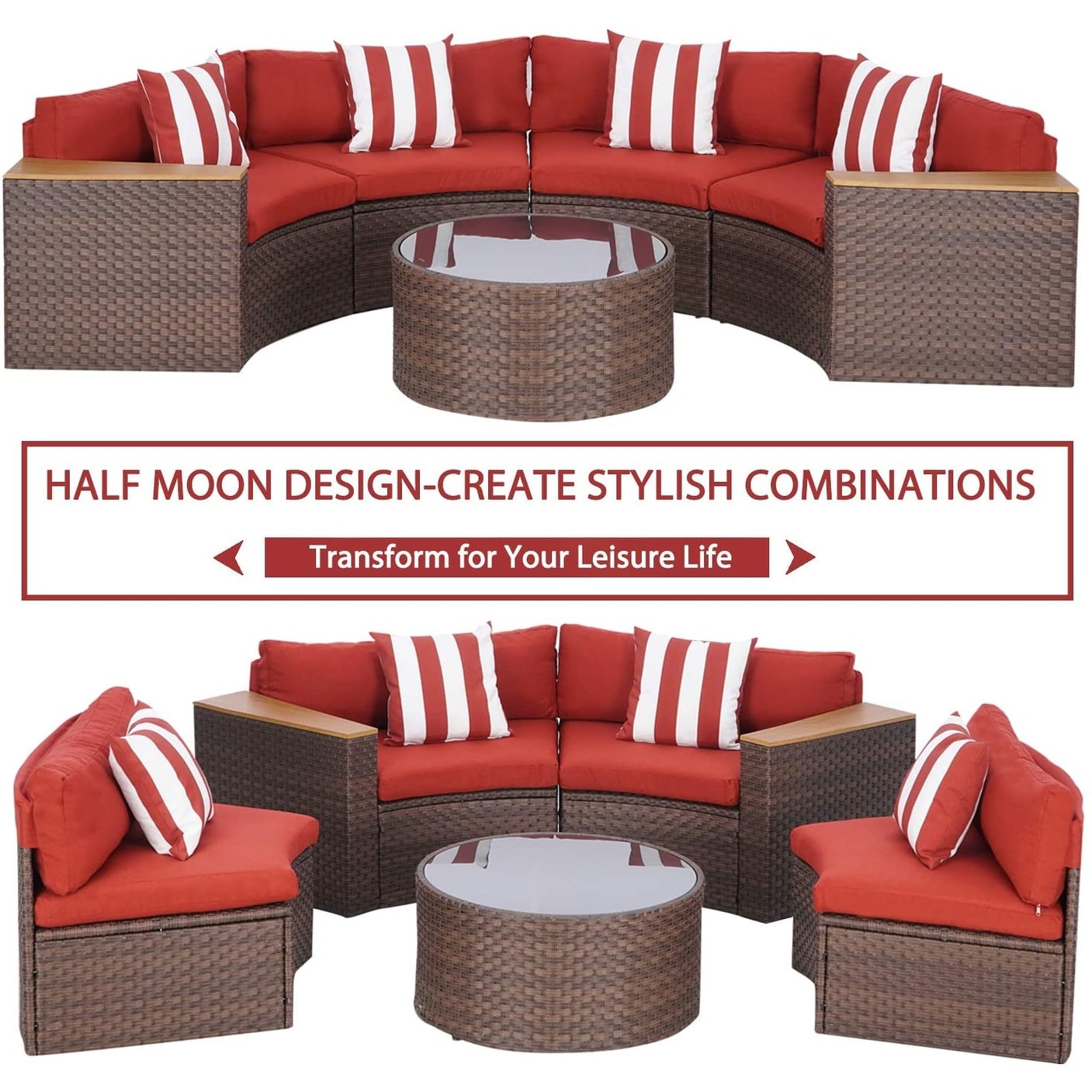 Set di divani componibili curvi a mezzaluna e...