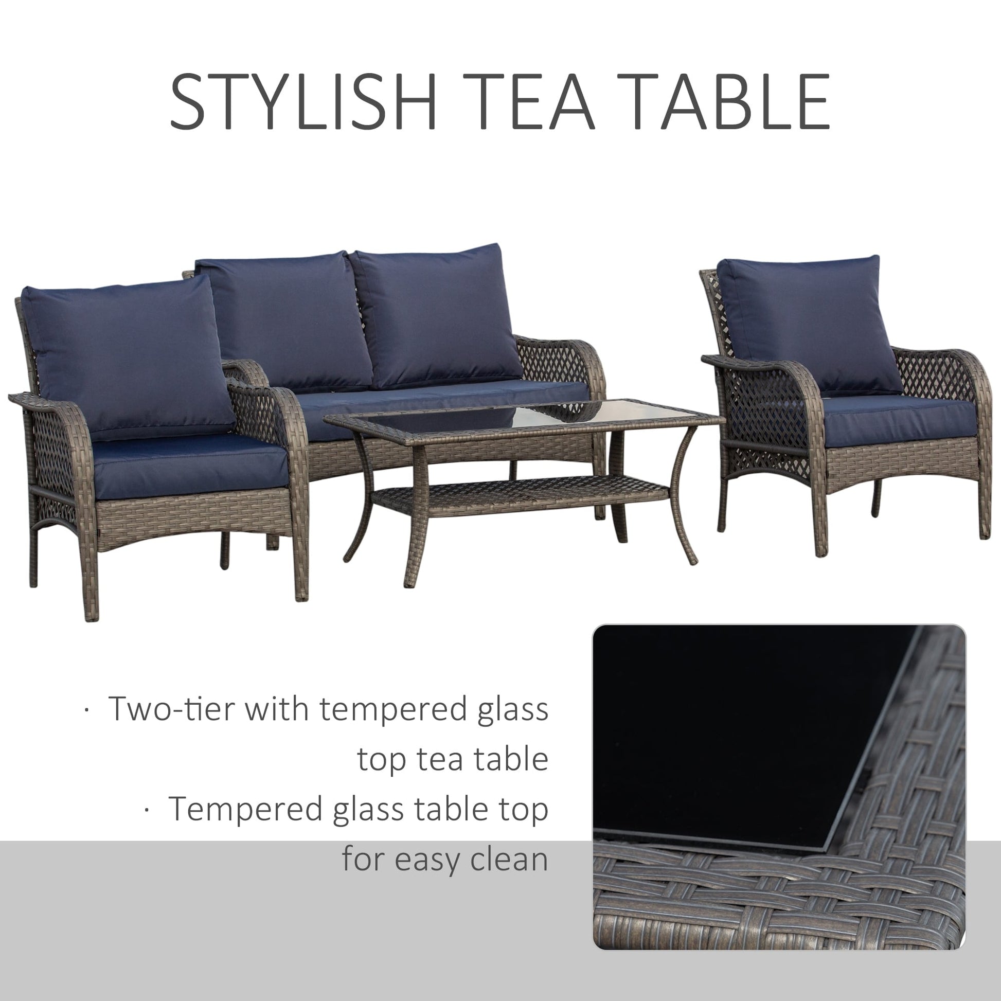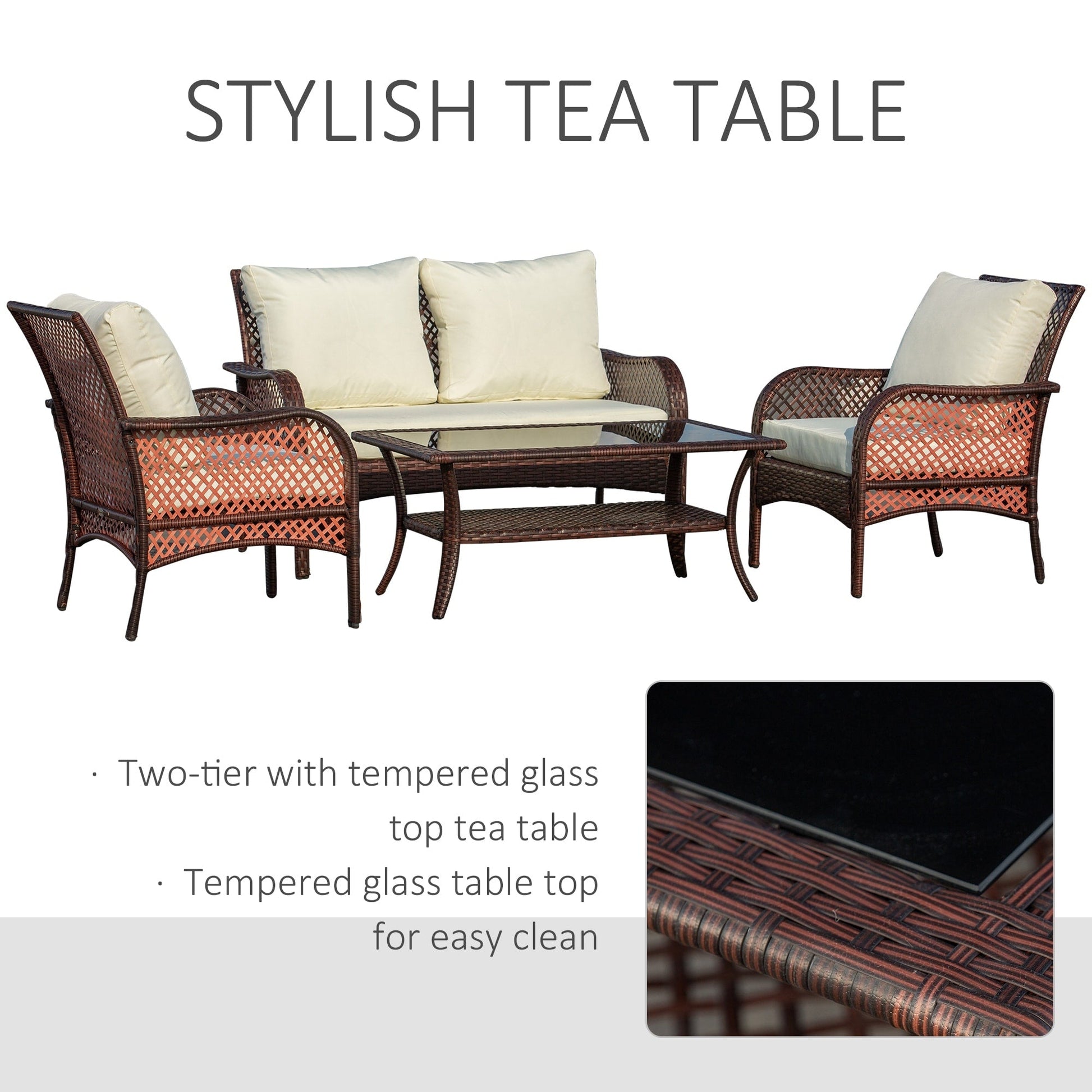 Outsunny Set di divani da esterno in vimini da 4 pezzi, mobili da conversazione in rattan PE con 4 sedie e tavolo, materiale impermeabile