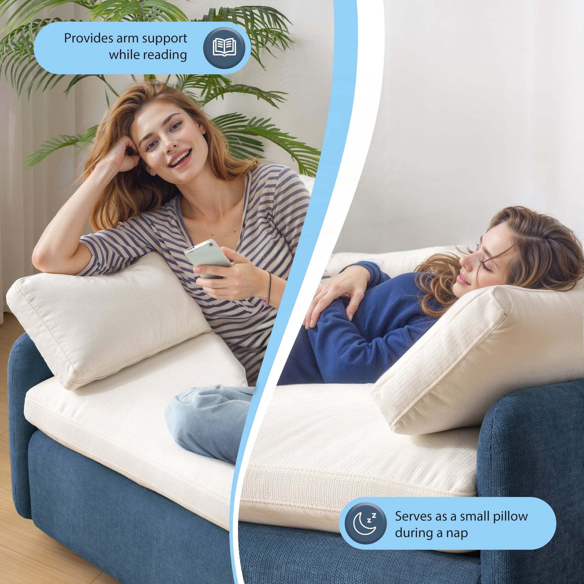 Due cuscini decorativi per un comfort extra: per un'esperienza di relax ancora più intensa, la poltrona è dotata di due cuscini decorativi. Questi cuscini non solo migliorano l'estetica generale con i loro colori coordinati o complementari, ma offrono anche un supporto aggiuntivo per la schiena o il collo. I morbidi cuscini aggiungono un ulteriore livello di comfort, sia che li utilizziate per sostenere la postura da seduti o semplicemente per coccolarvi durante un pisolino.