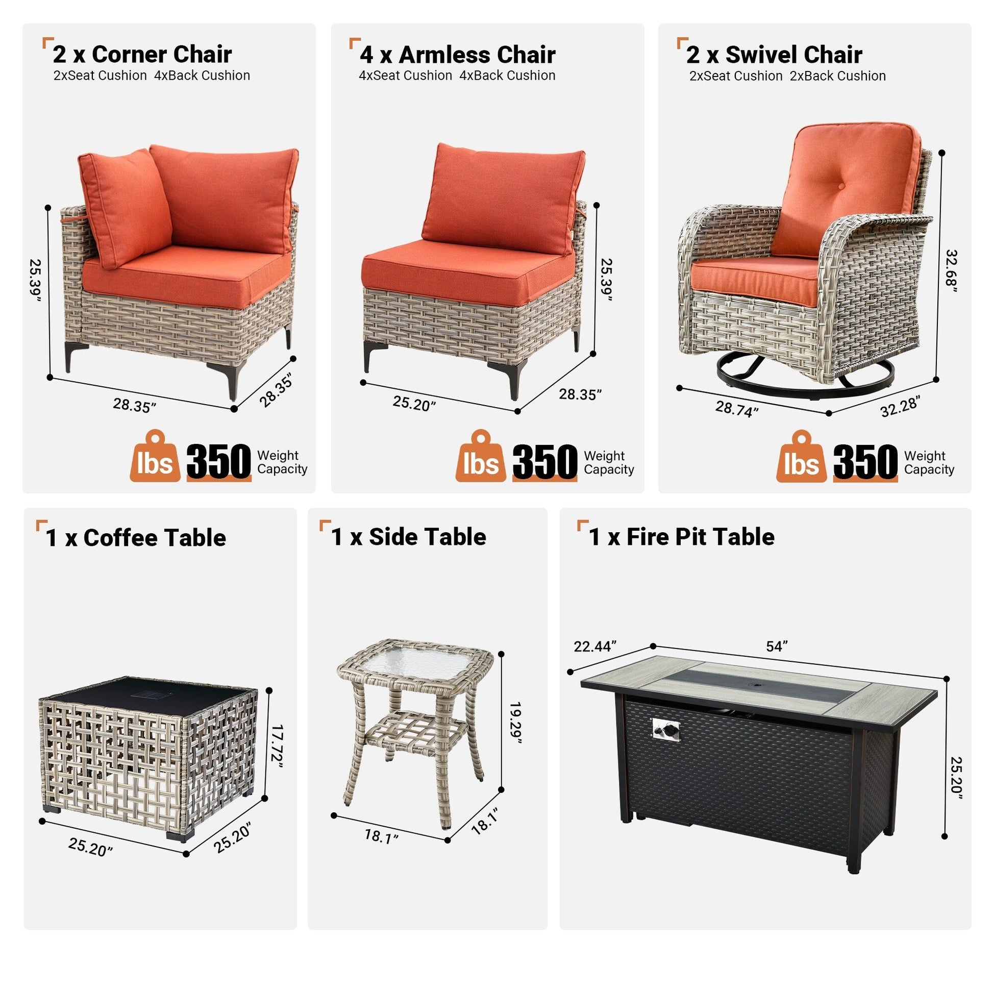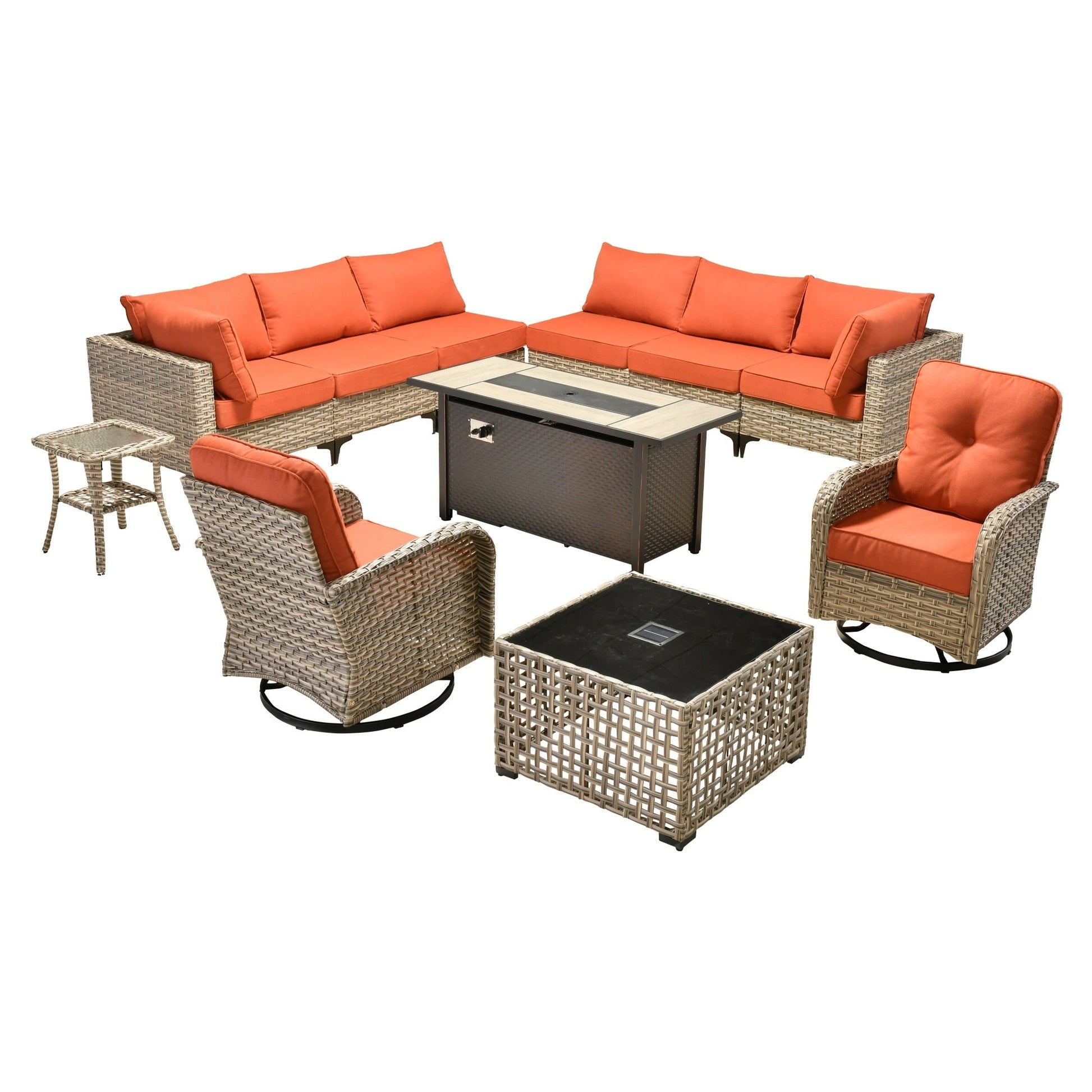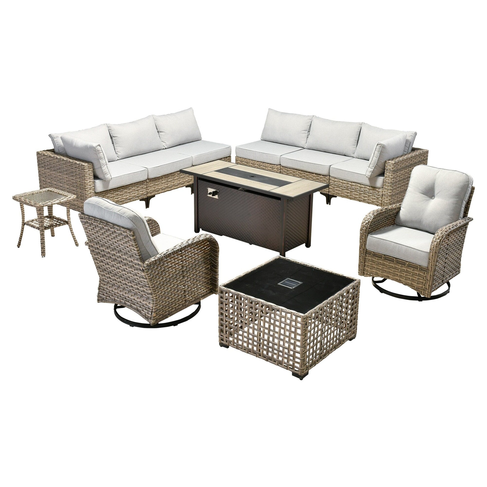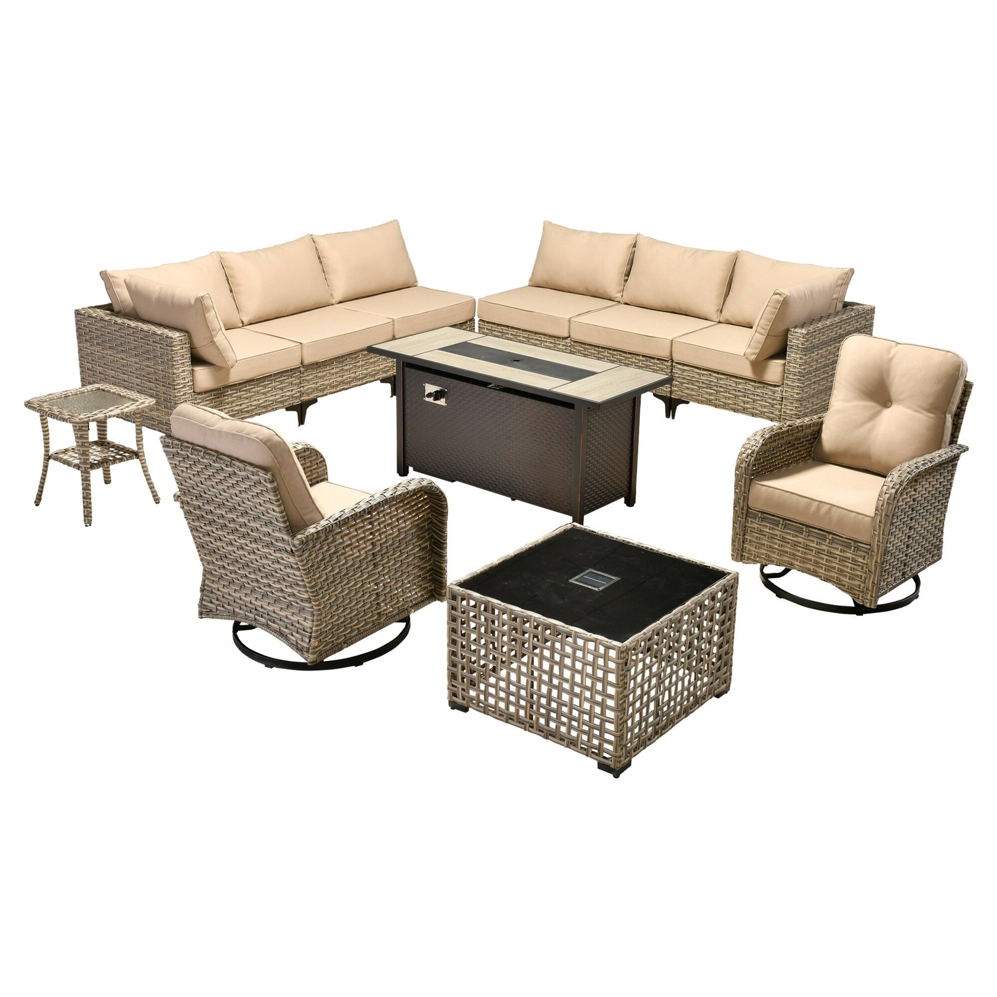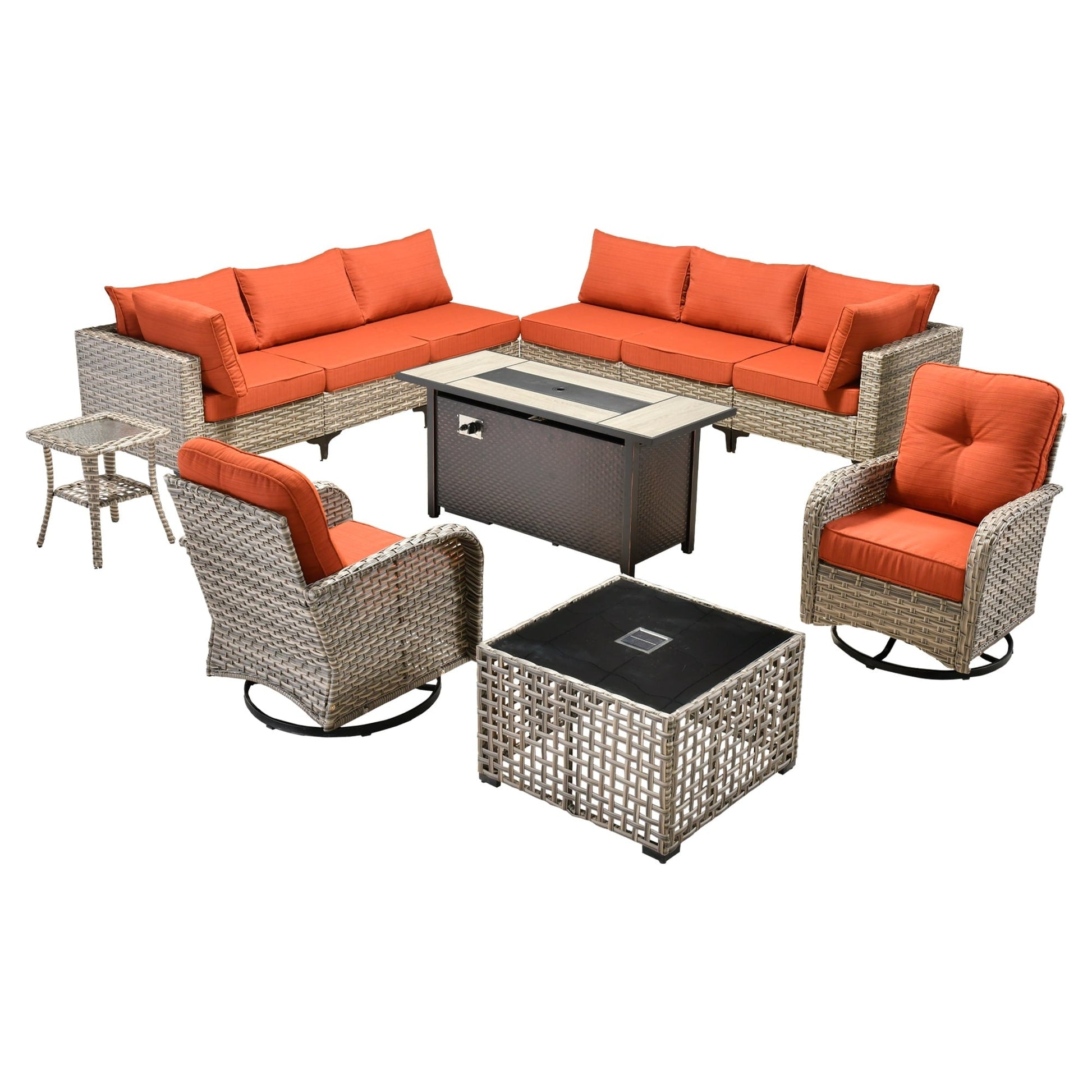 OVIOS Set di 11 sedie girevoli in vimini per esterni con tavolo da fuoco