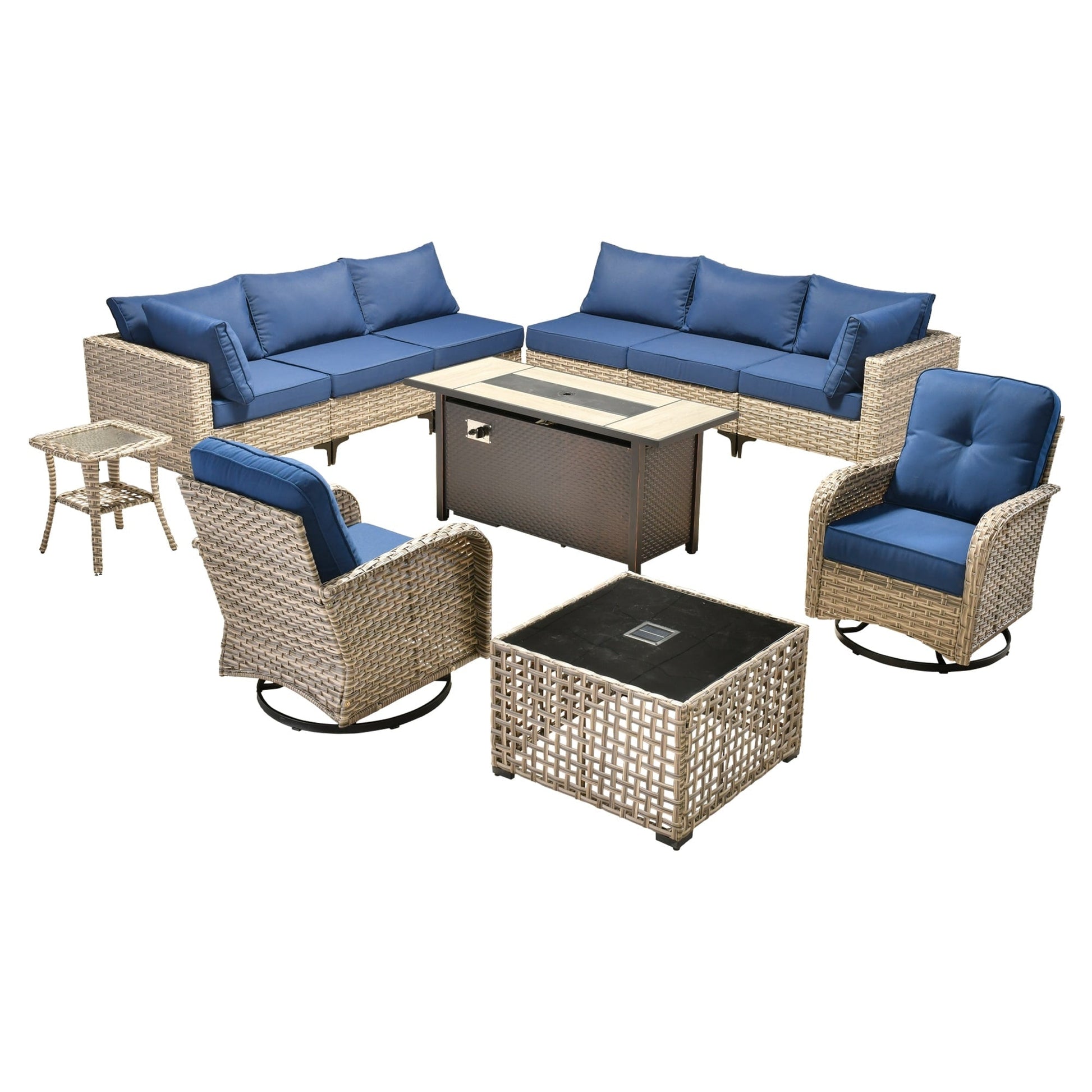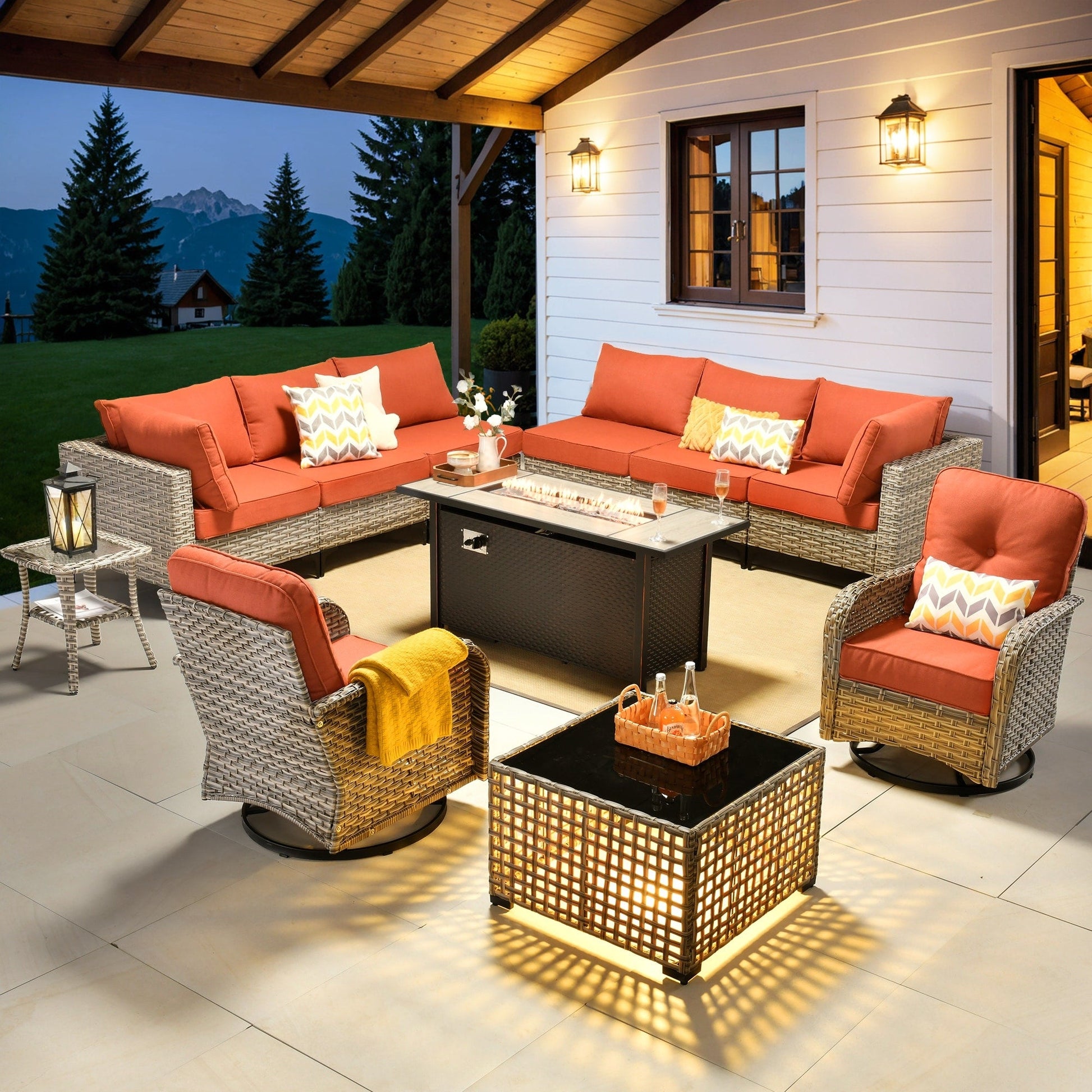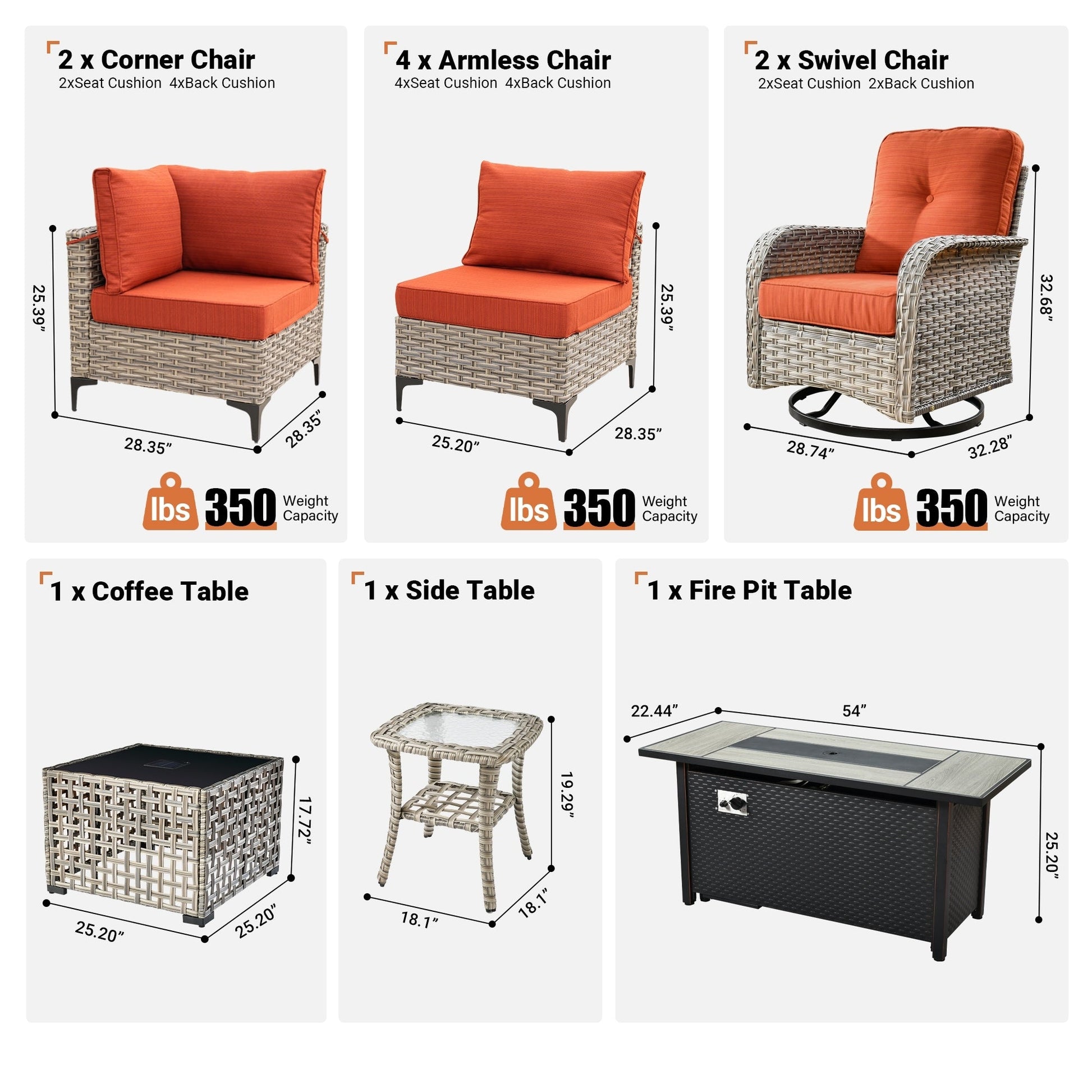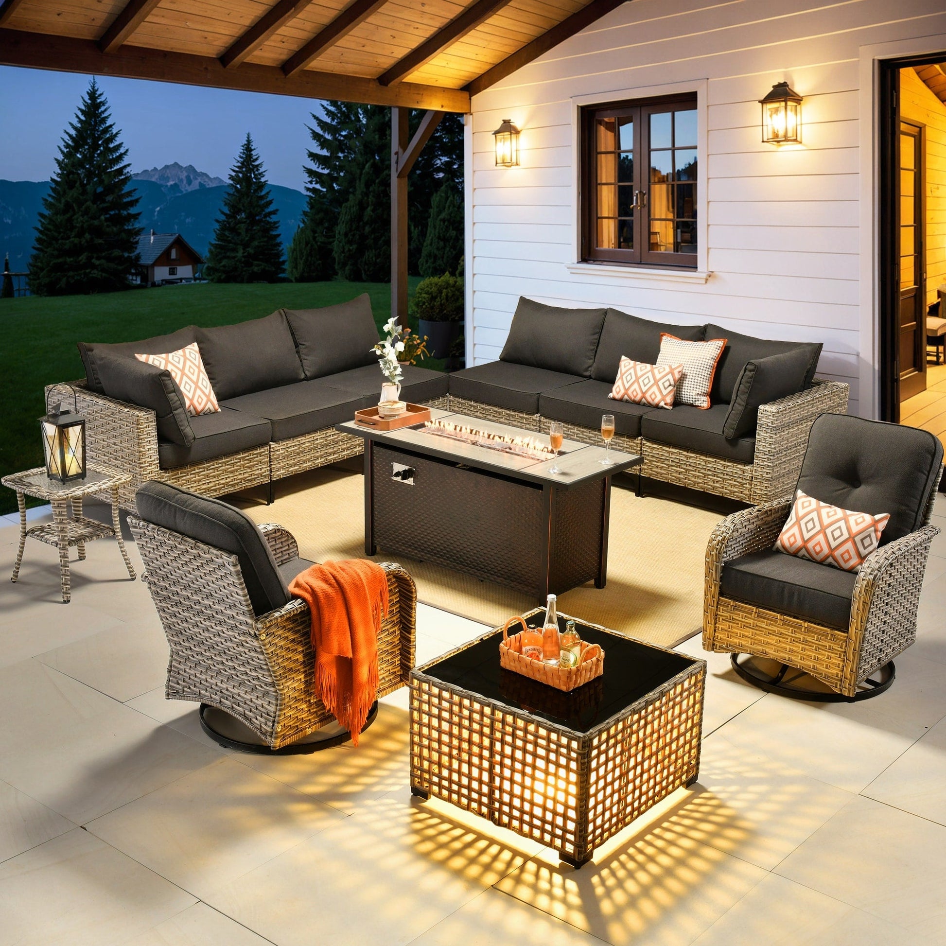 OVIOS Set di 11 sedie girevoli in vimini per esterni con tavolo da fuoco
