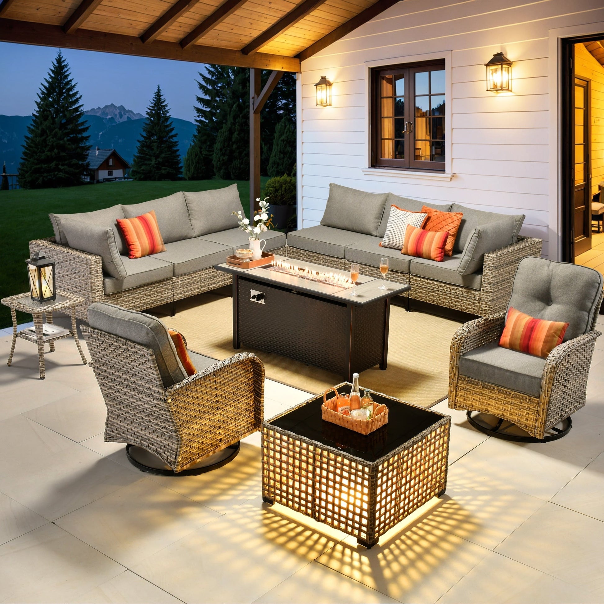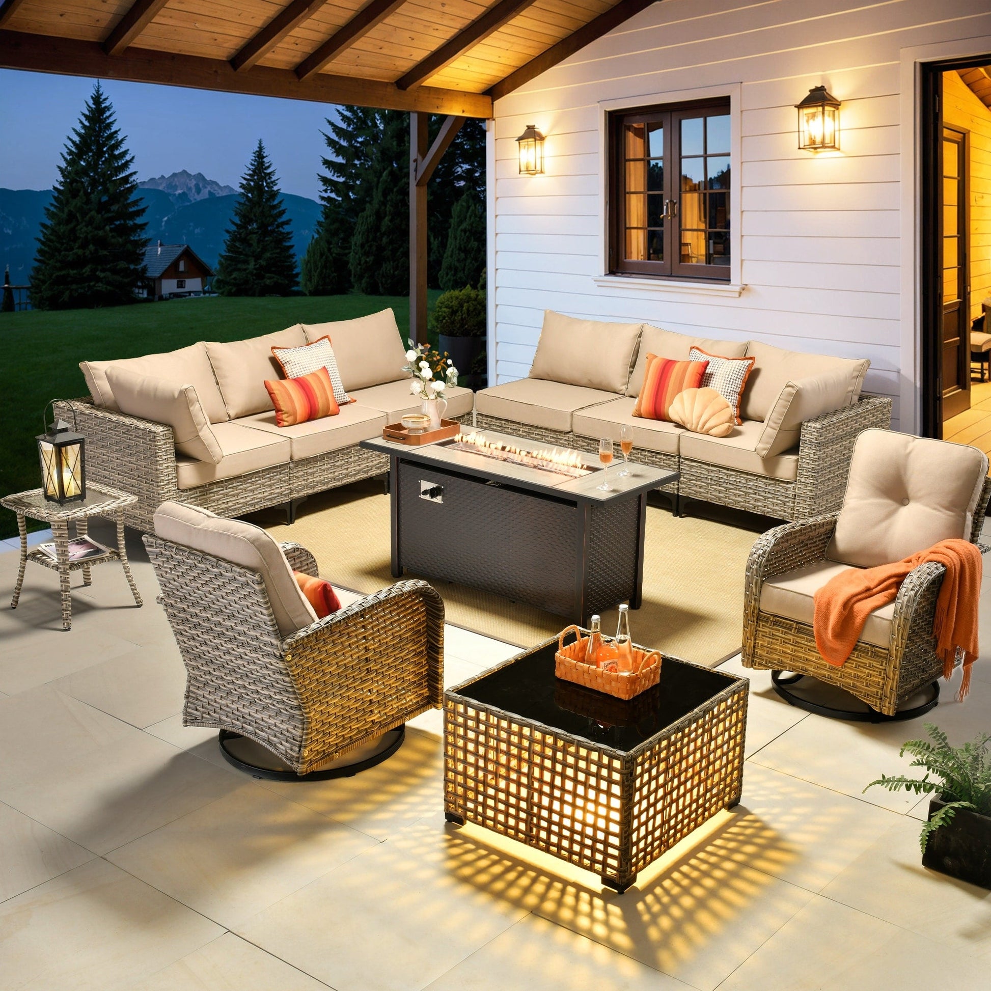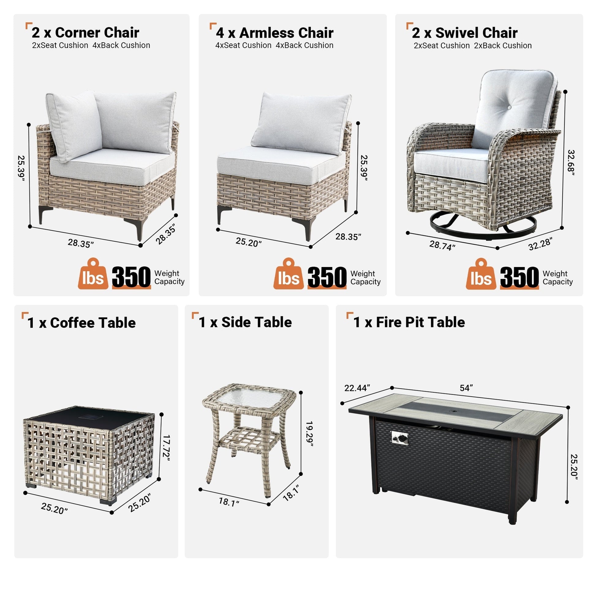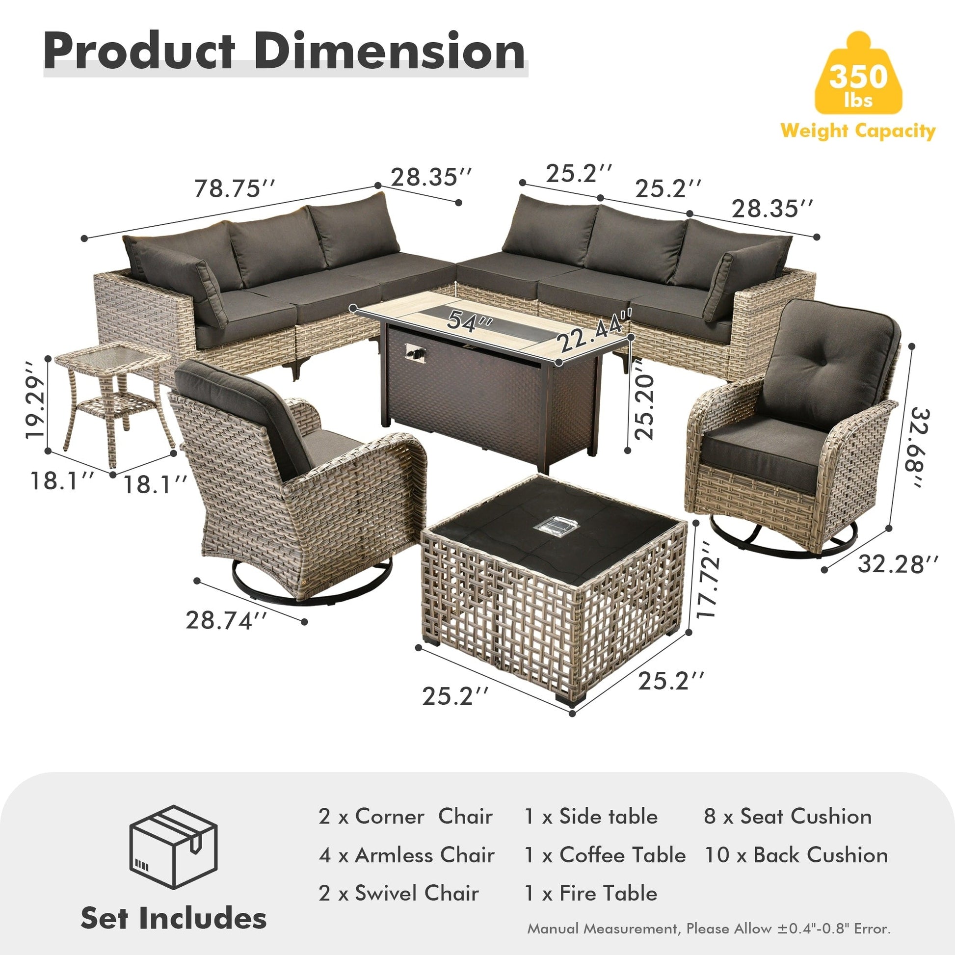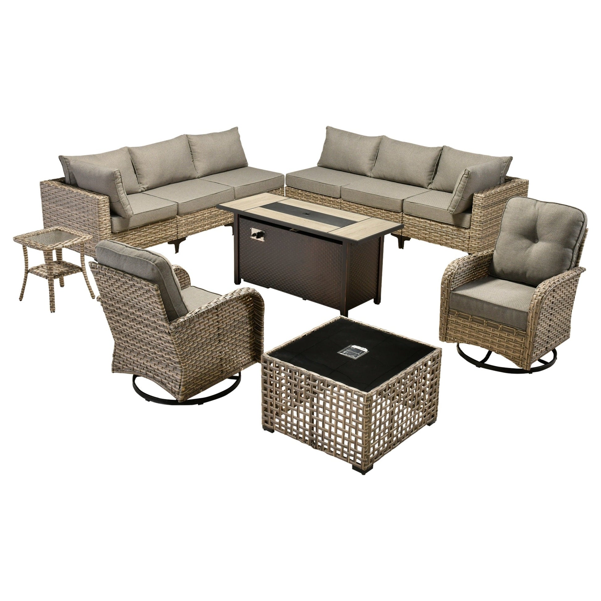 OVIOS Set di 11 sedie girevoli in vimini per esterni con tavolo da fuoco