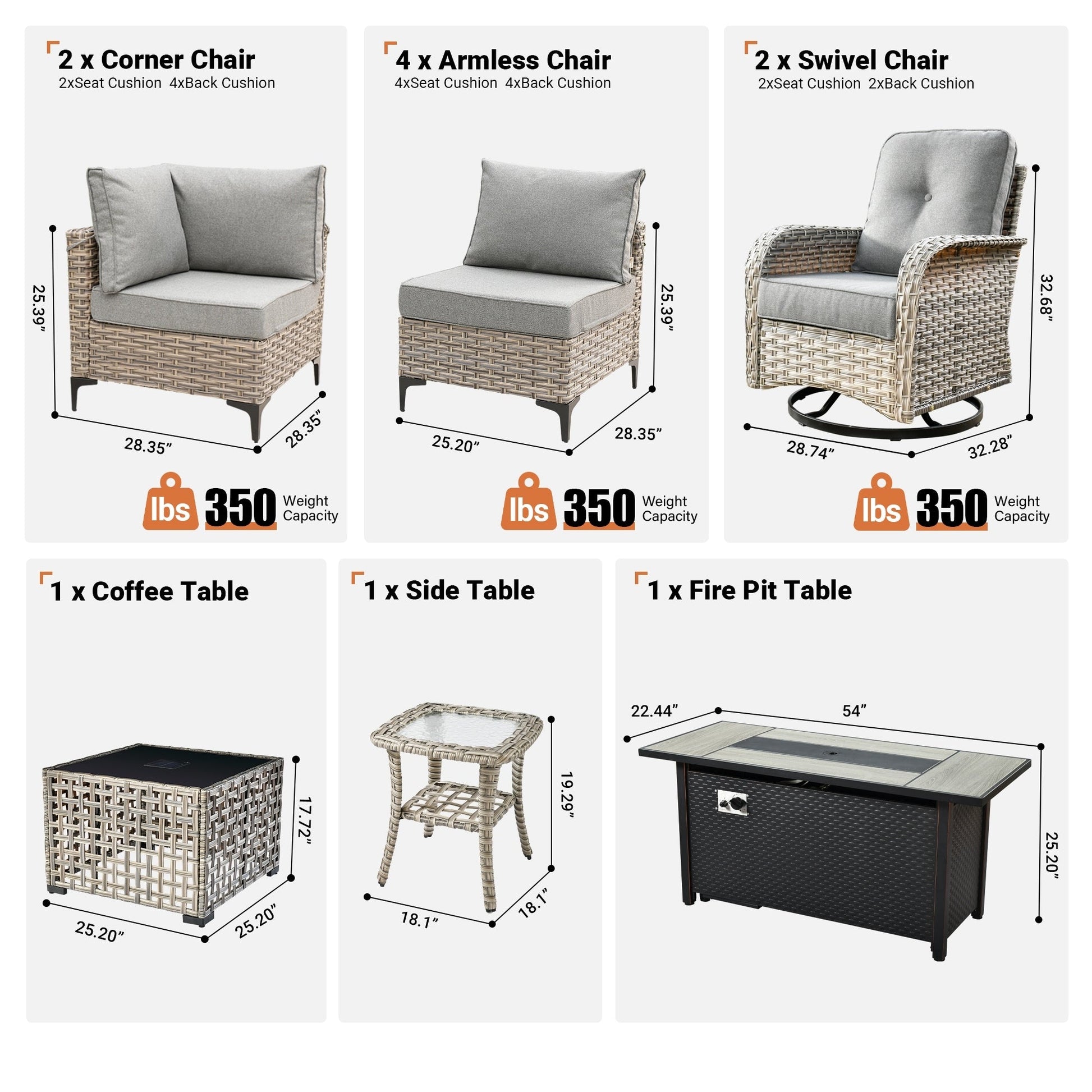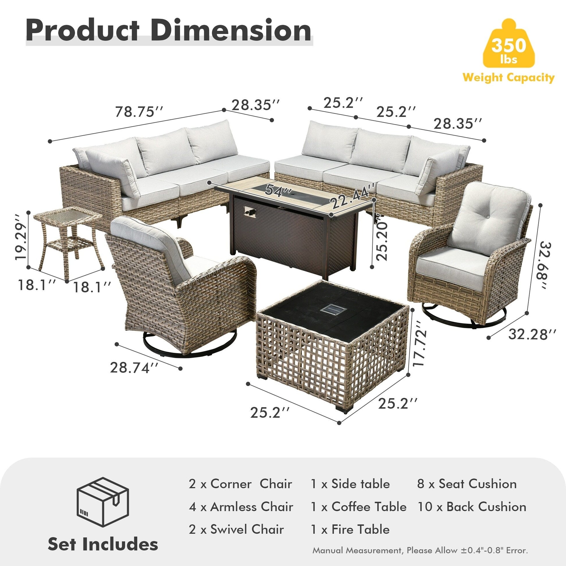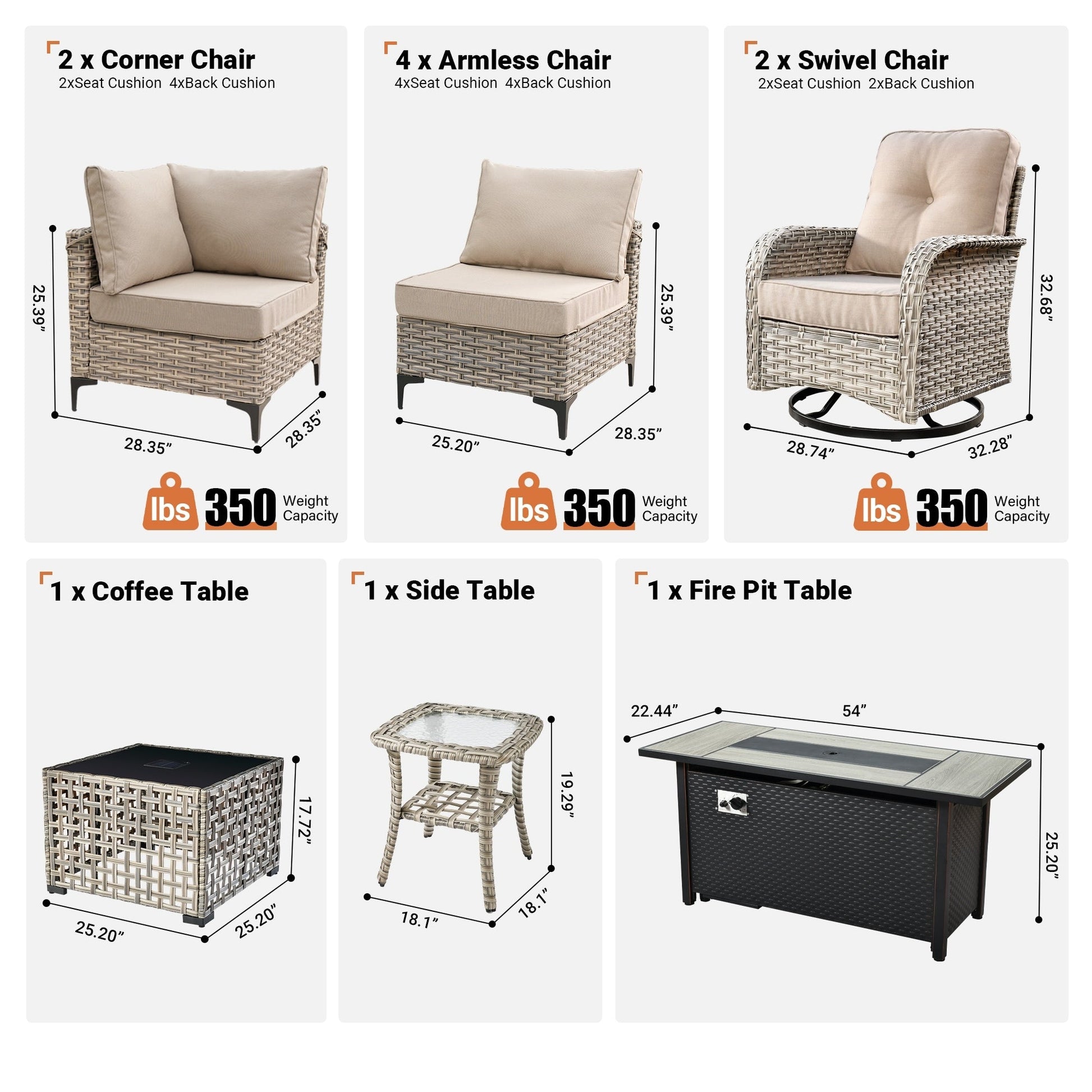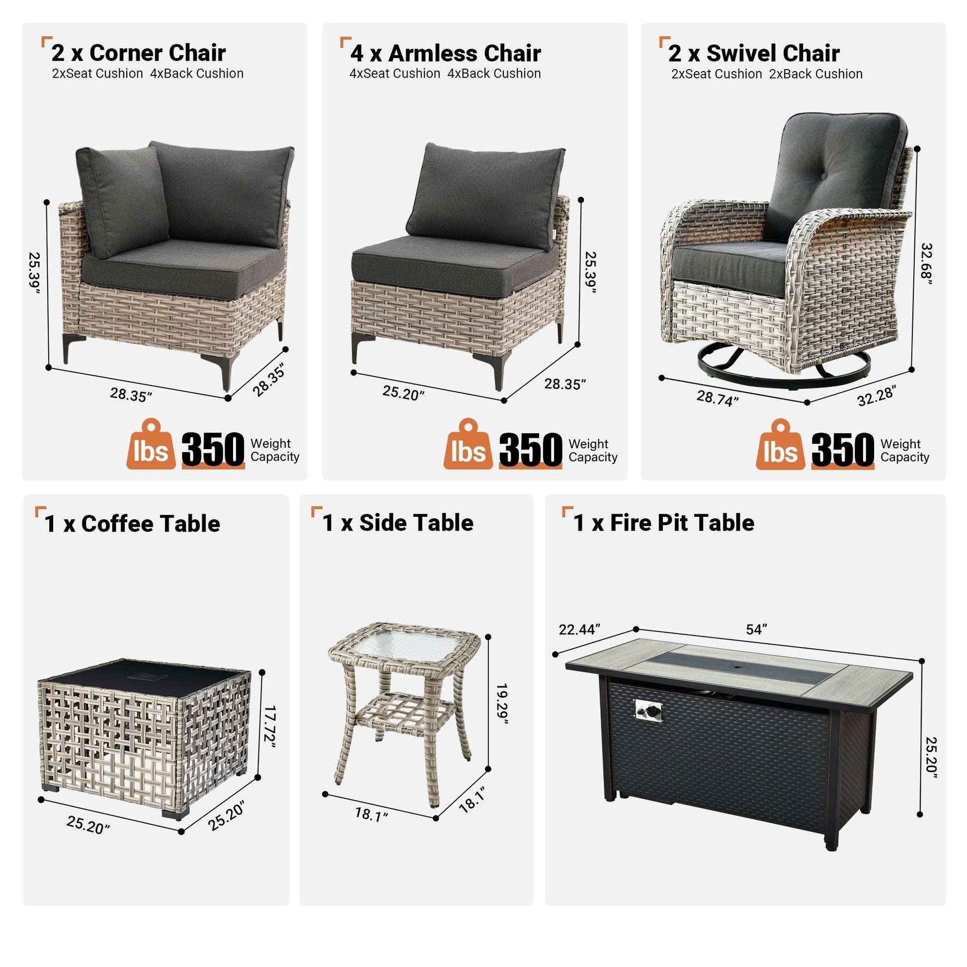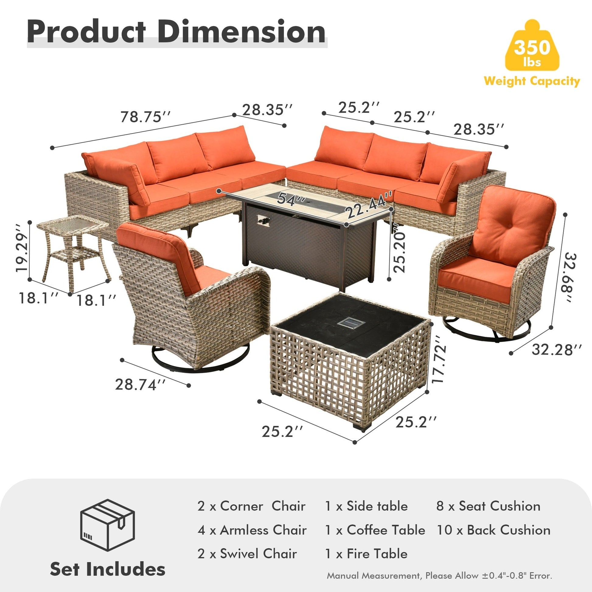 OVIOS Set di 11 sedie girevoli in vimini per esterni con tavolo da fuoco