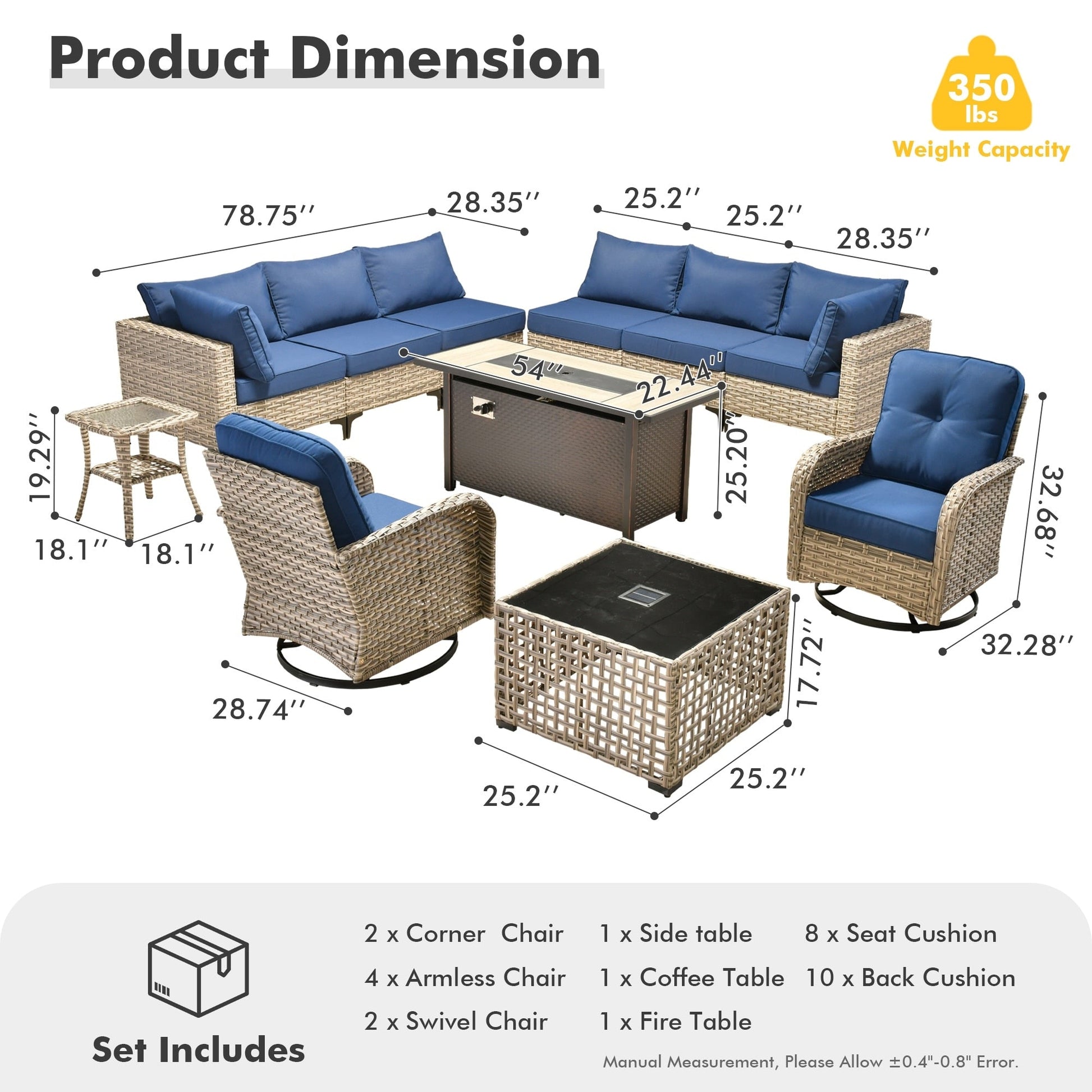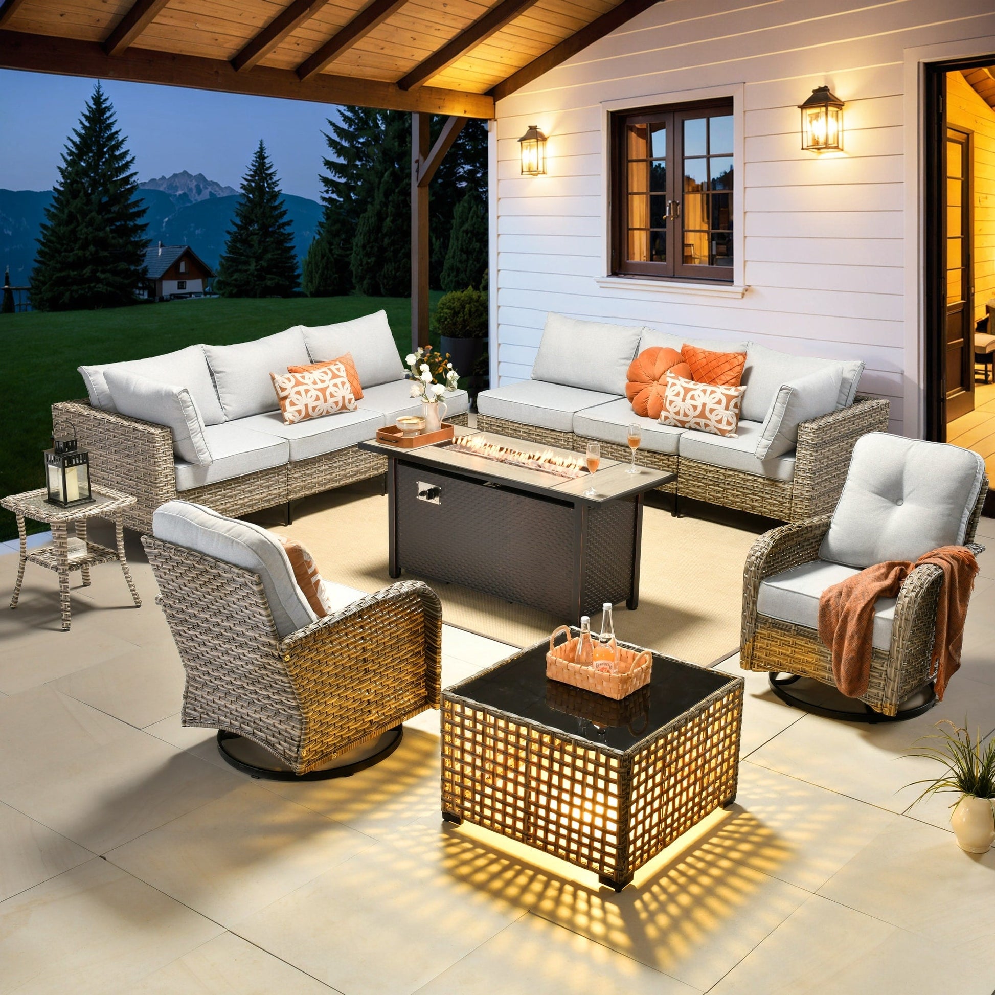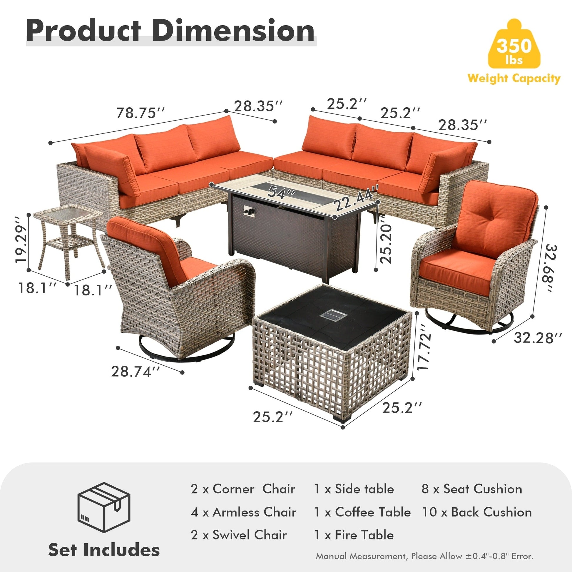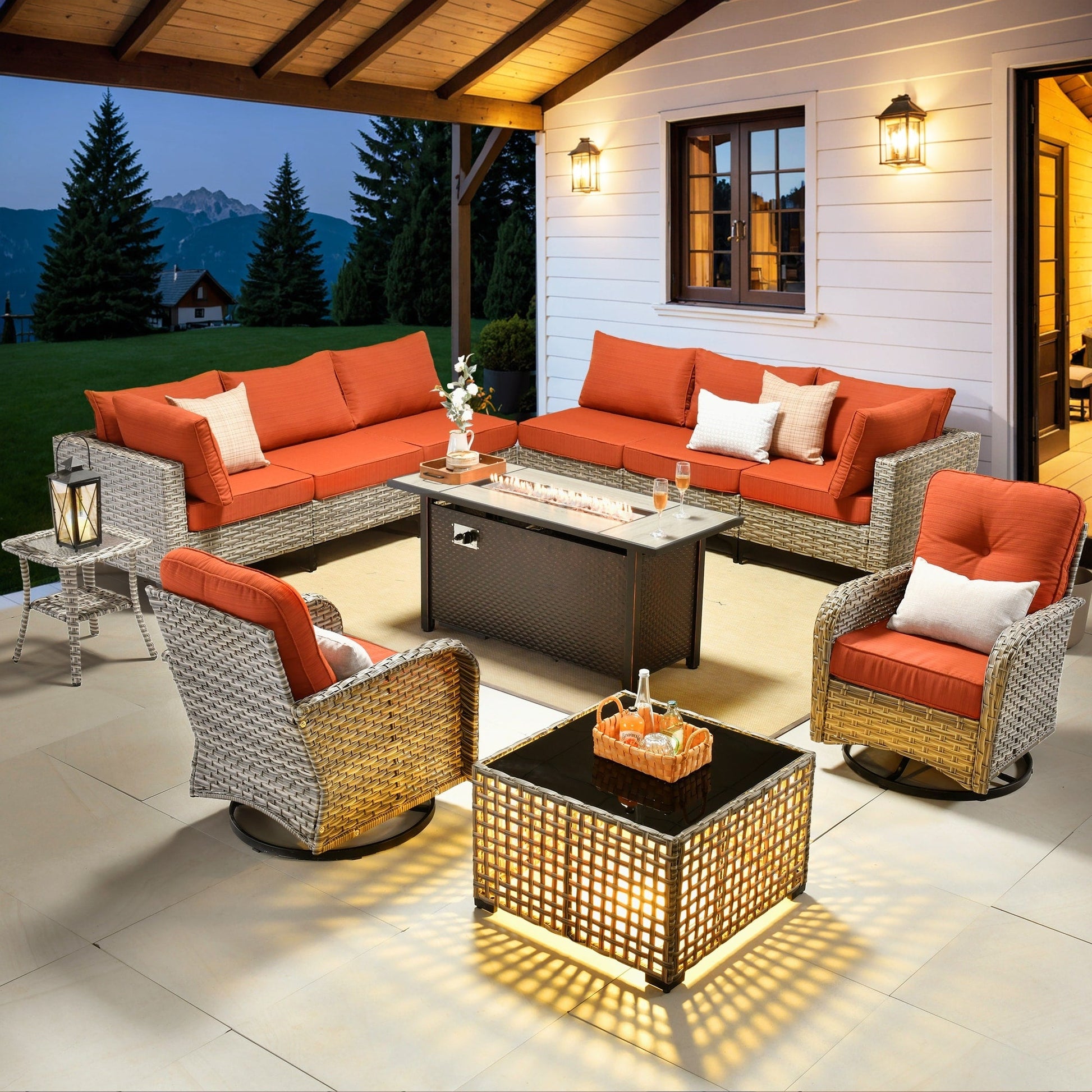 OVIOS Set di 11 sedie girevoli in vimini per esterni con tavolo da fuoco