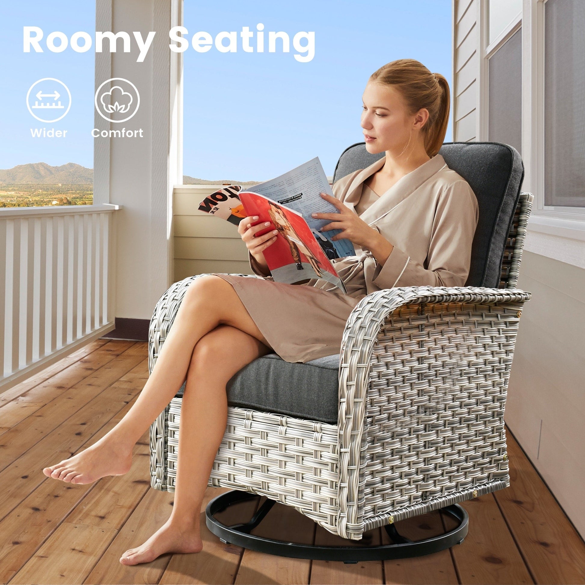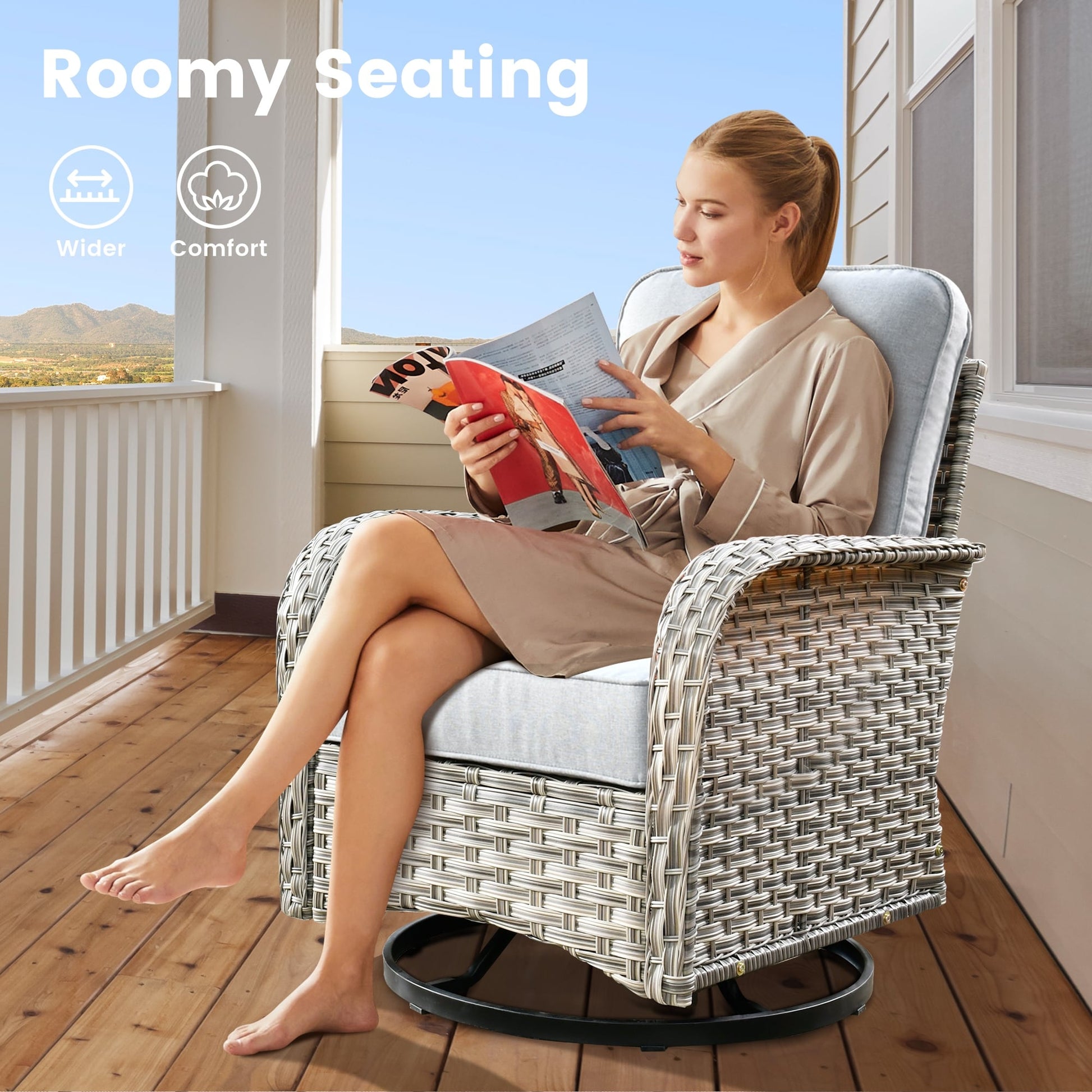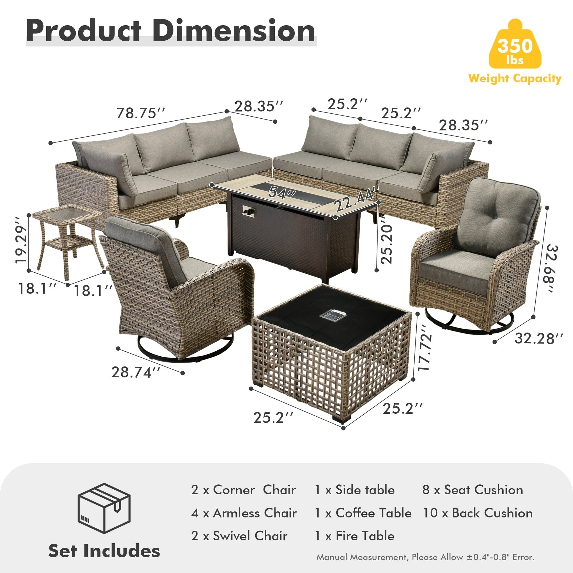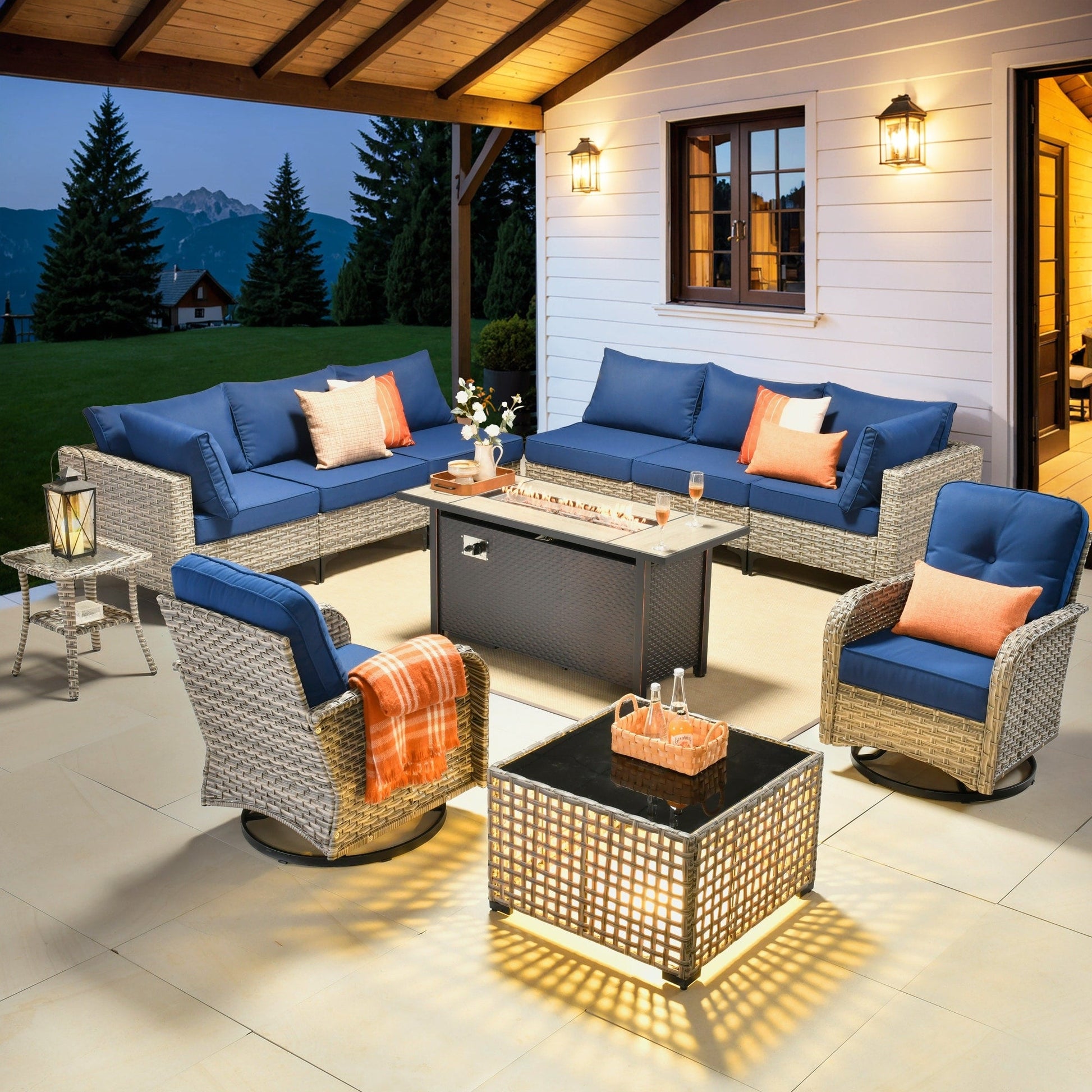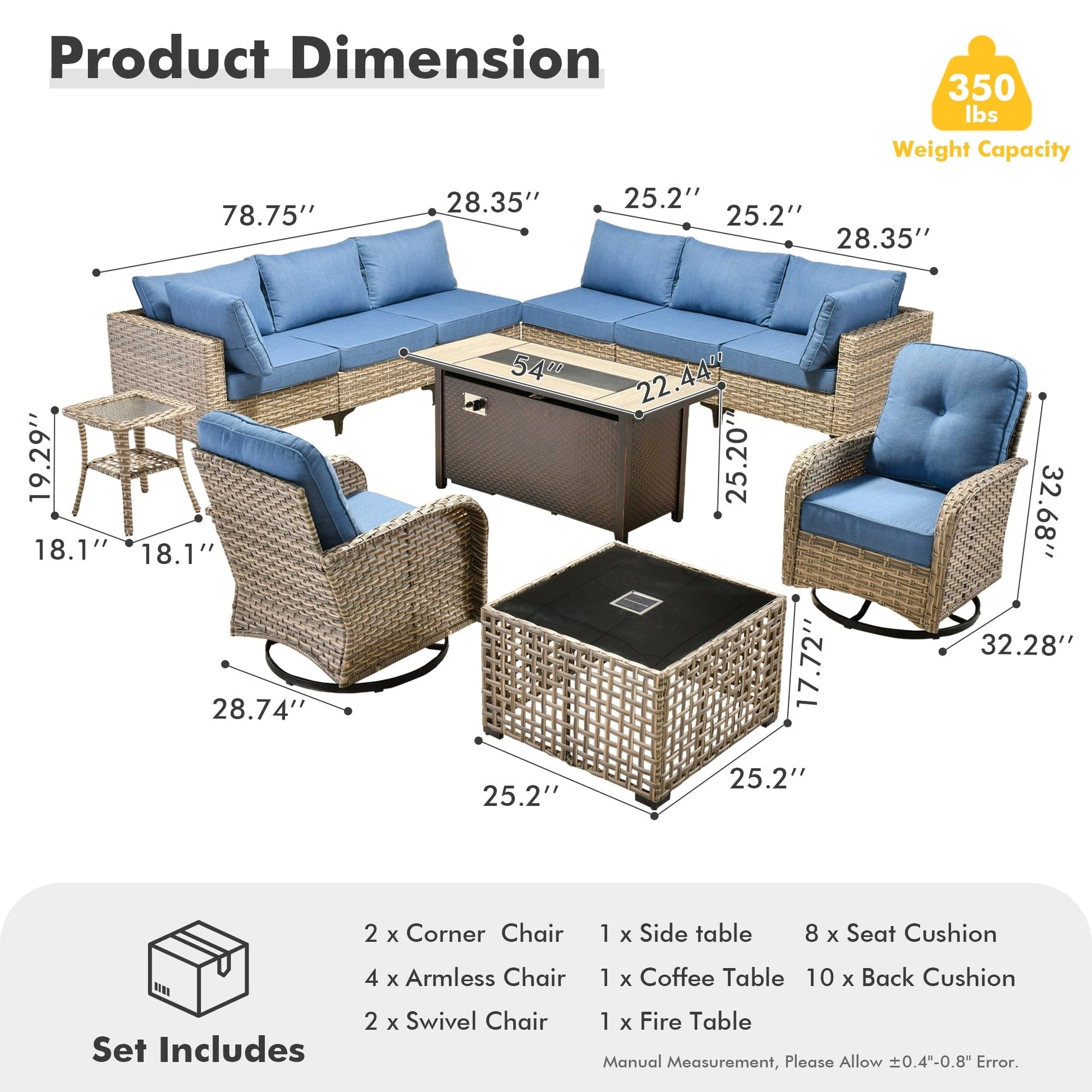 OVIOS Set di 11 sedie girevoli in vimini per esterni con tavolo da fuoco