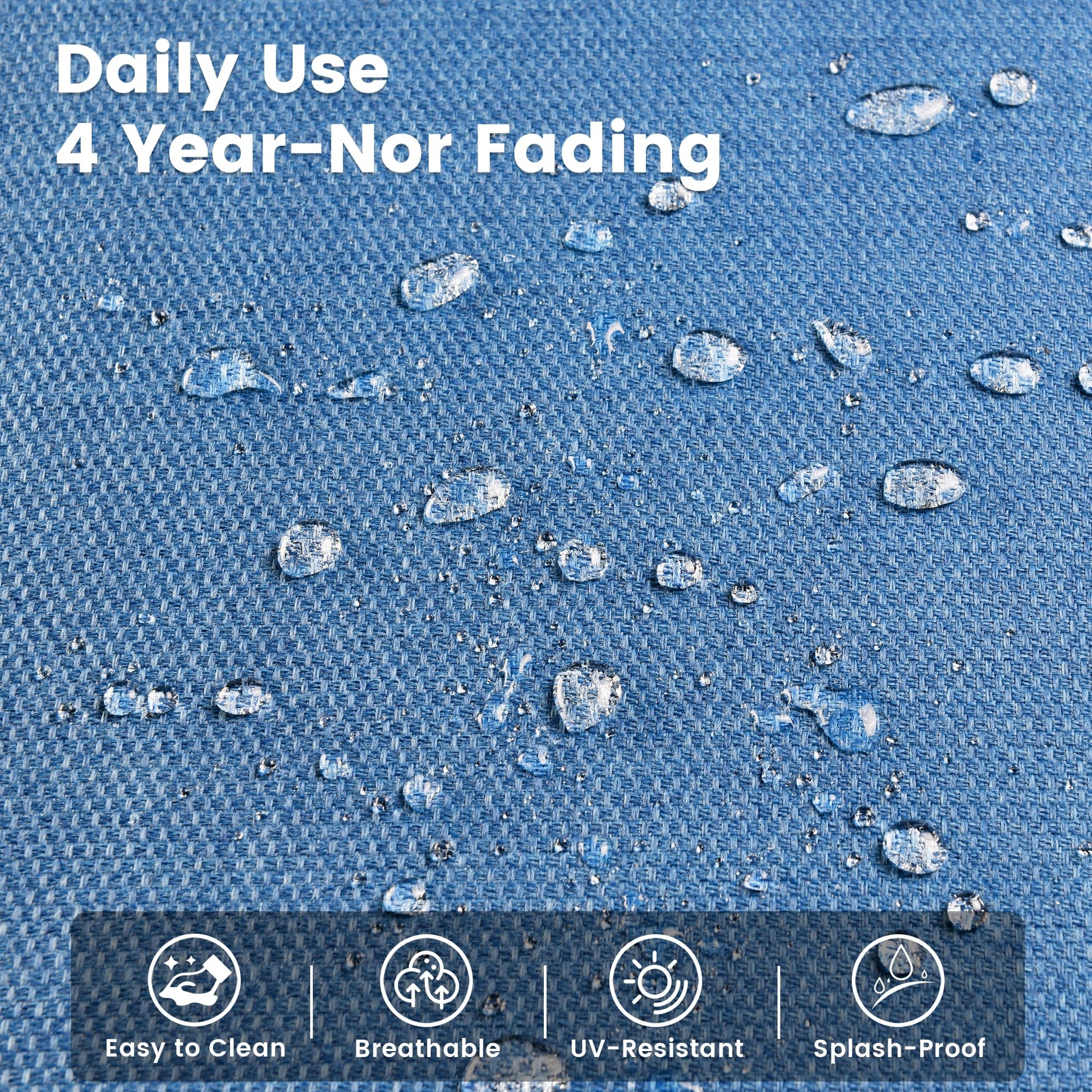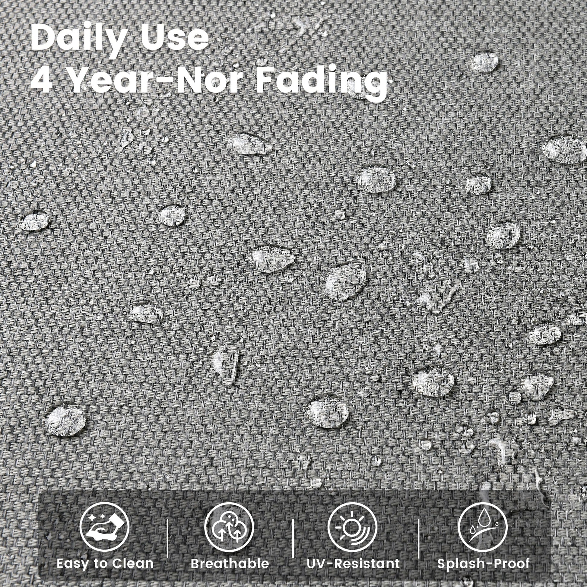 Copricuscini resistenti ai raggi UV e impermeabili: i copricuscini sono realizzati con materiali di alta qualità, resistenti ai raggi UV, impermeabili e anti-scolorimento, che ne mantengono la freschezza e la brillantezza a lungo.