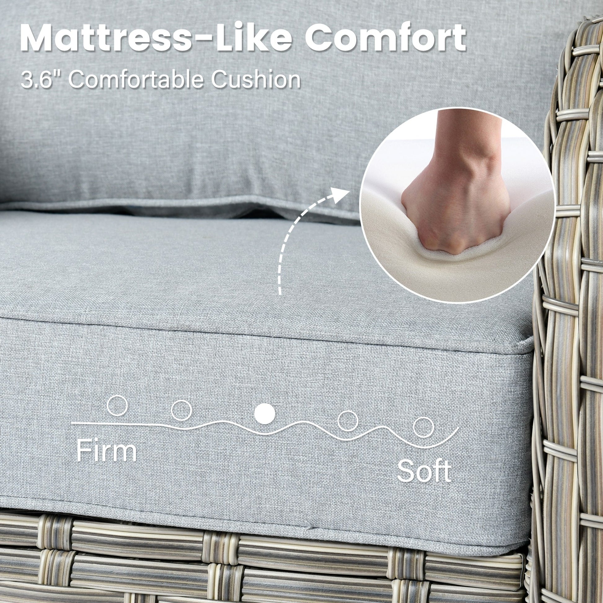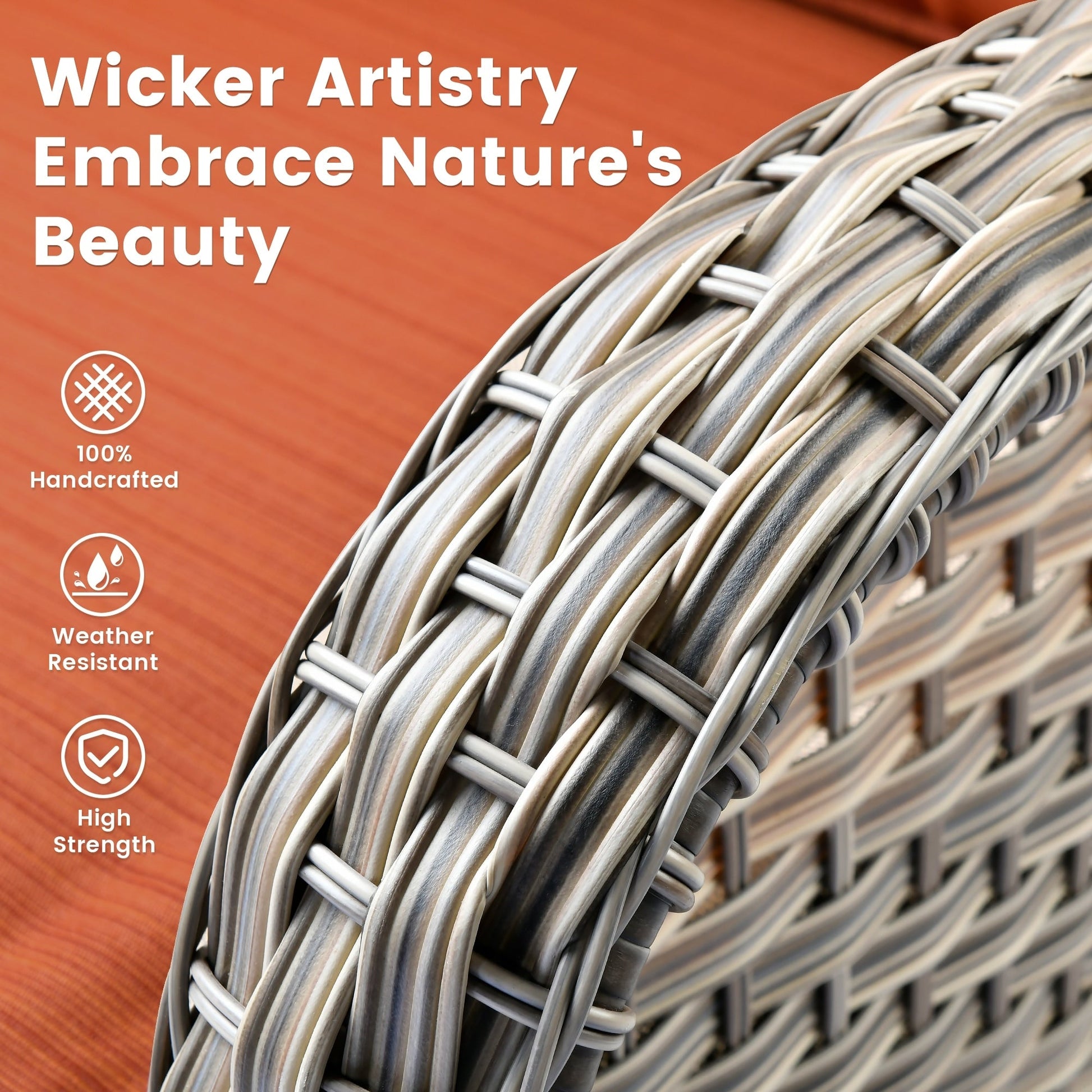Migliora la tua esperienza di vita all'aria aperta con questo set di mobili da esterno in vimini di alta qualità, ora comprensivo di un elegante braciere in metallo, progettato per combinare stile, comfort e funzionalità. Perfetto per riunioni di famiglia, feste all'aperto o momenti di relax, questo set di mobili offrirà l'ambiente ideale per ogni occasione.