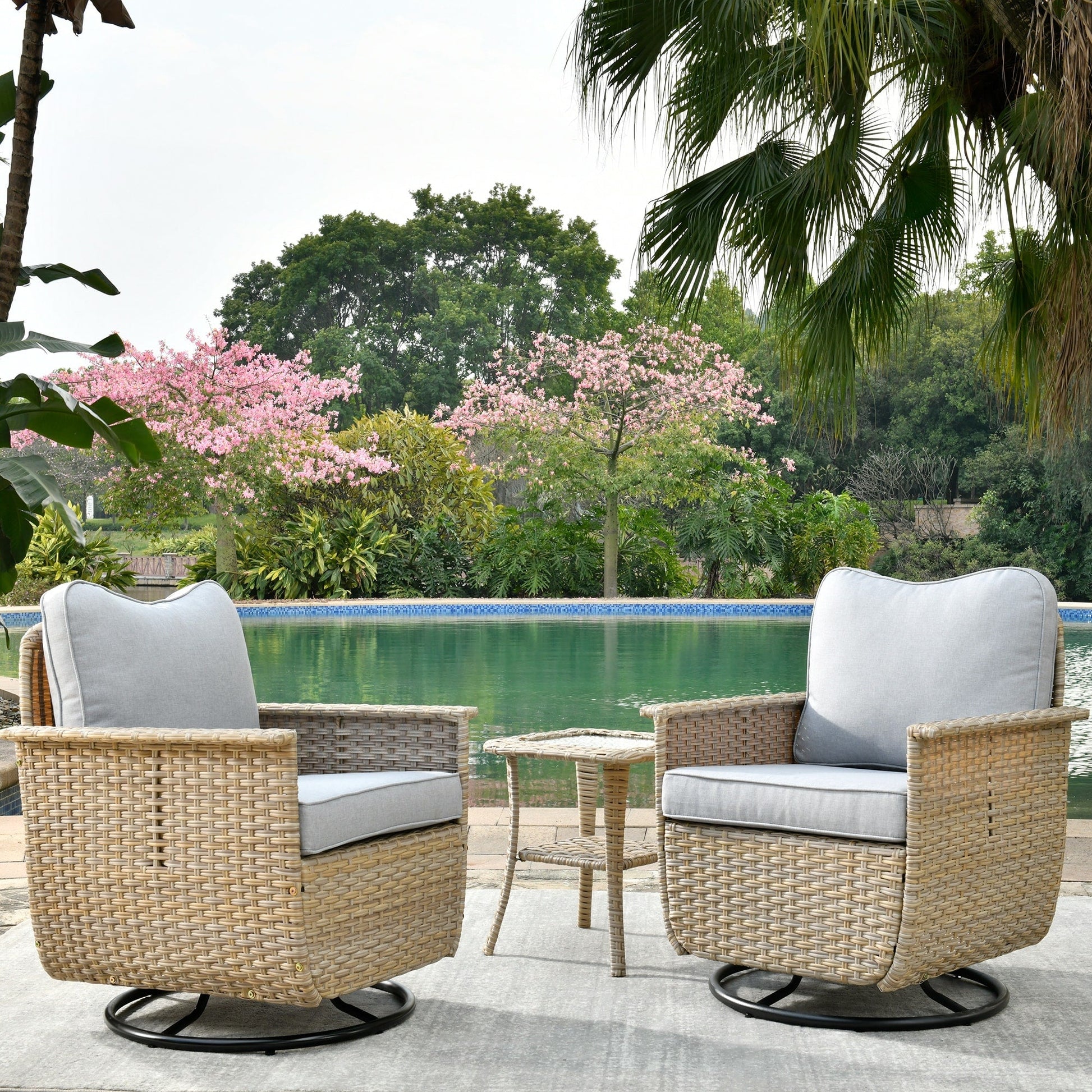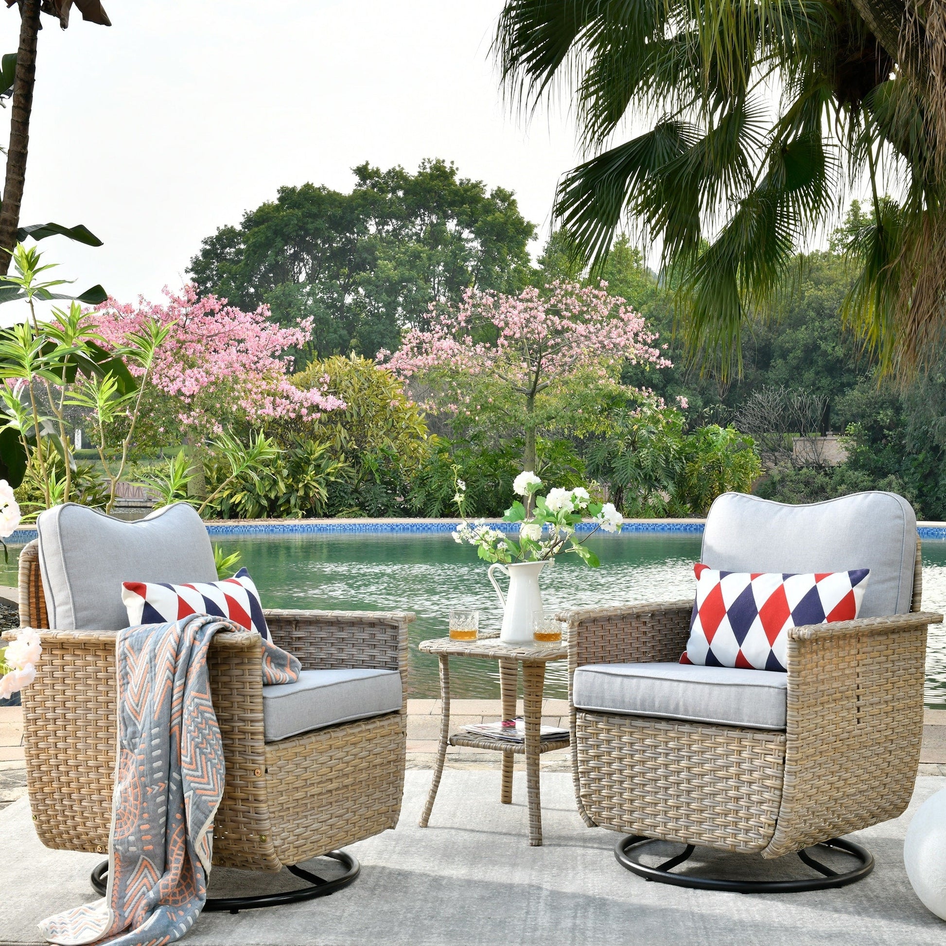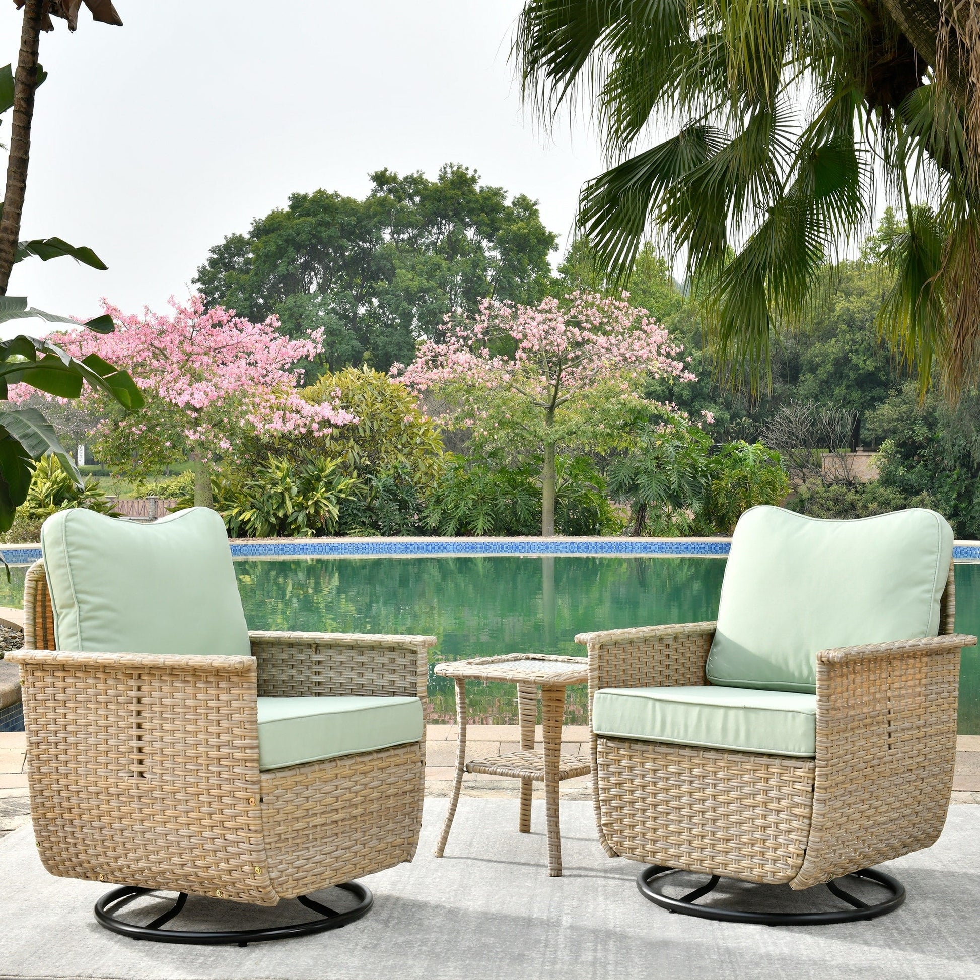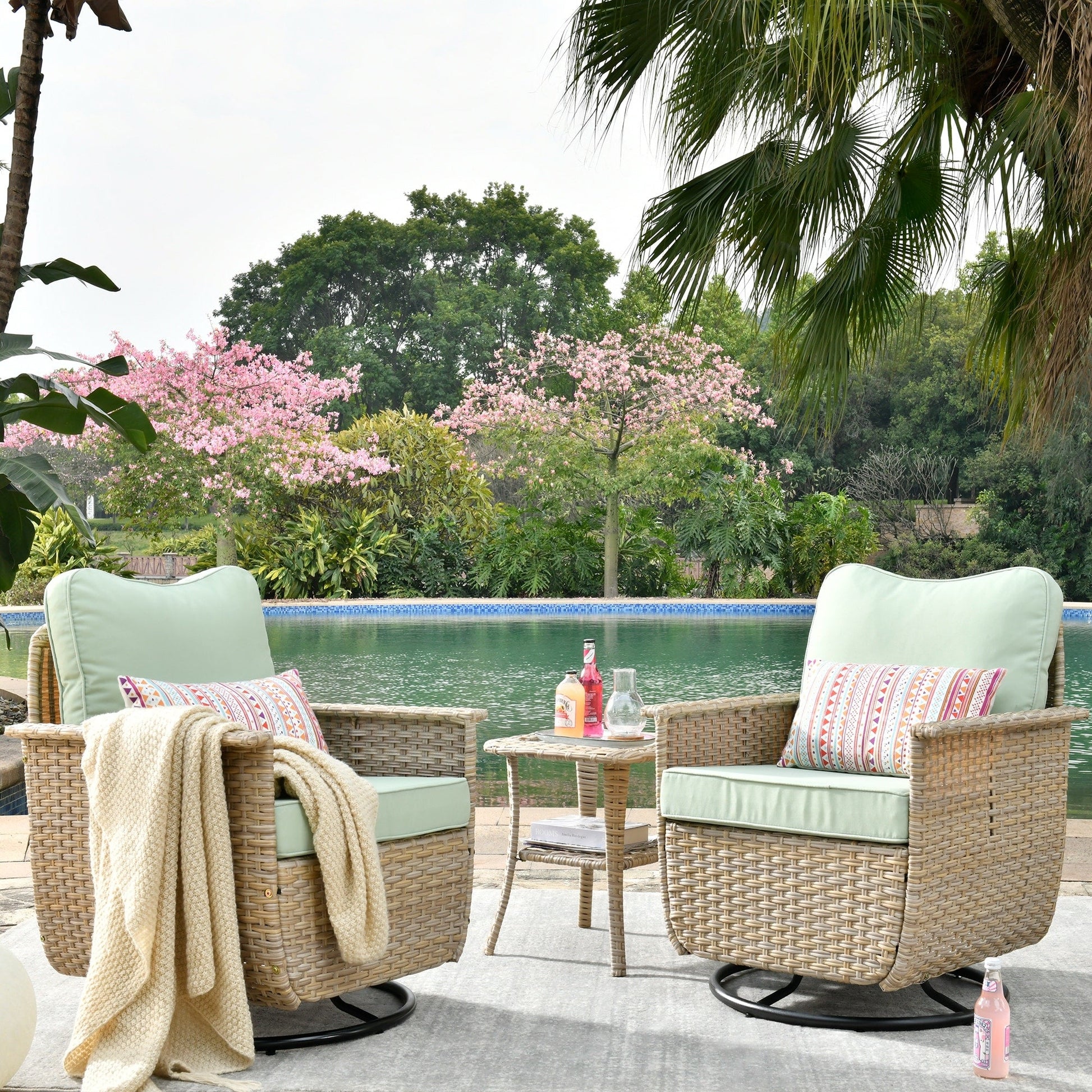 Set di 3 sedie girevoli in vimini per...