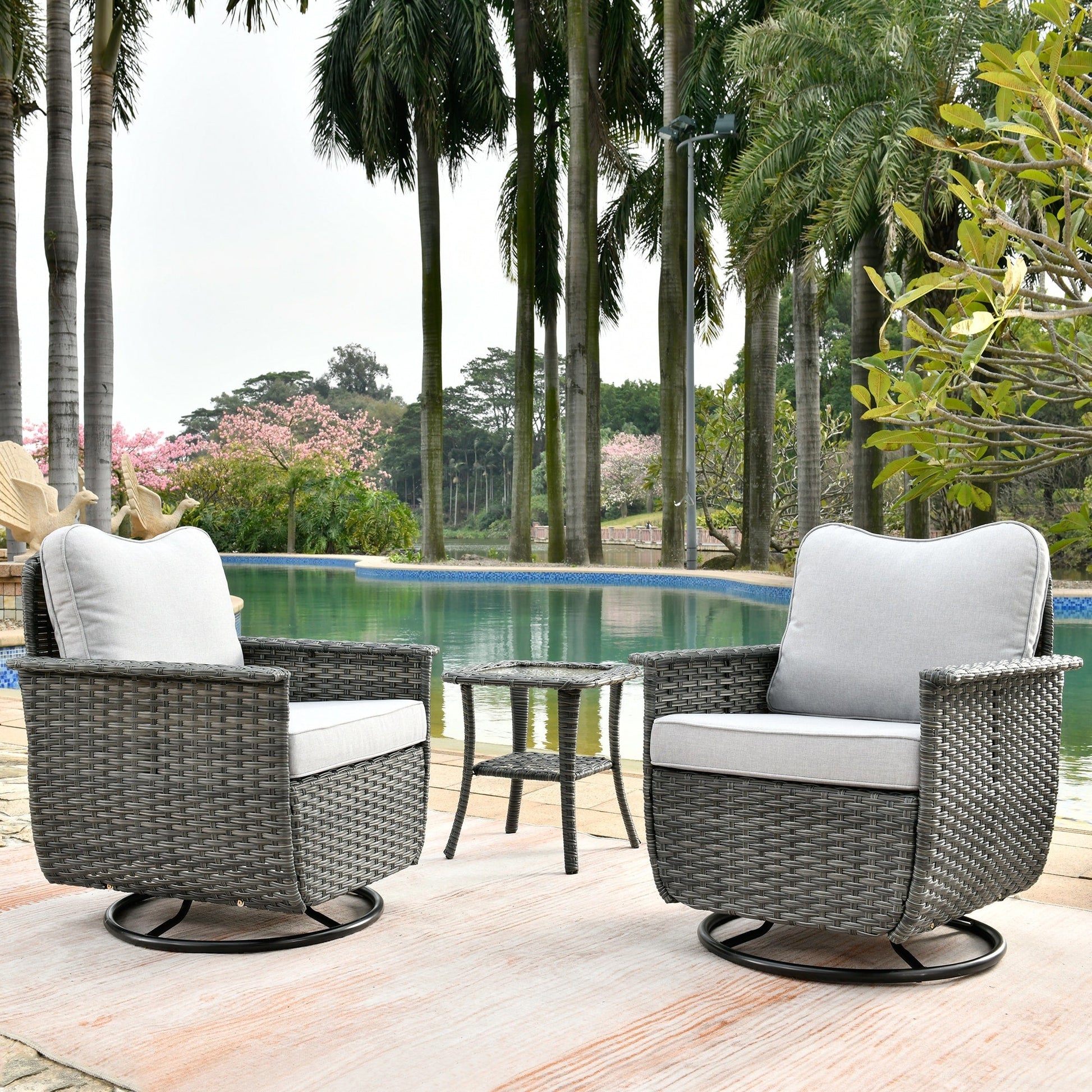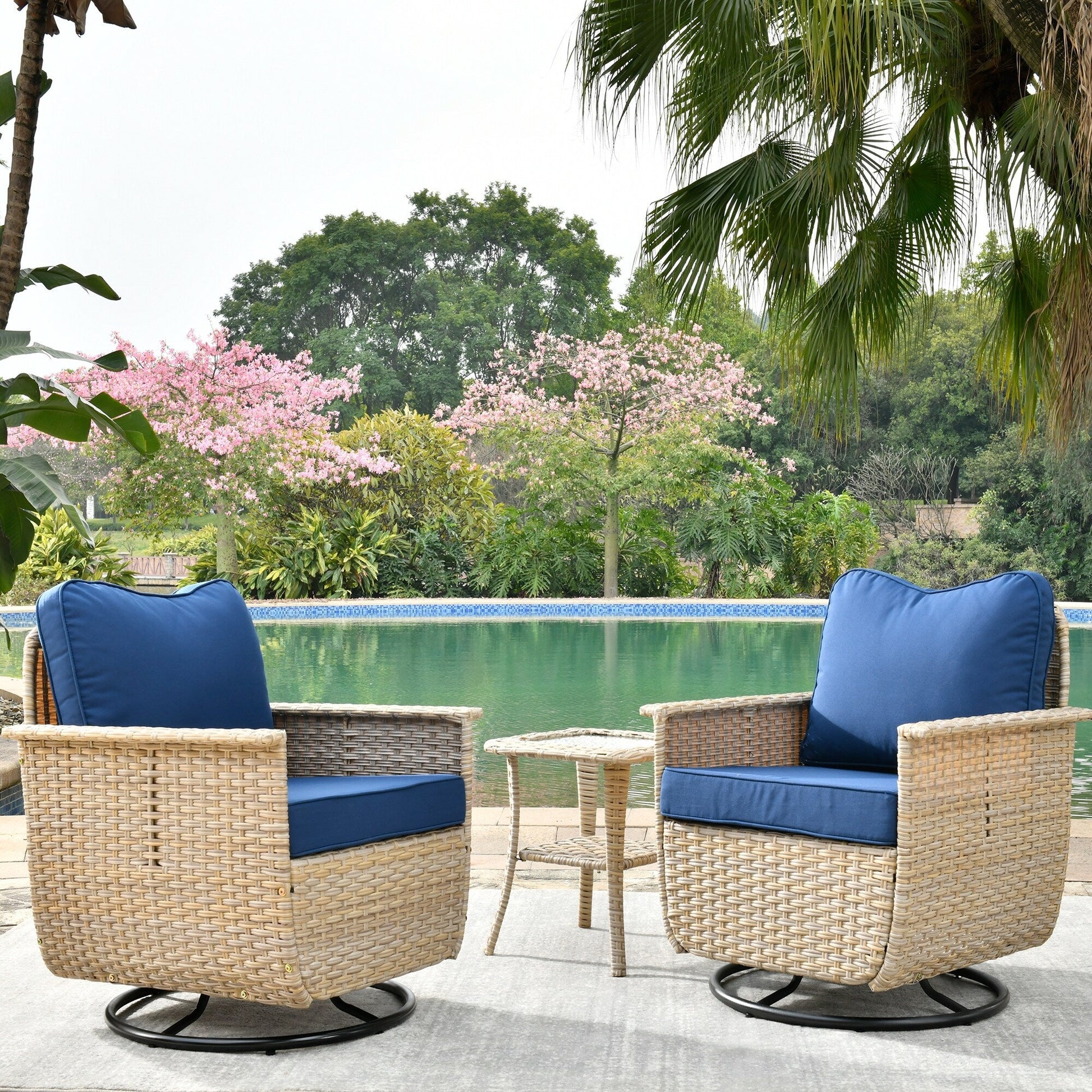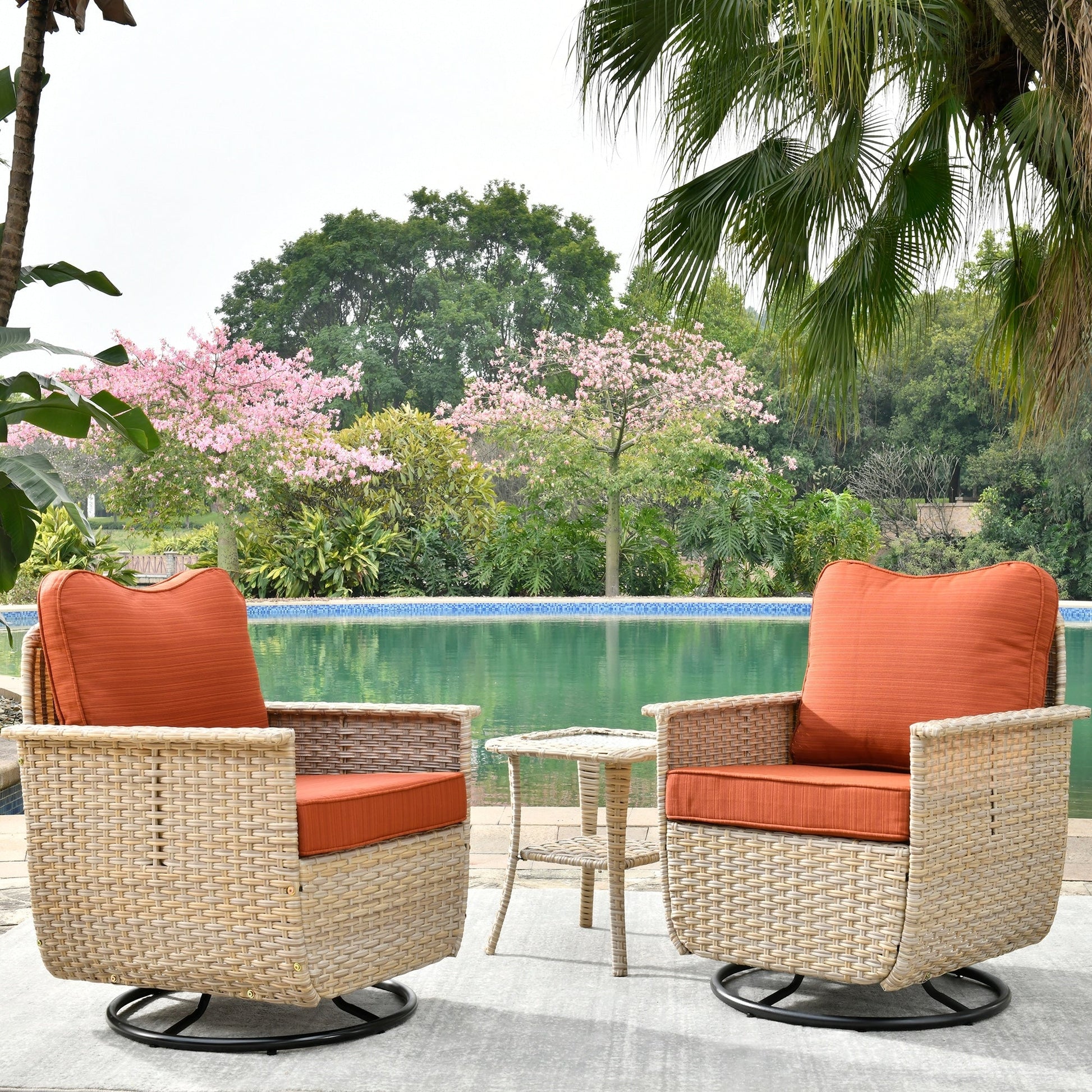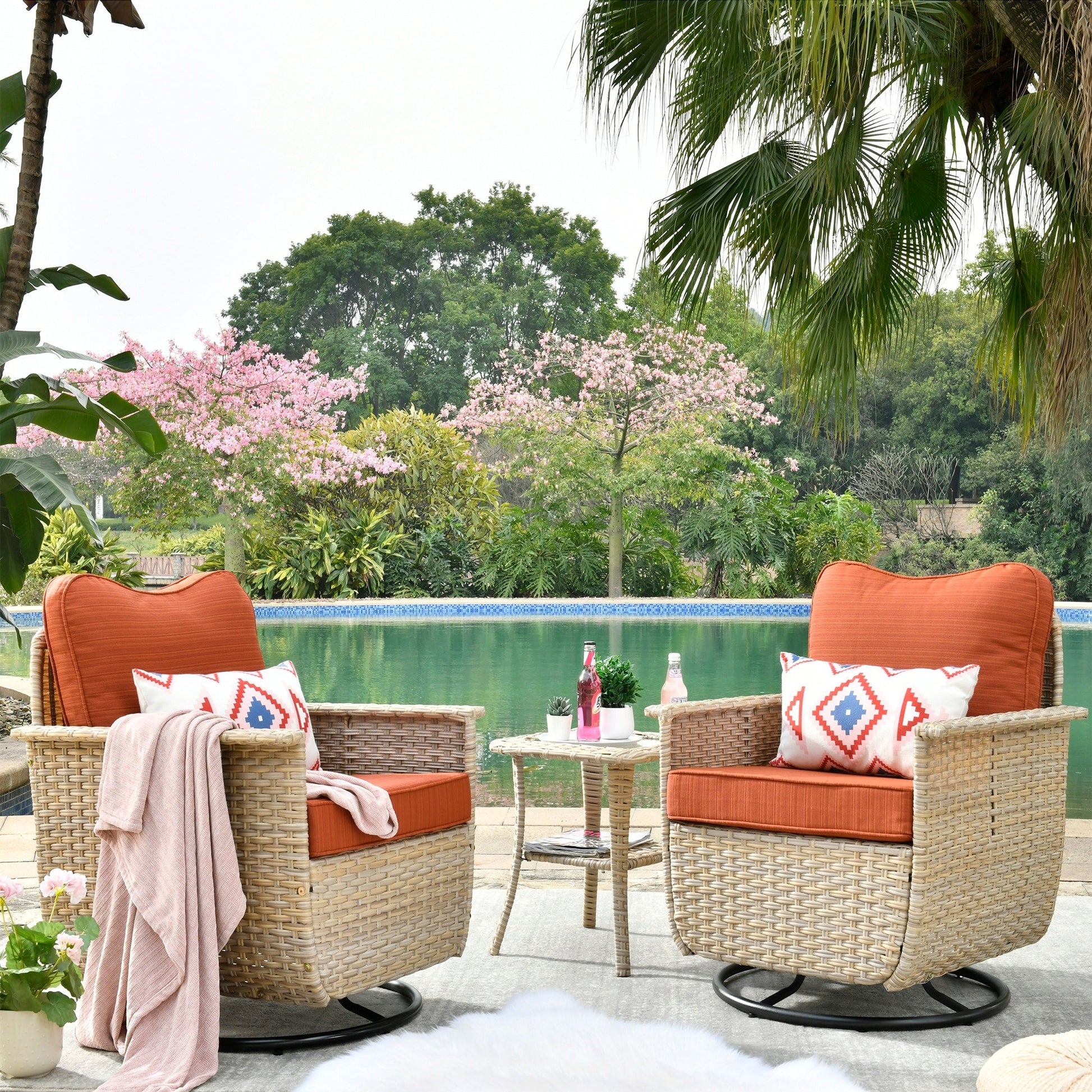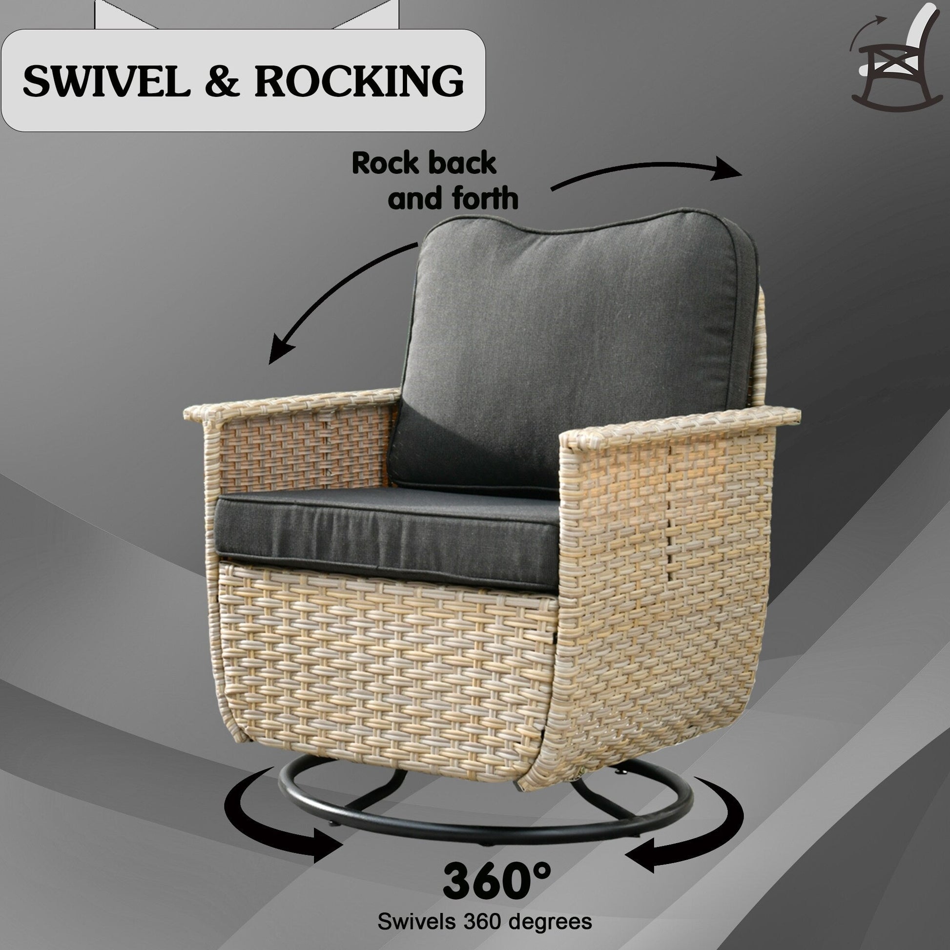 Set di 3 sedie girevoli in vimini per...