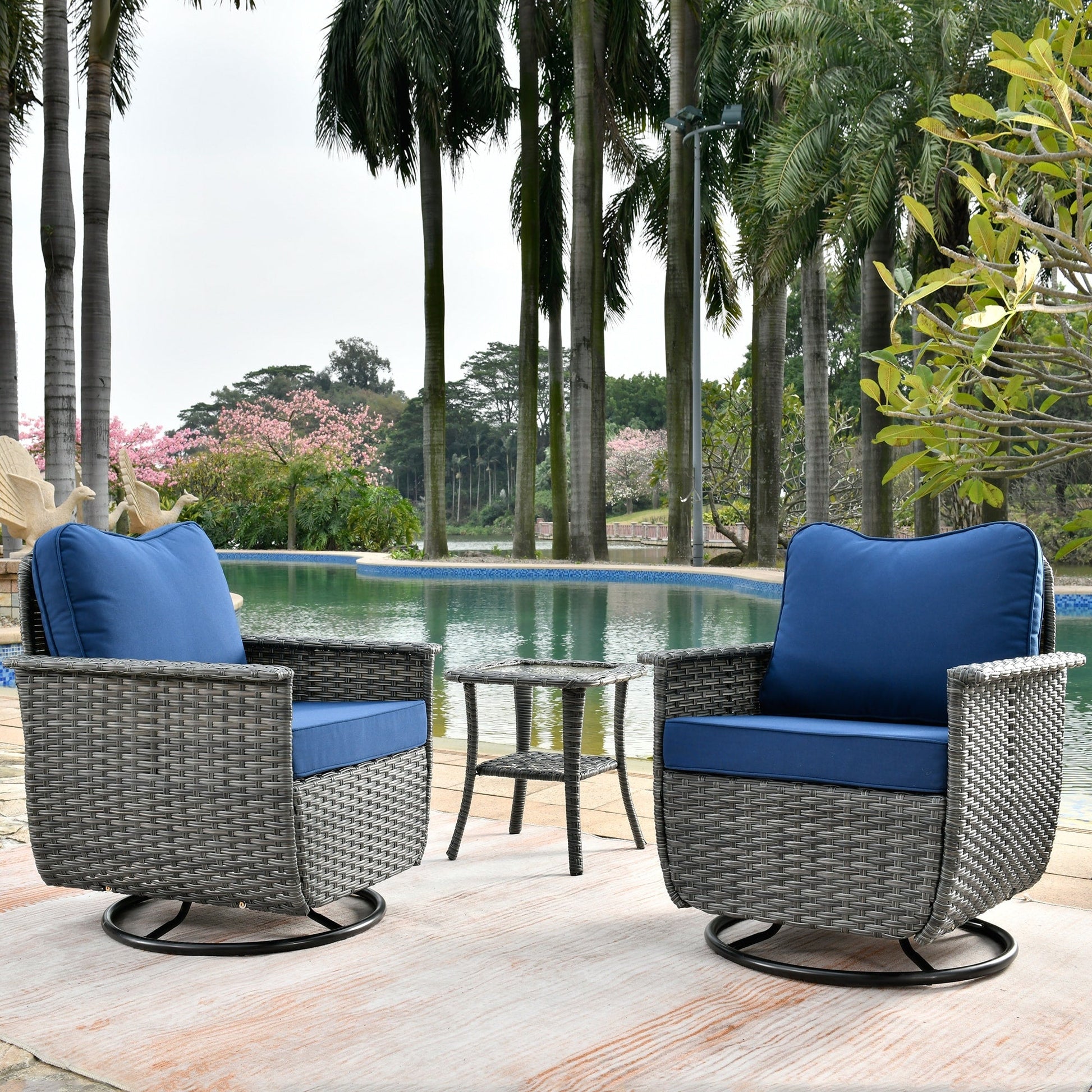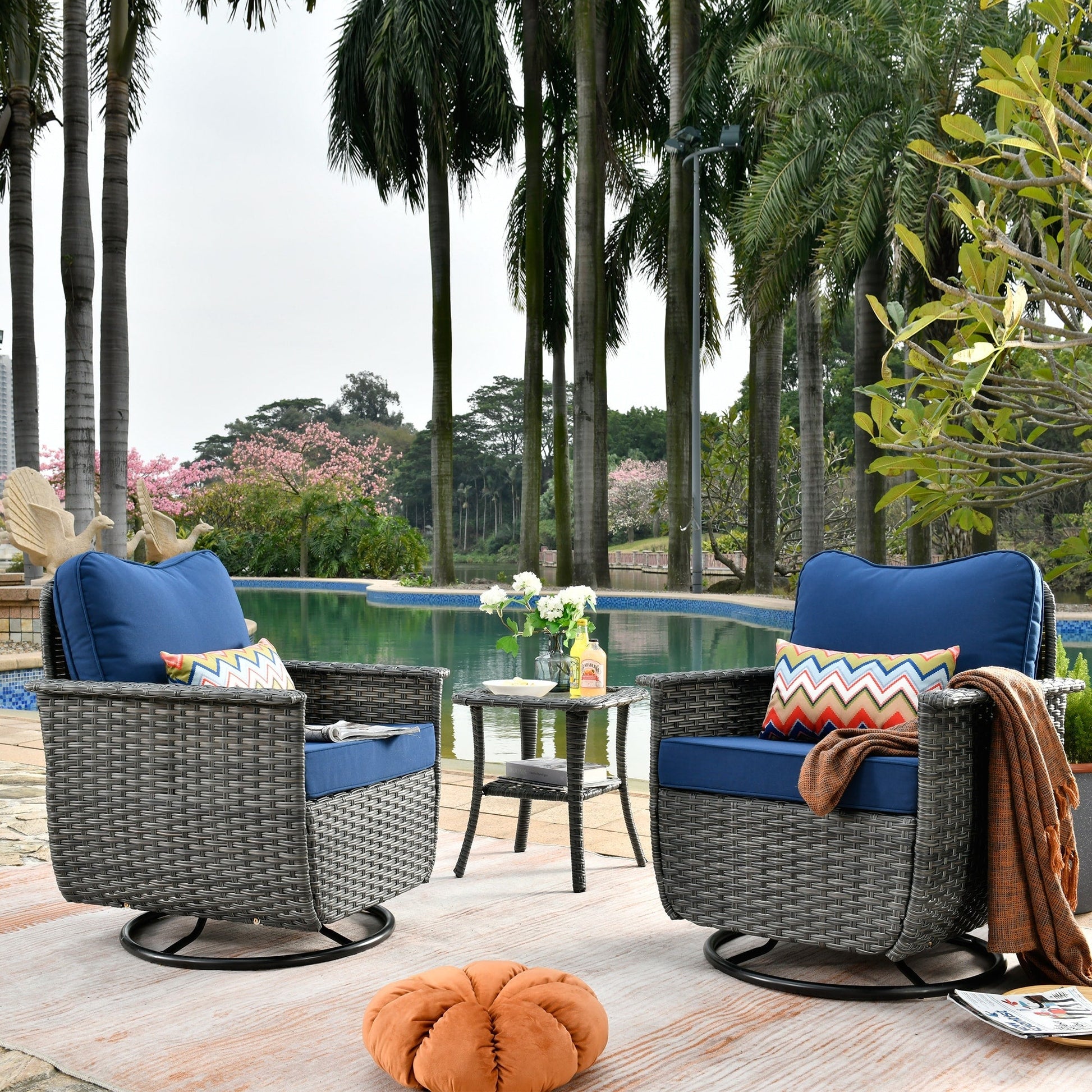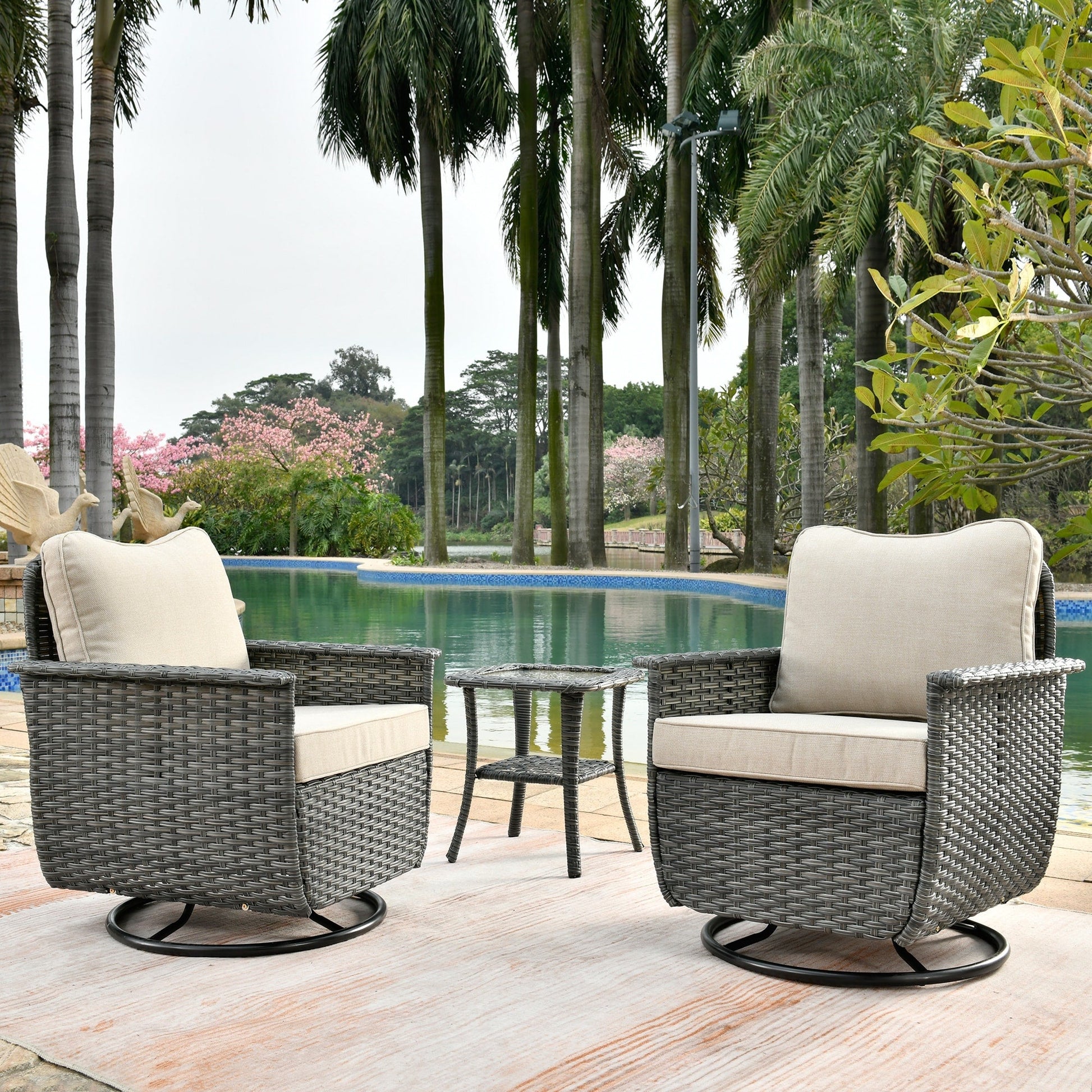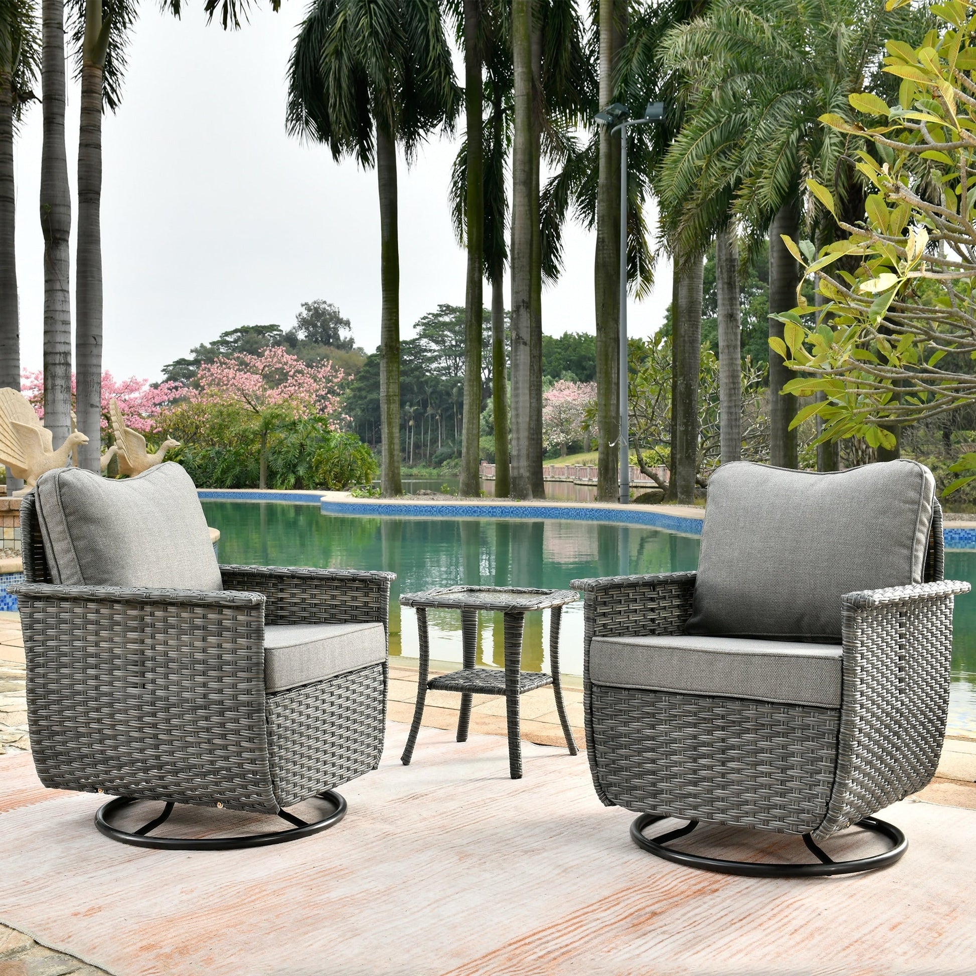 Set di 3 sedie girevoli in vimini per...