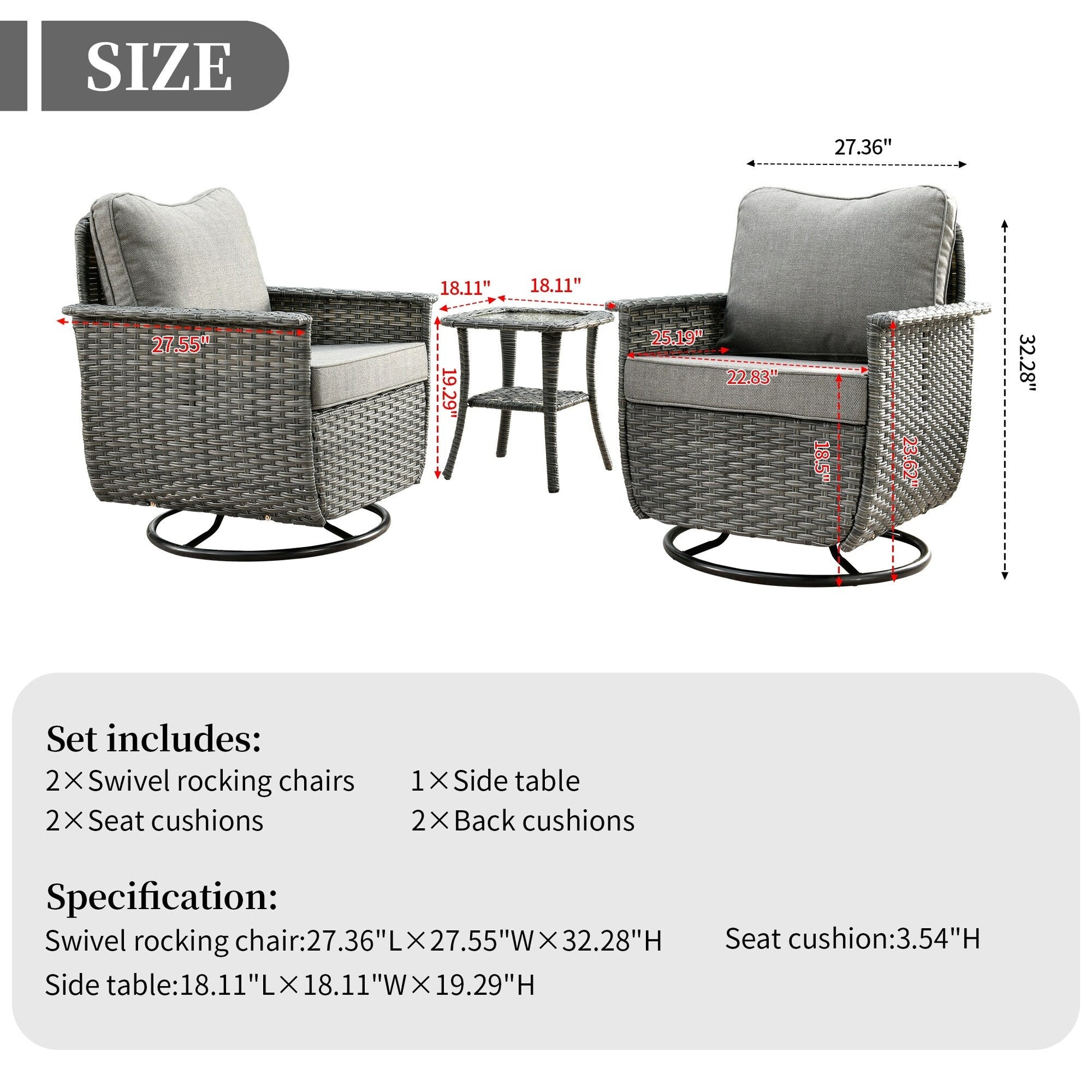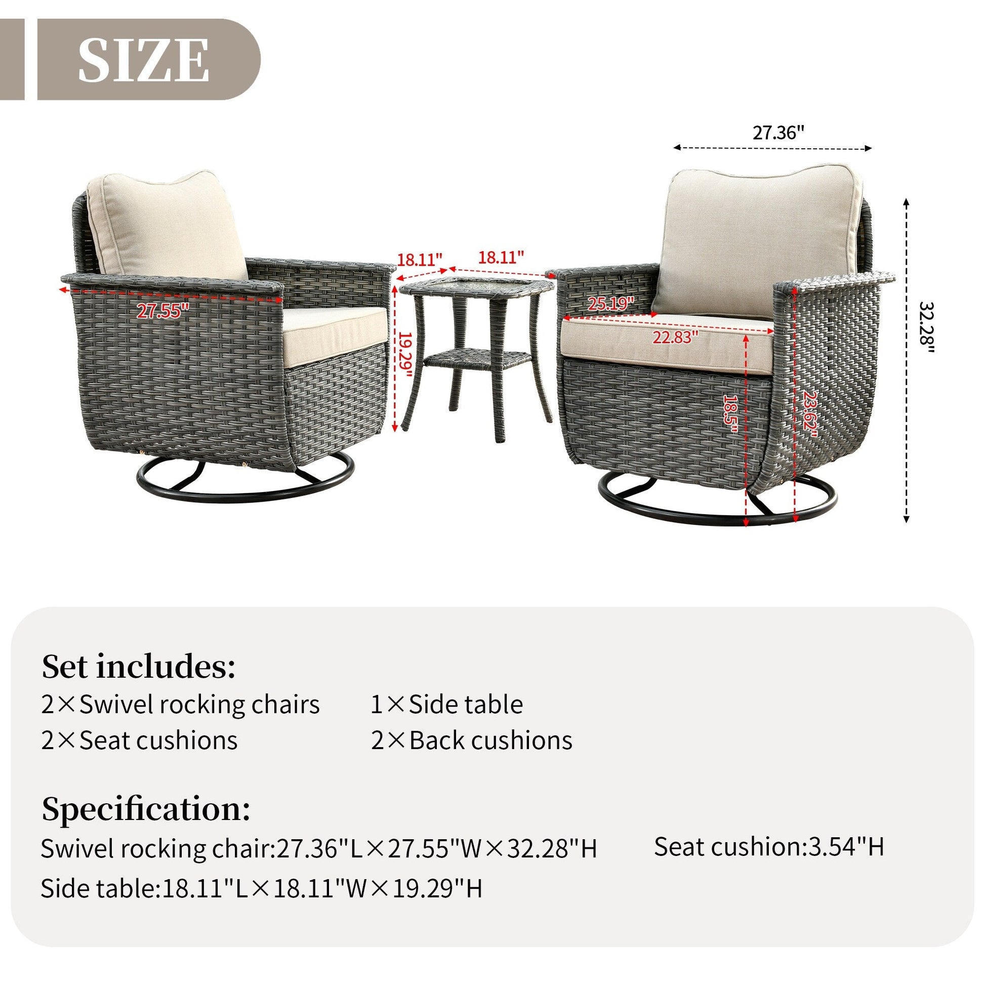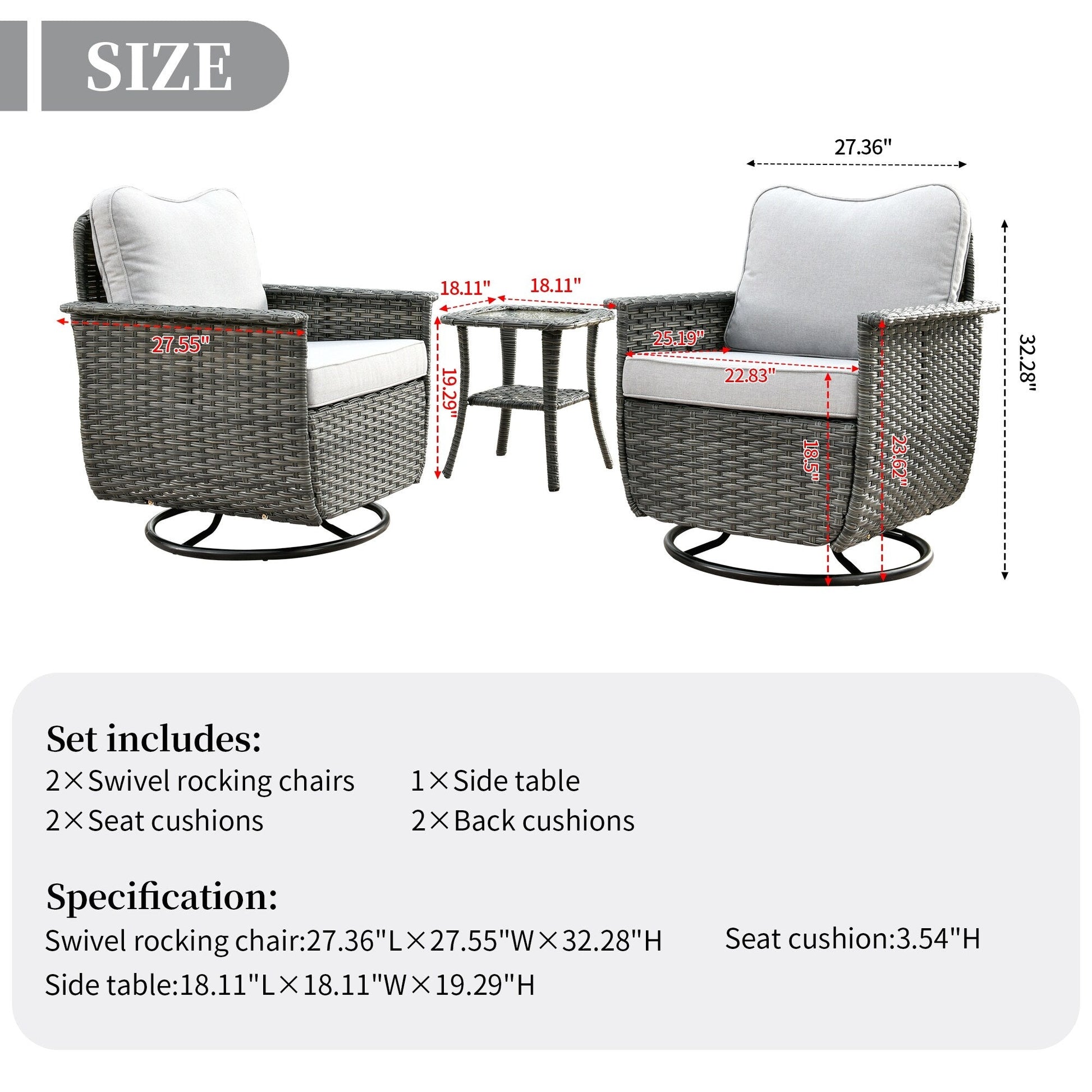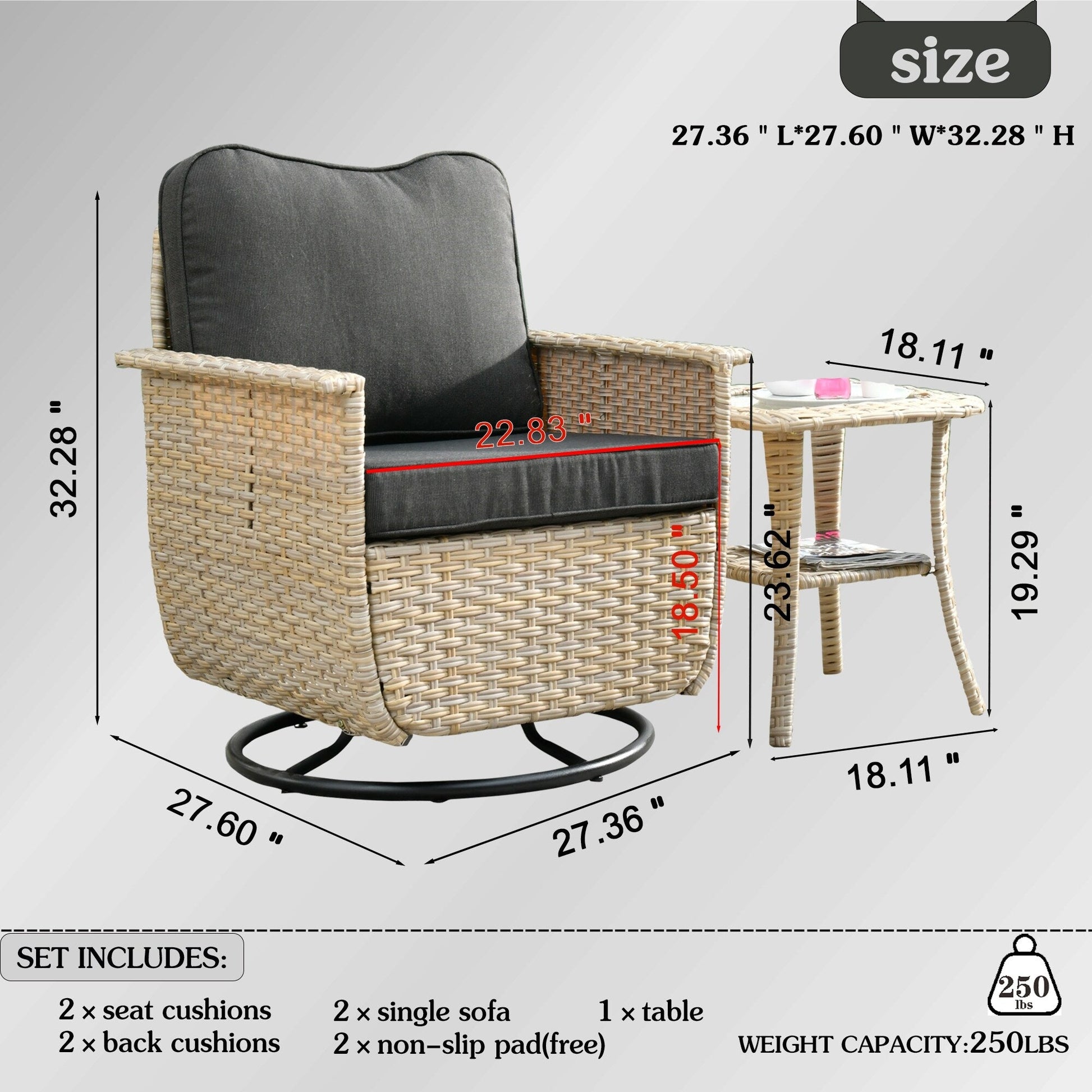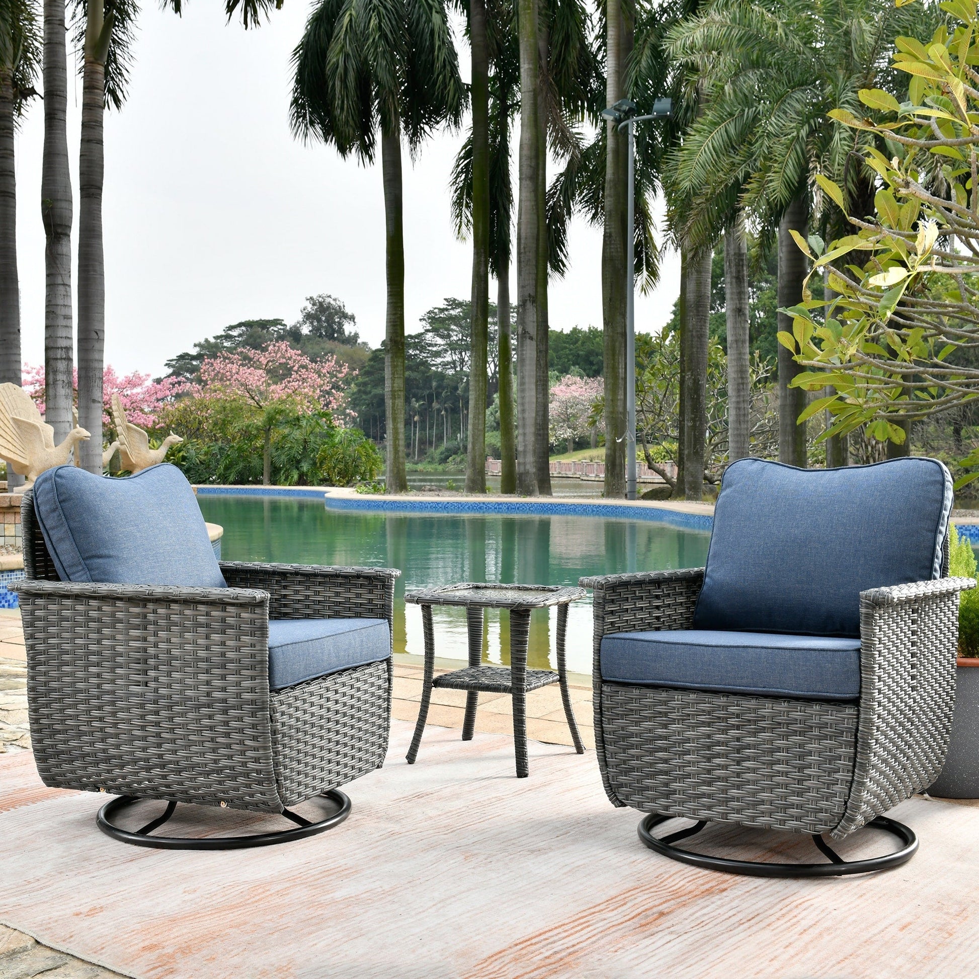 Set di 3 sedie girevoli in vimini per...