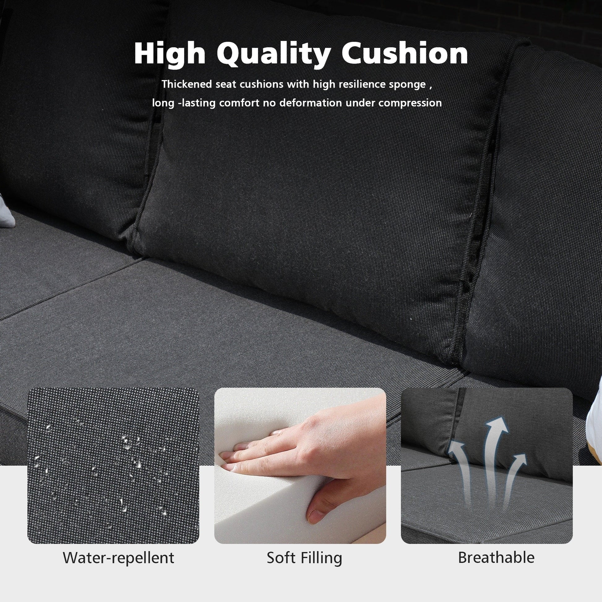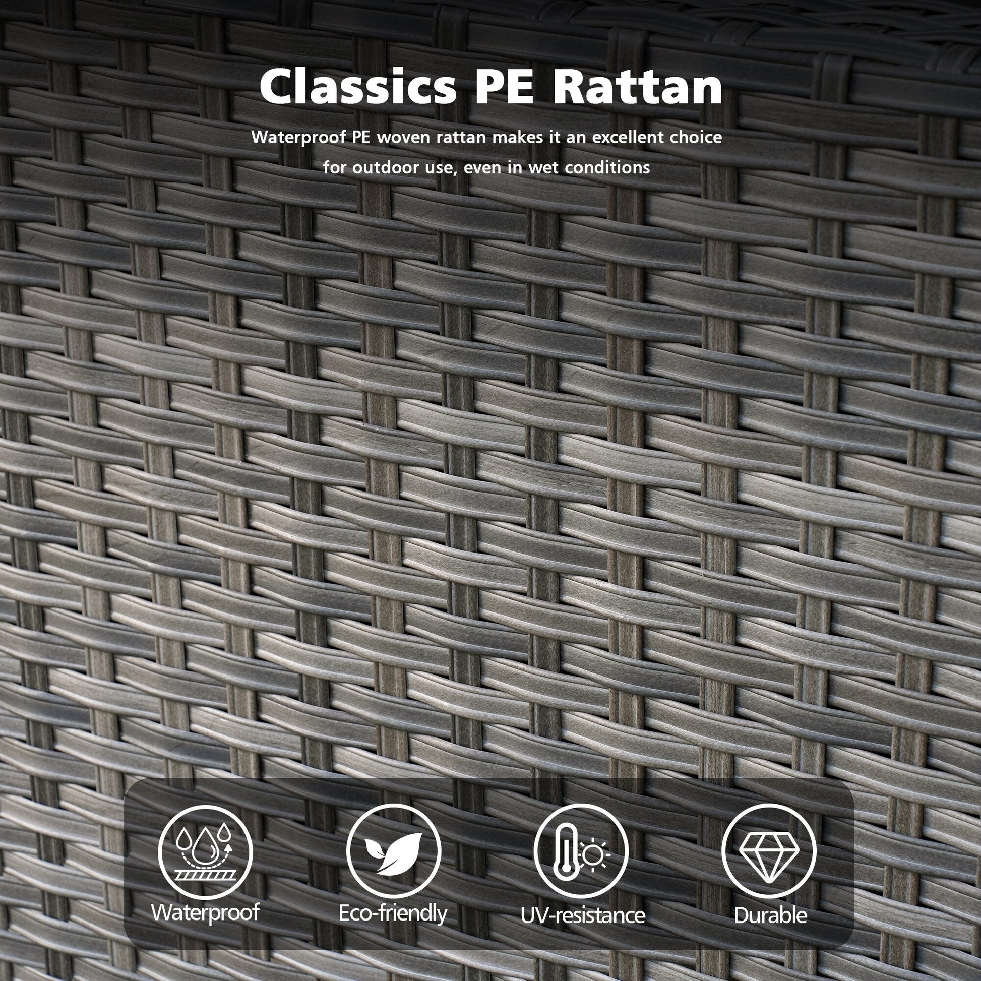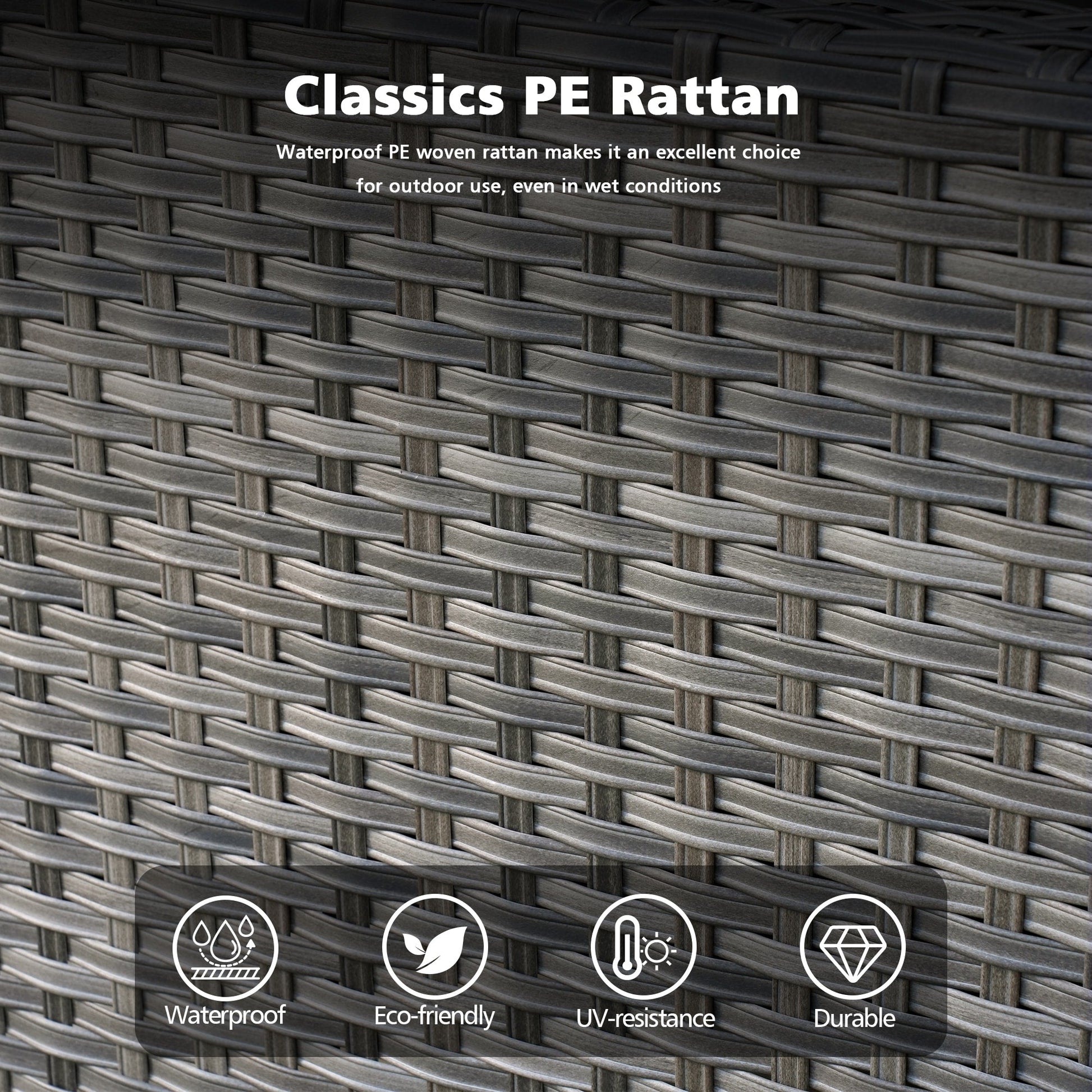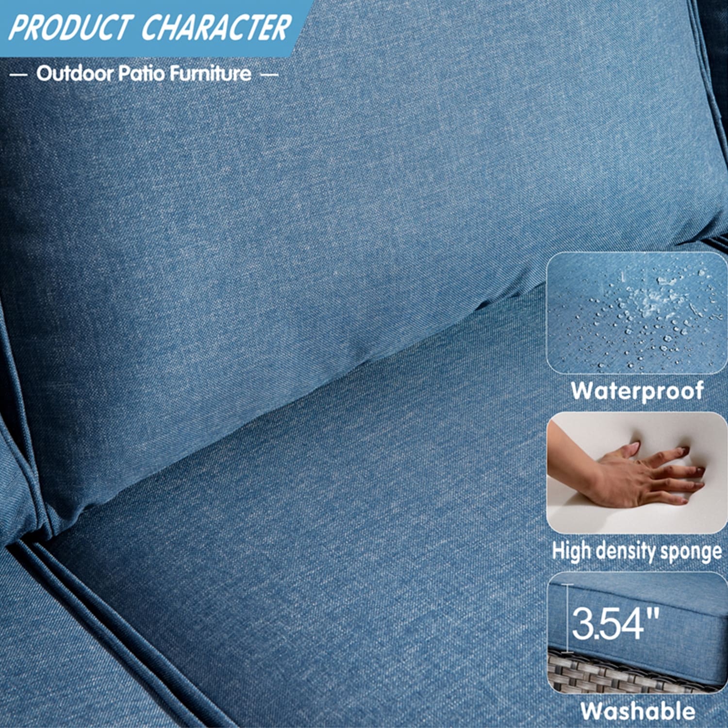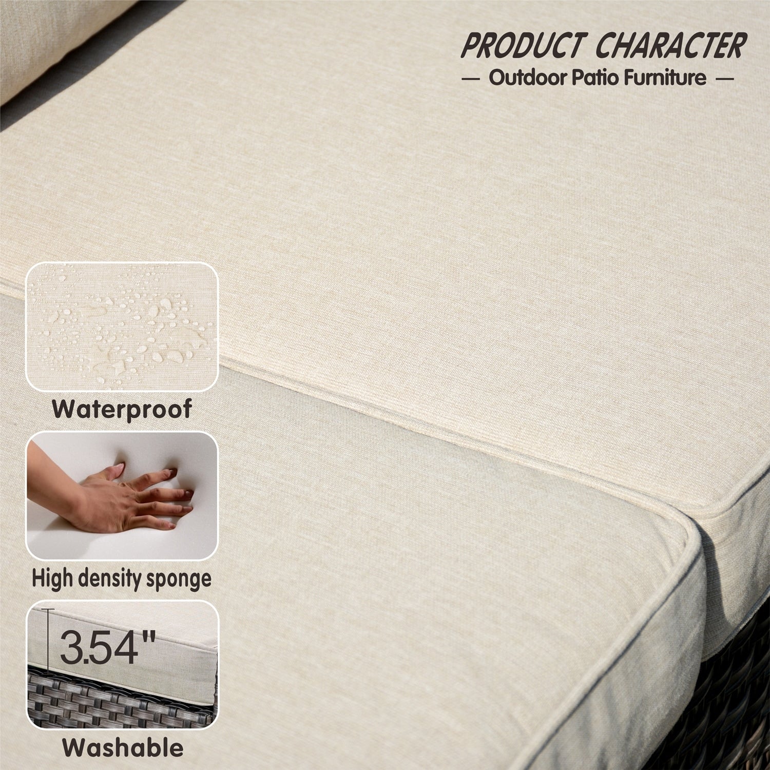 Resistente alle intemperie e idrorepellente: progettato per resistere alla pioggia leggera, questo set di mobili è perfetto per l'uso all'aperto in diverse condizioni atmosferiche. I cuscini e i mobili sono resistenti all'acqua e allo scolorimento, mantenendo il loro aspetto e il comfort nel tempo.