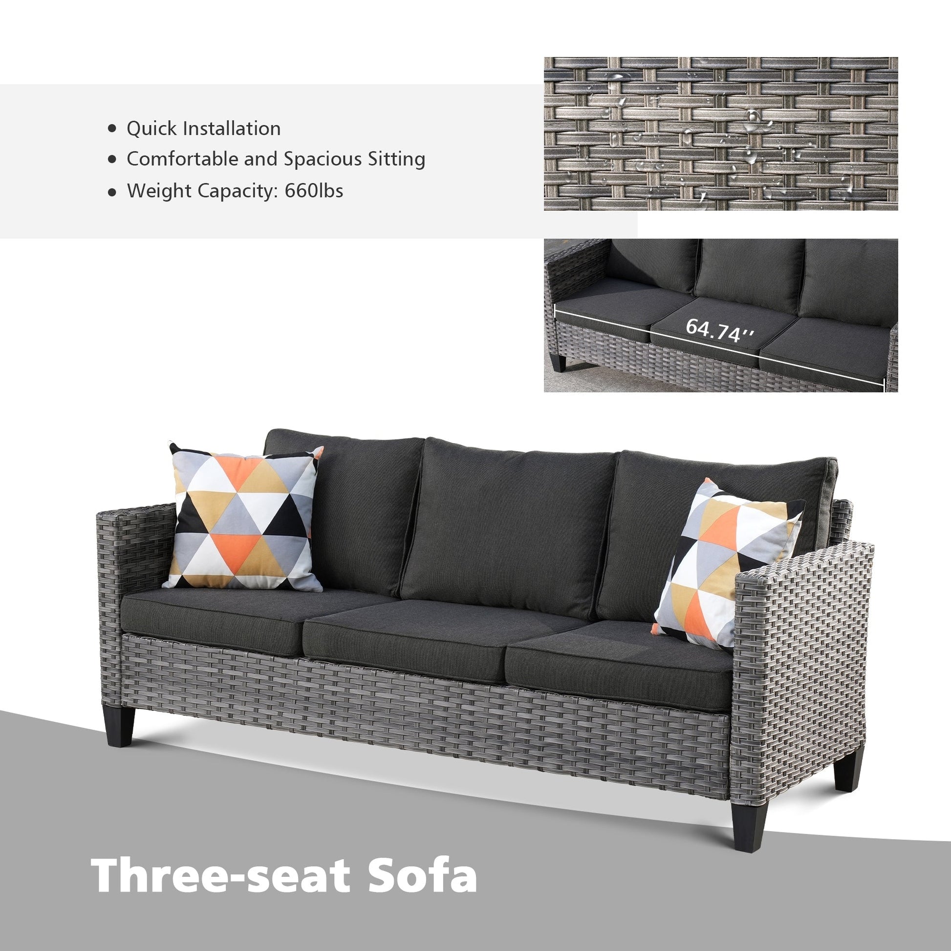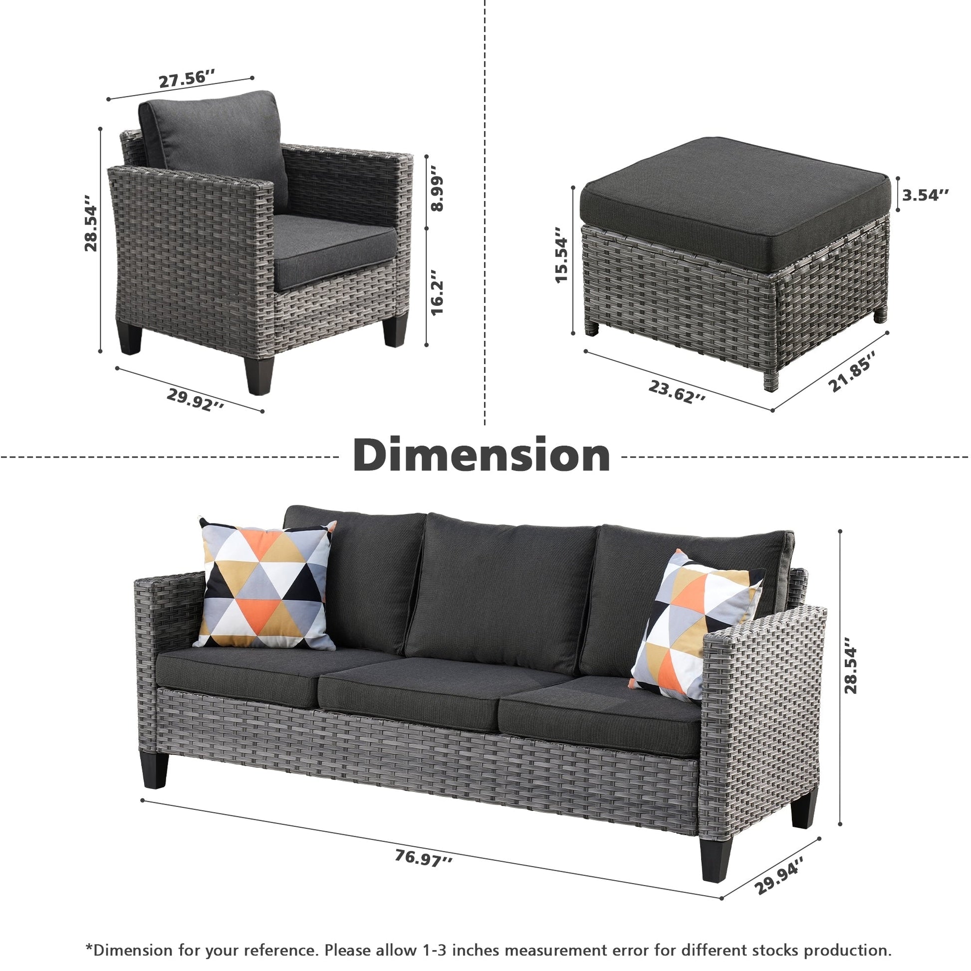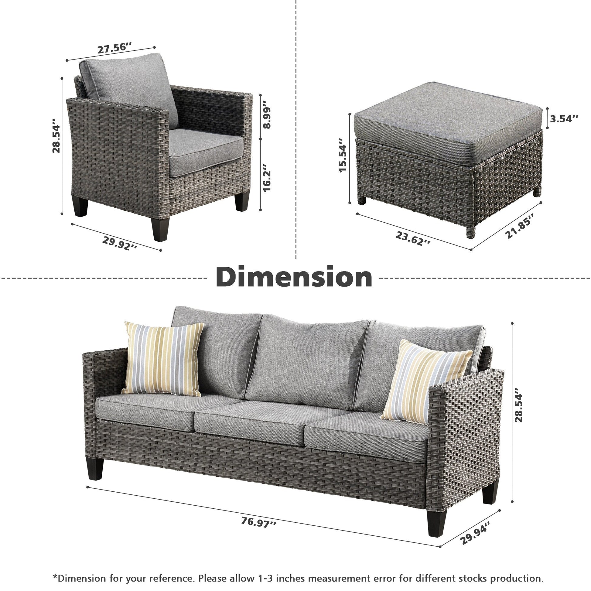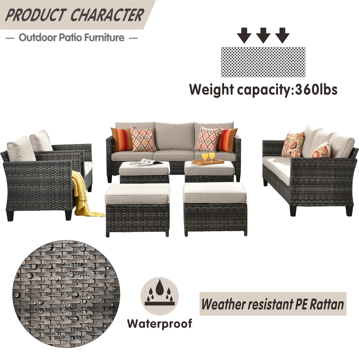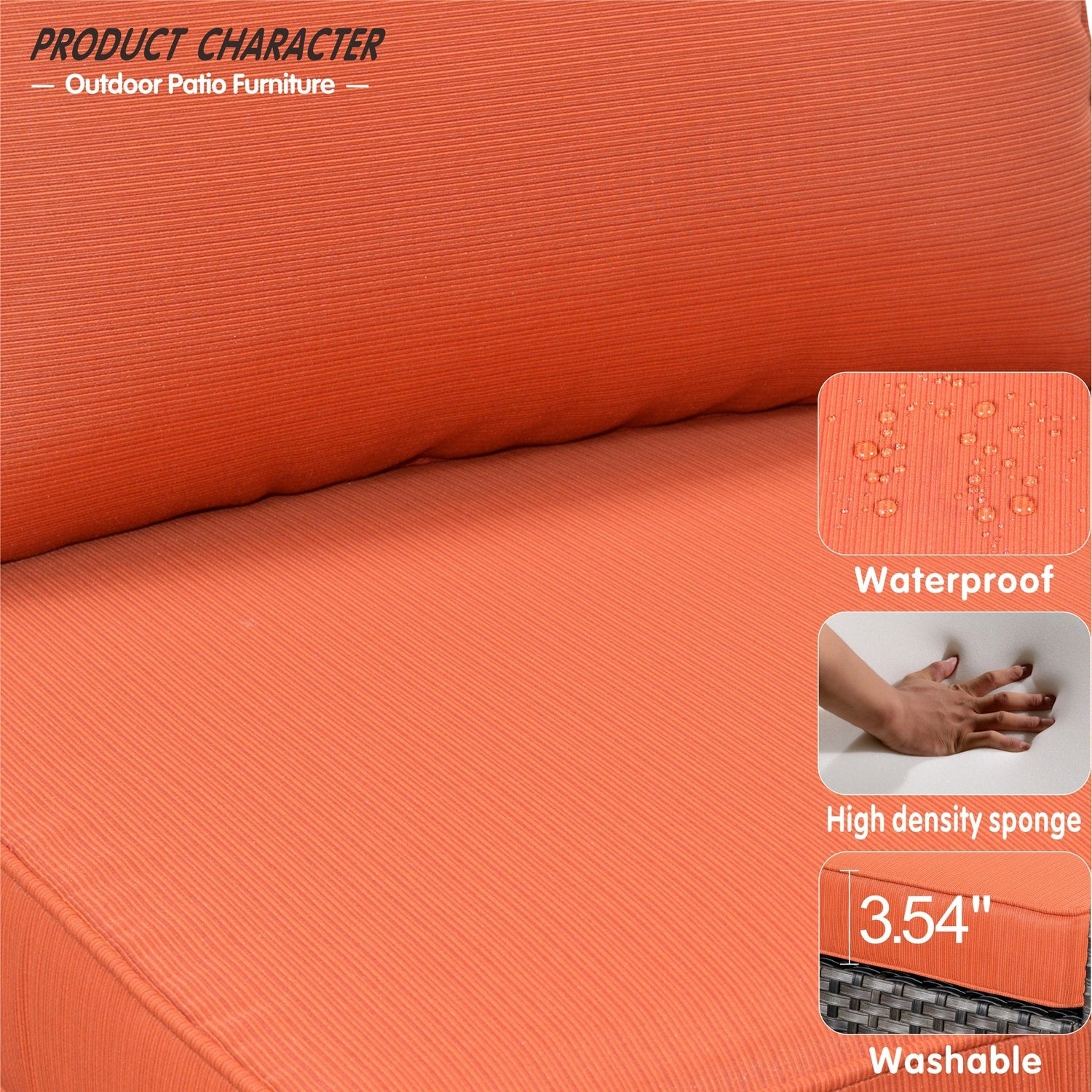 Resistente alle intemperie e idrorepellente: progettato per resistere alla pioggia leggera, questo set di mobili è perfetto per l'uso all'aperto in diverse condizioni atmosferiche. I cuscini e i mobili sono resistenti all'acqua e allo scolorimento, mantenendo il loro aspetto e il comfort nel tempo.