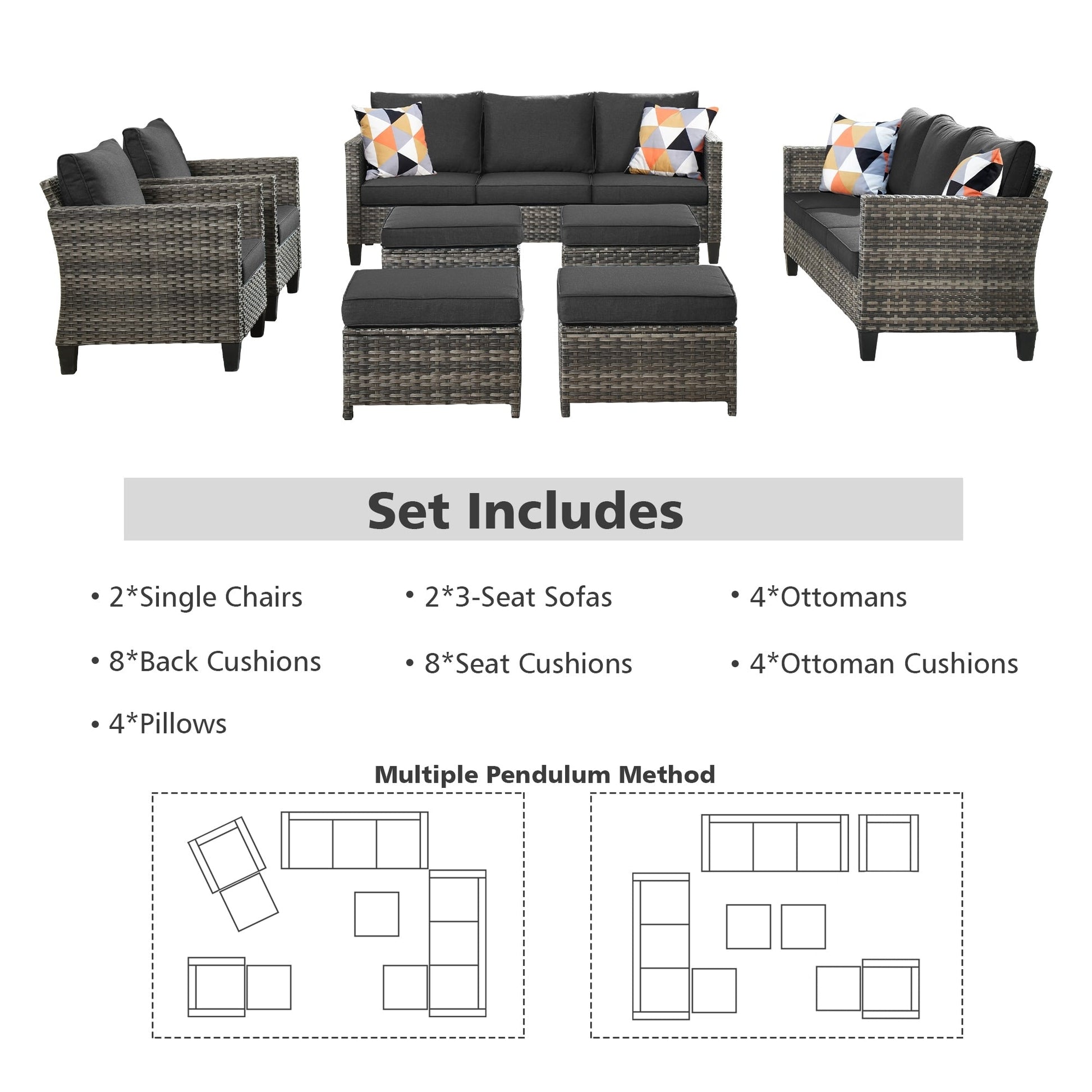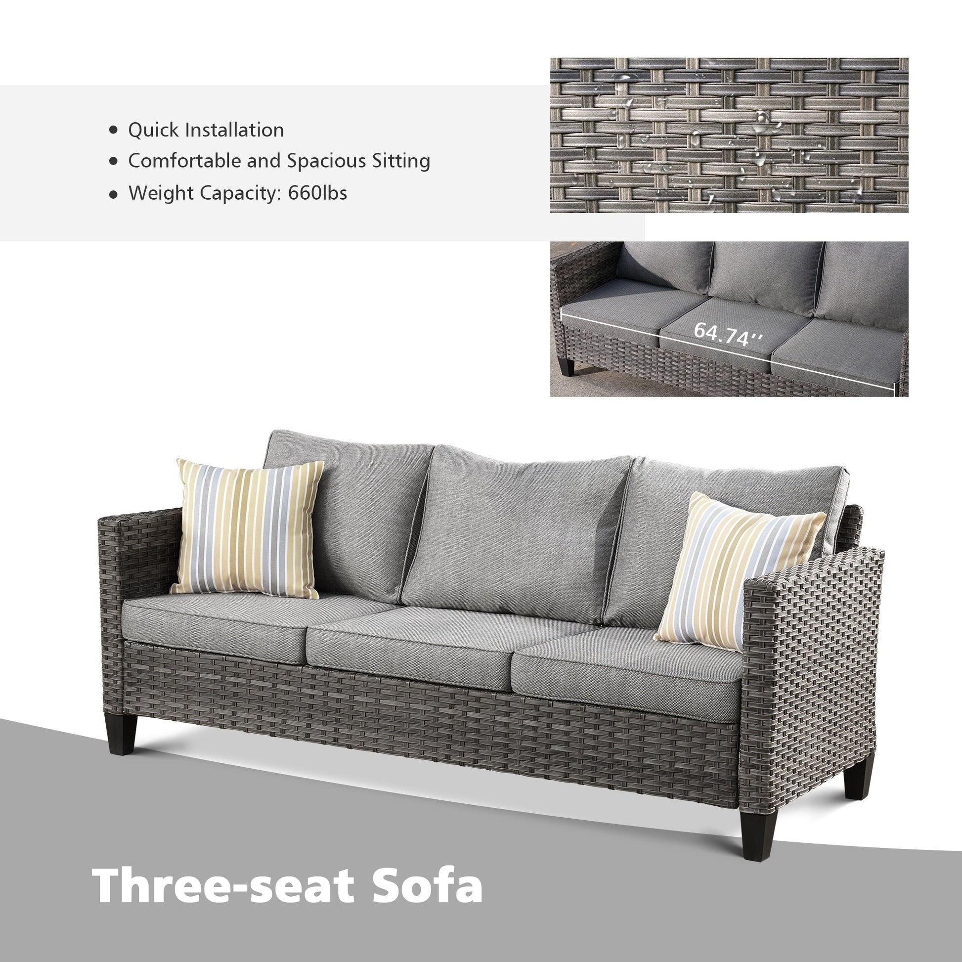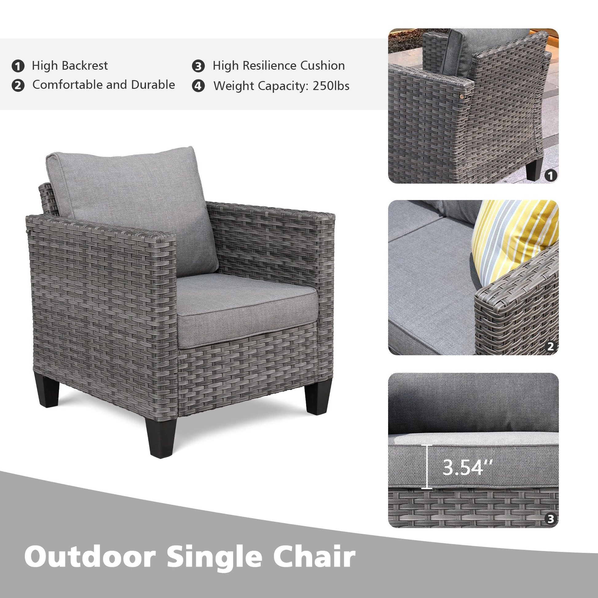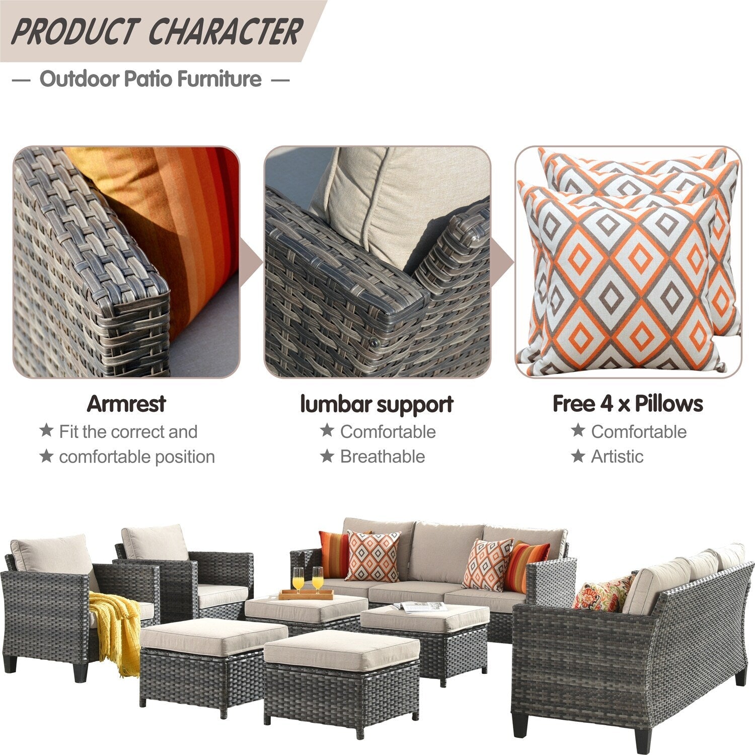 Resistente alle intemperie e idrorepellente: progettato per resistere alla pioggia leggera, questo set di mobili è perfetto per l'uso all'aperto in diverse condizioni atmosferiche. I cuscini e i mobili sono resistenti all'acqua e allo scolorimento, mantenendo il loro aspetto e il comfort nel tempo.