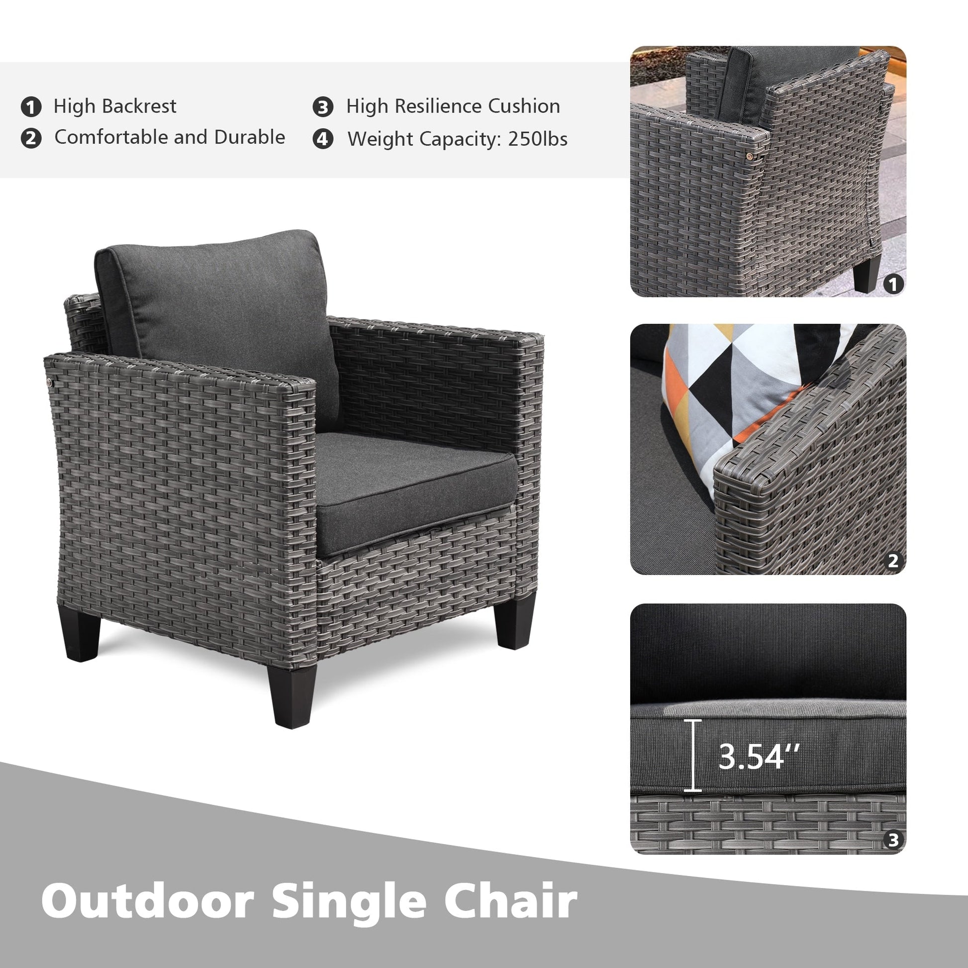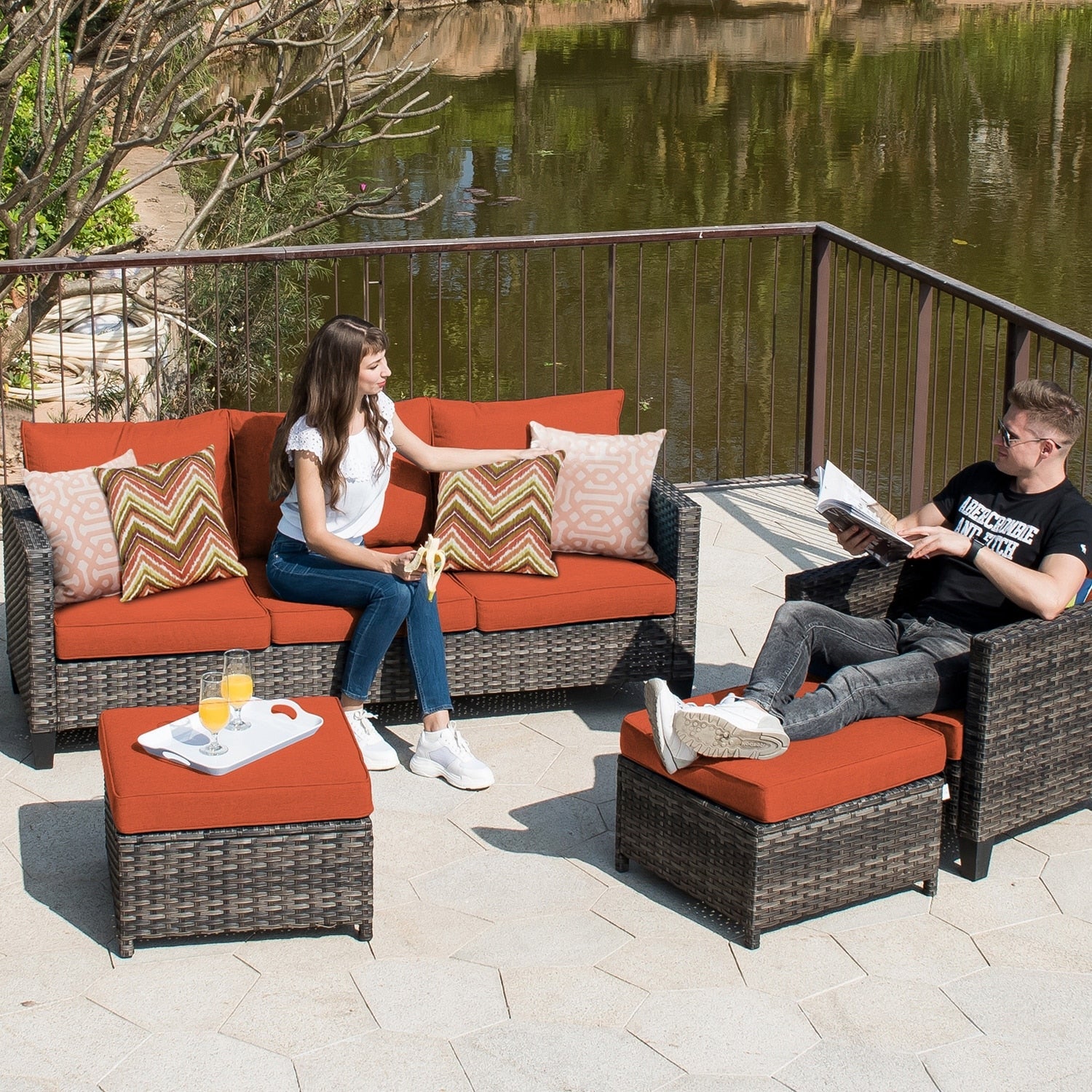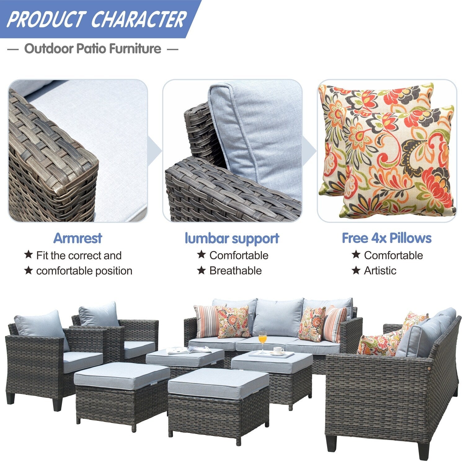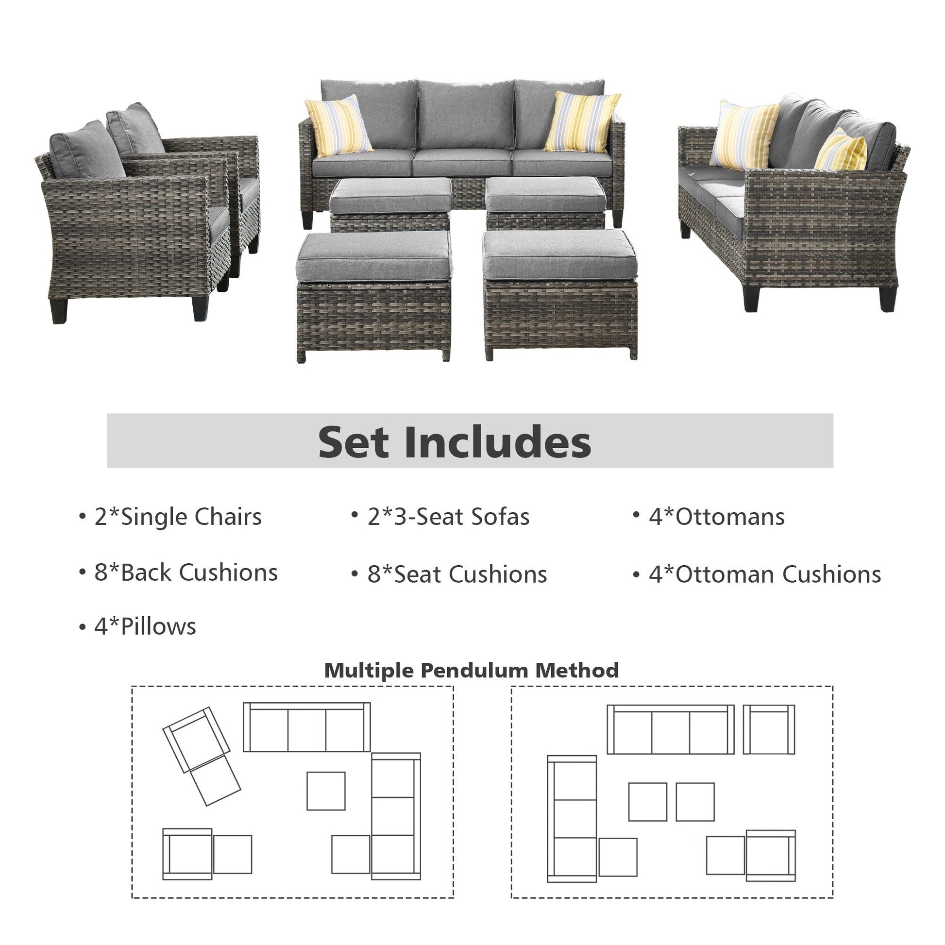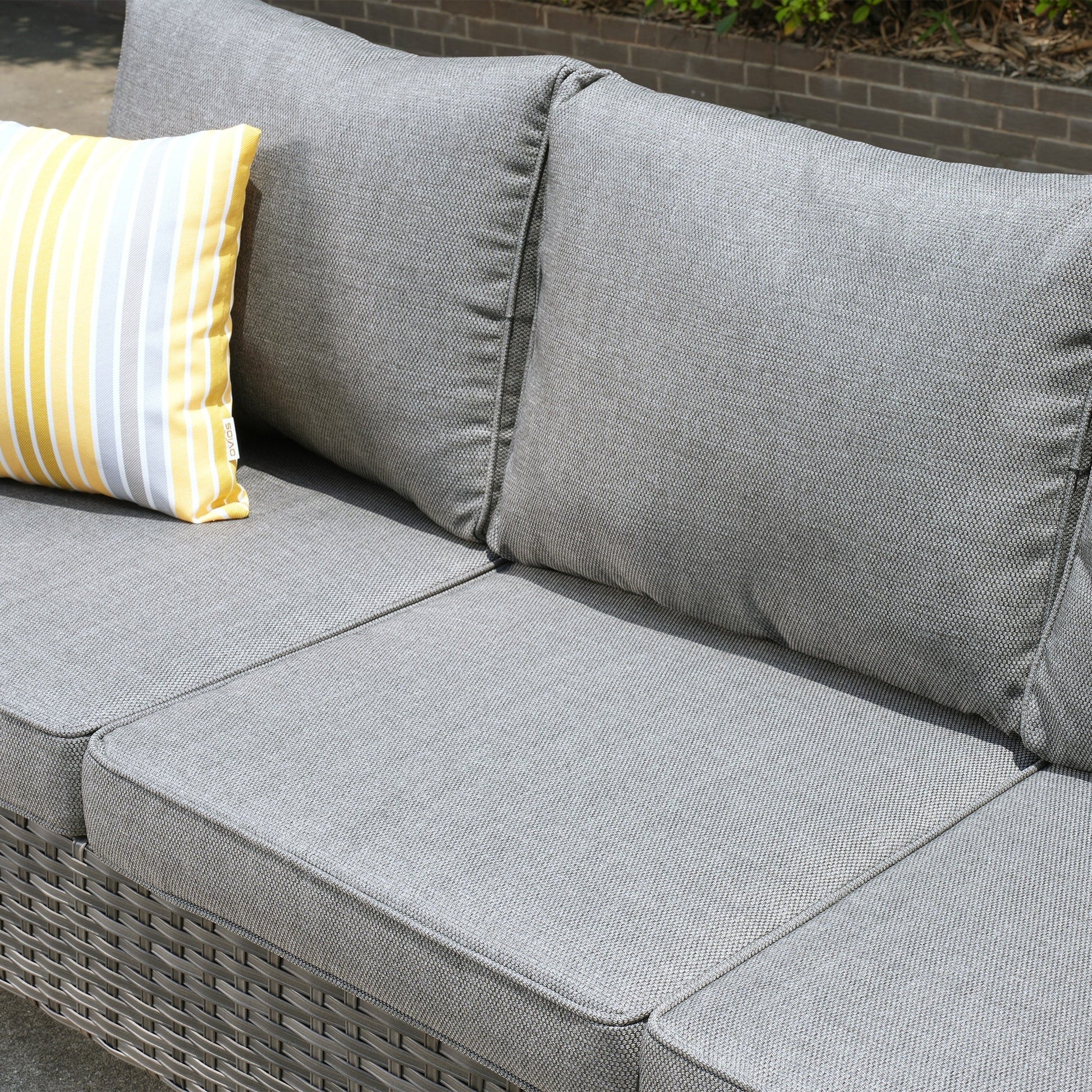 Resistente alle intemperie e idrorepellente: progettato per resistere alla pioggia leggera, questo set di mobili è perfetto per l'uso all'aperto in diverse condizioni atmosferiche. I cuscini e i mobili sono resistenti all'acqua e allo scolorimento, mantenendo il loro aspetto e il comfort nel tempo.