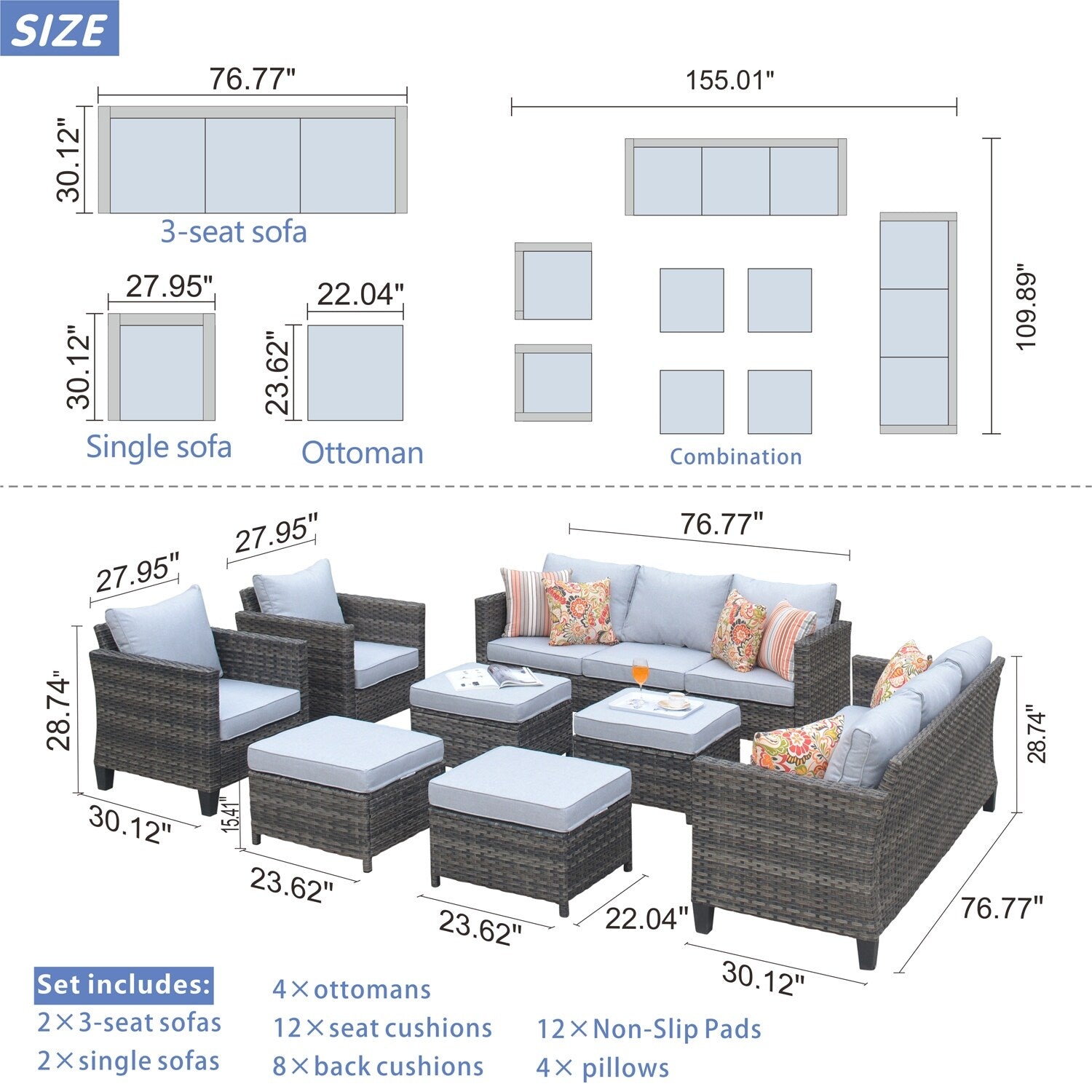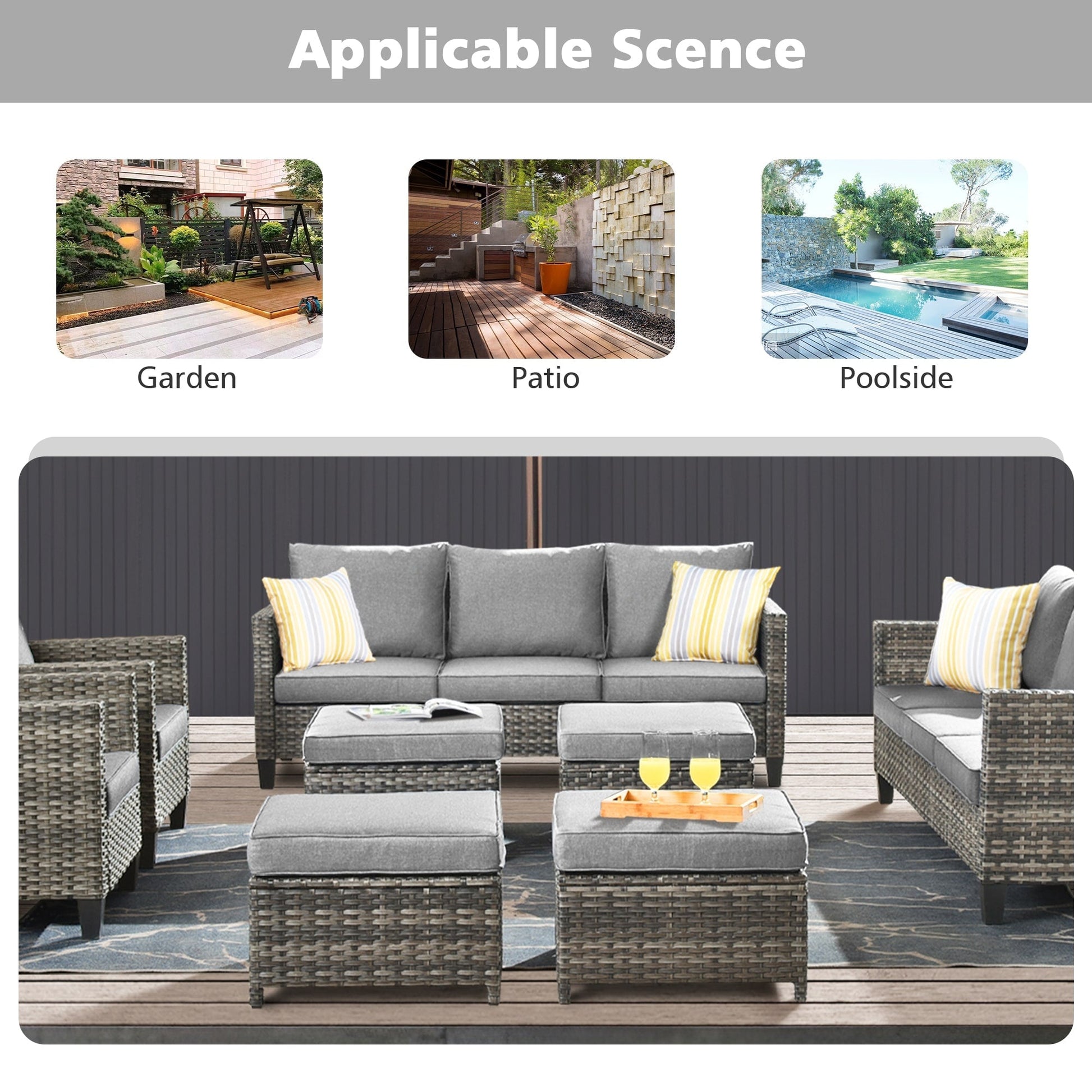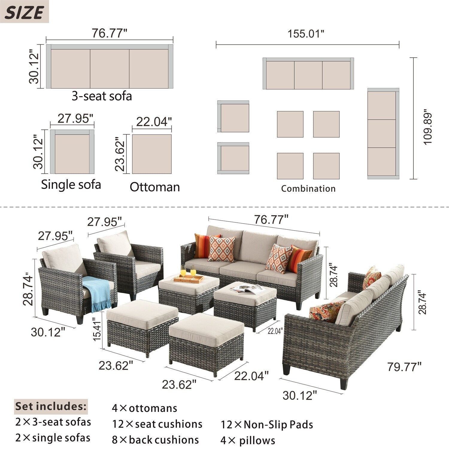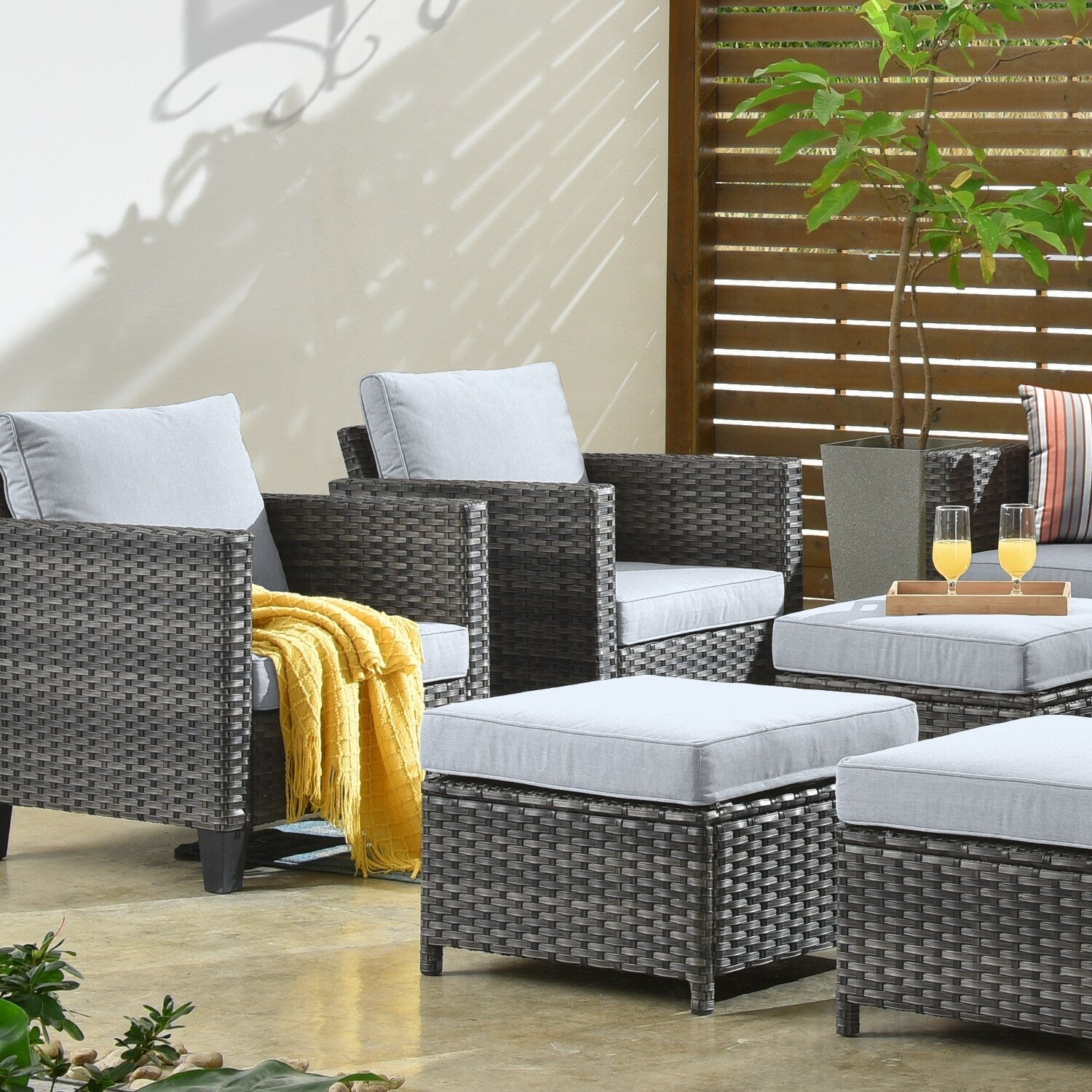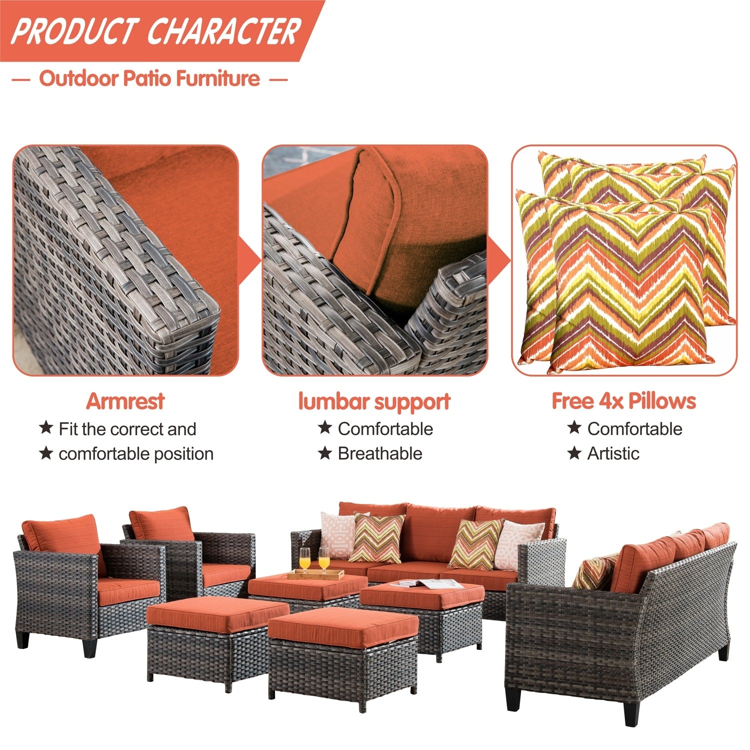 Resistente alle intemperie e idrorepellente: progettato per resistere alla pioggia leggera, questo set di mobili è perfetto per l'uso all'aperto in diverse condizioni atmosferiche. I cuscini e i mobili sono resistenti all'acqua e allo scolorimento, mantenendo il loro aspetto e il comfort nel tempo.