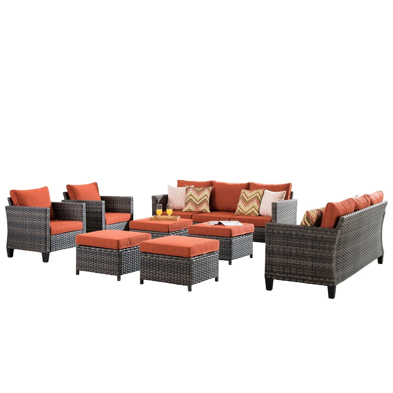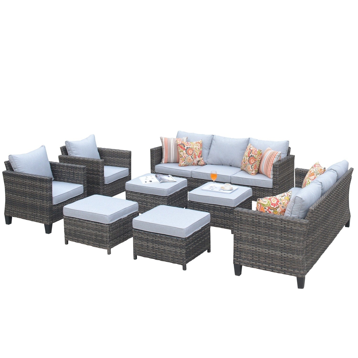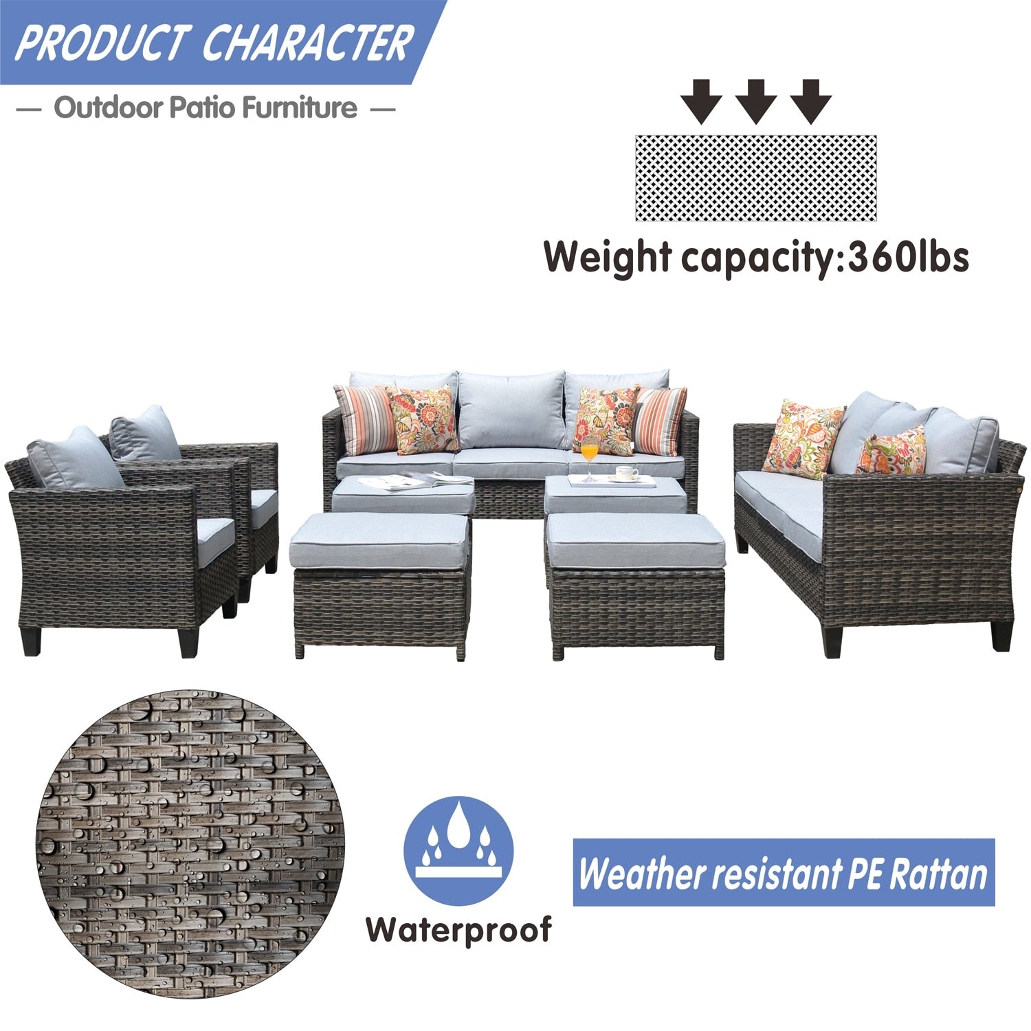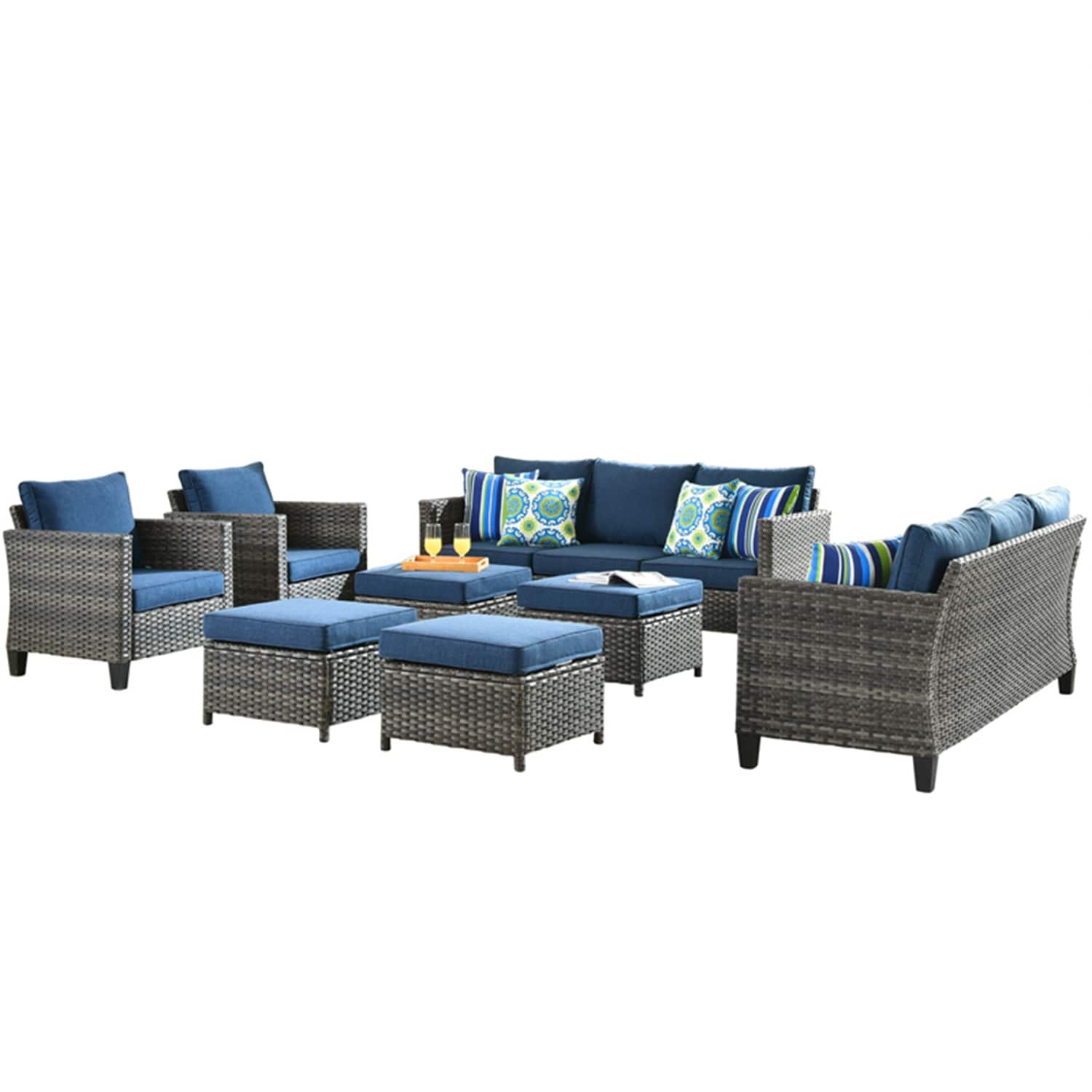 Set di mobili componibili da esterno con schienale alto in vimini da 8 pezzi OVIOS