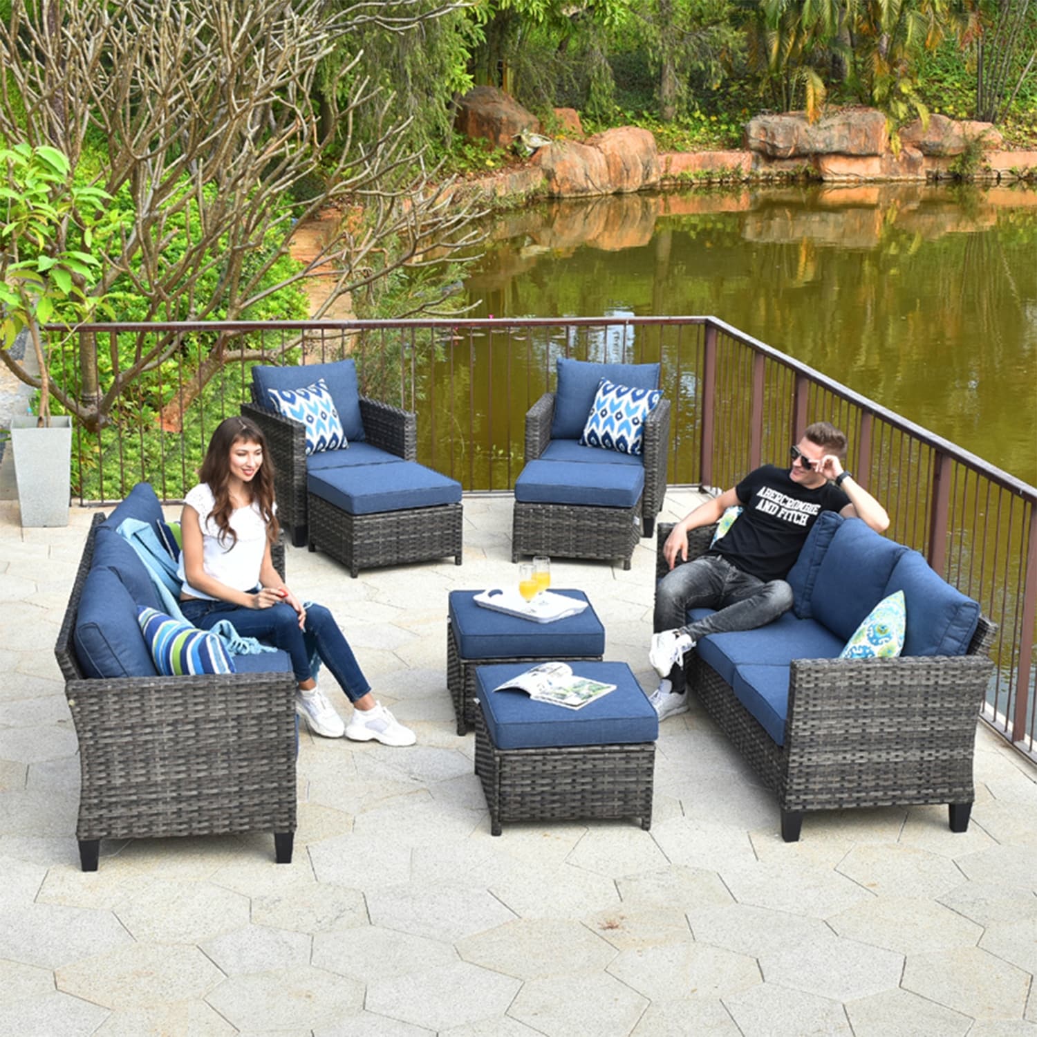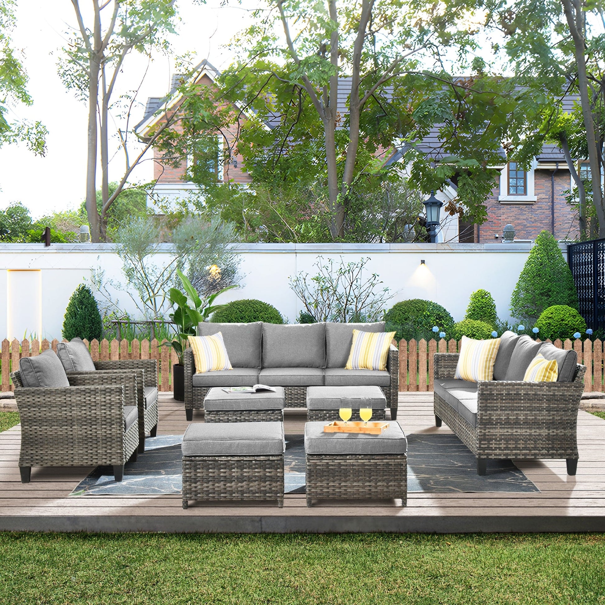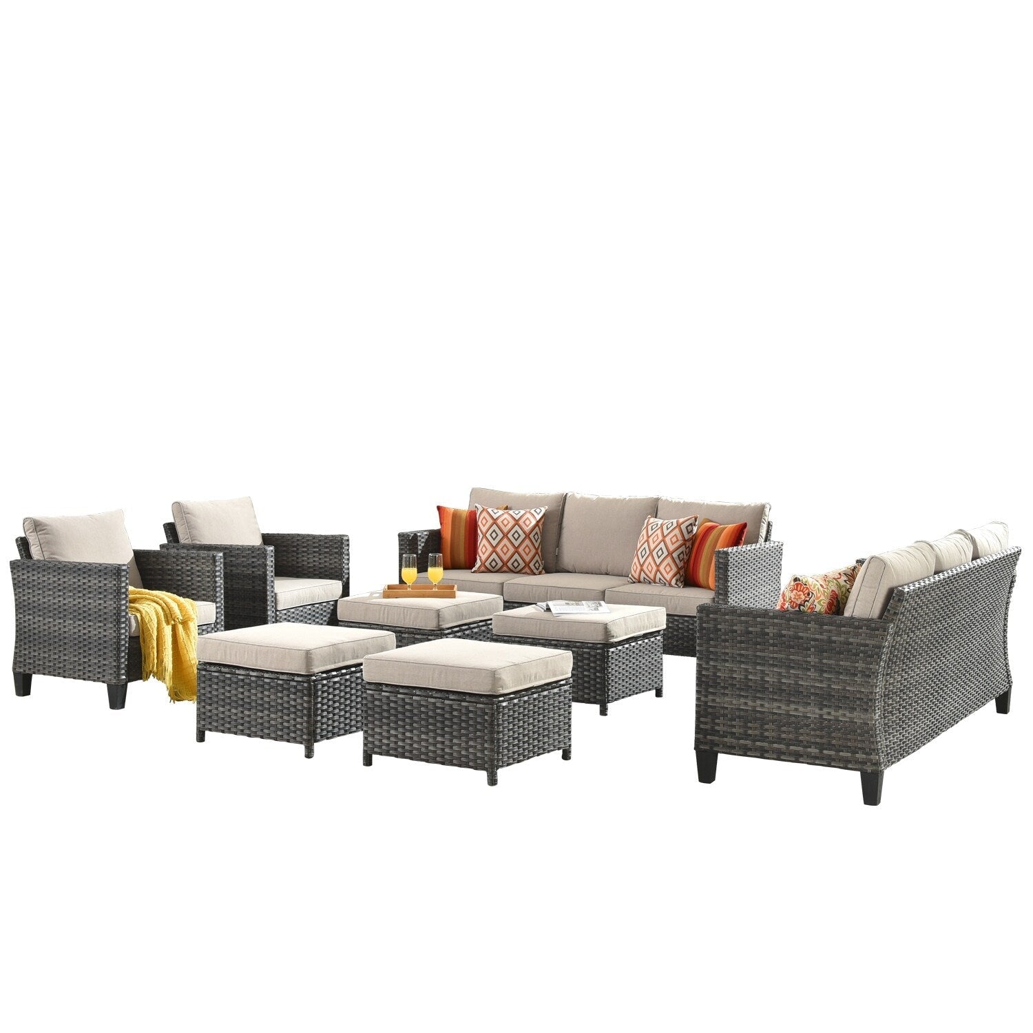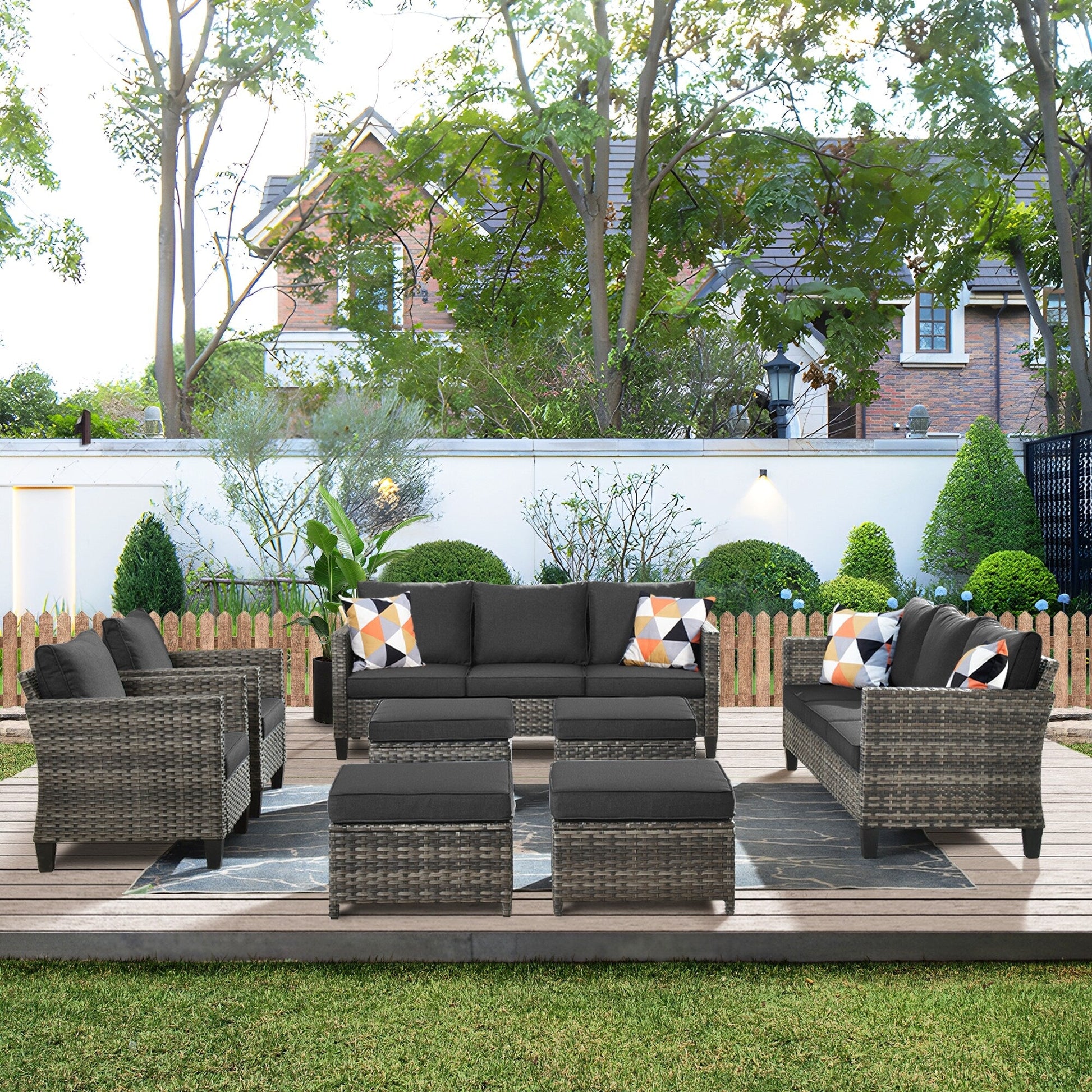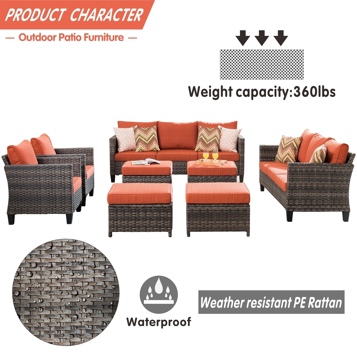 Set di mobili componibili da esterno con schienale alto in vimini da 8 pezzi OVIOS