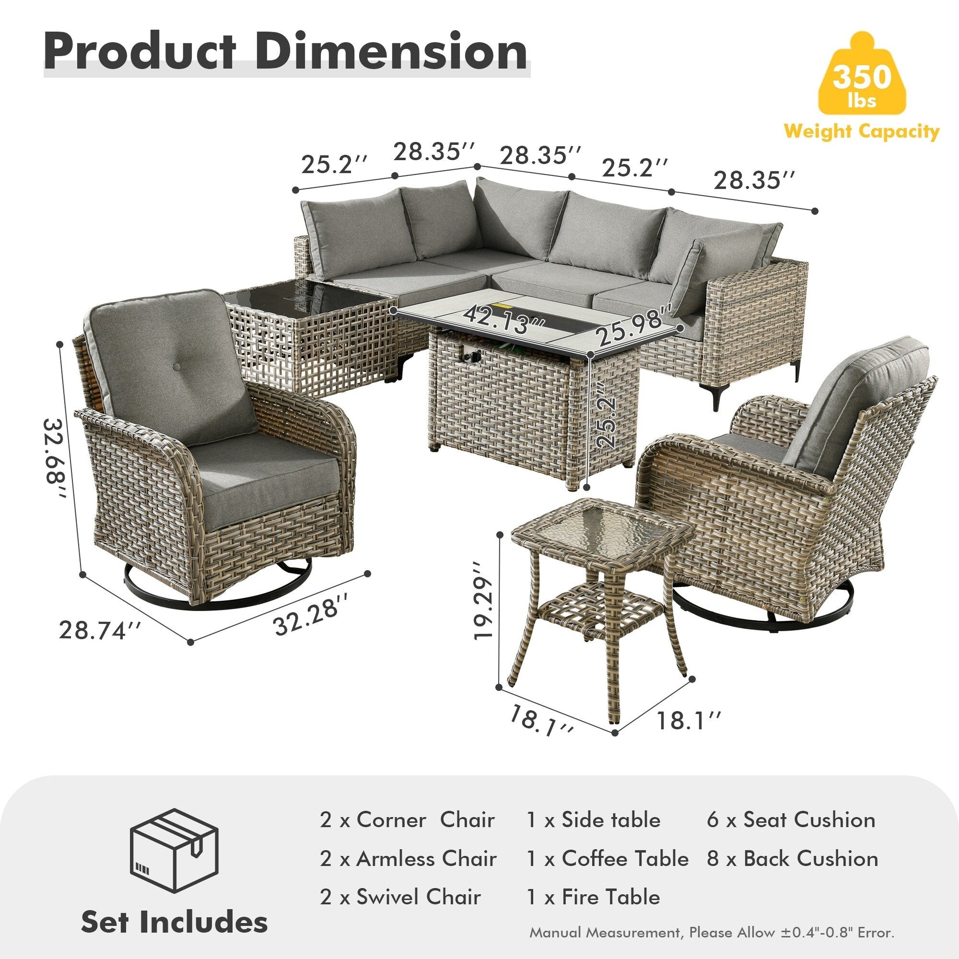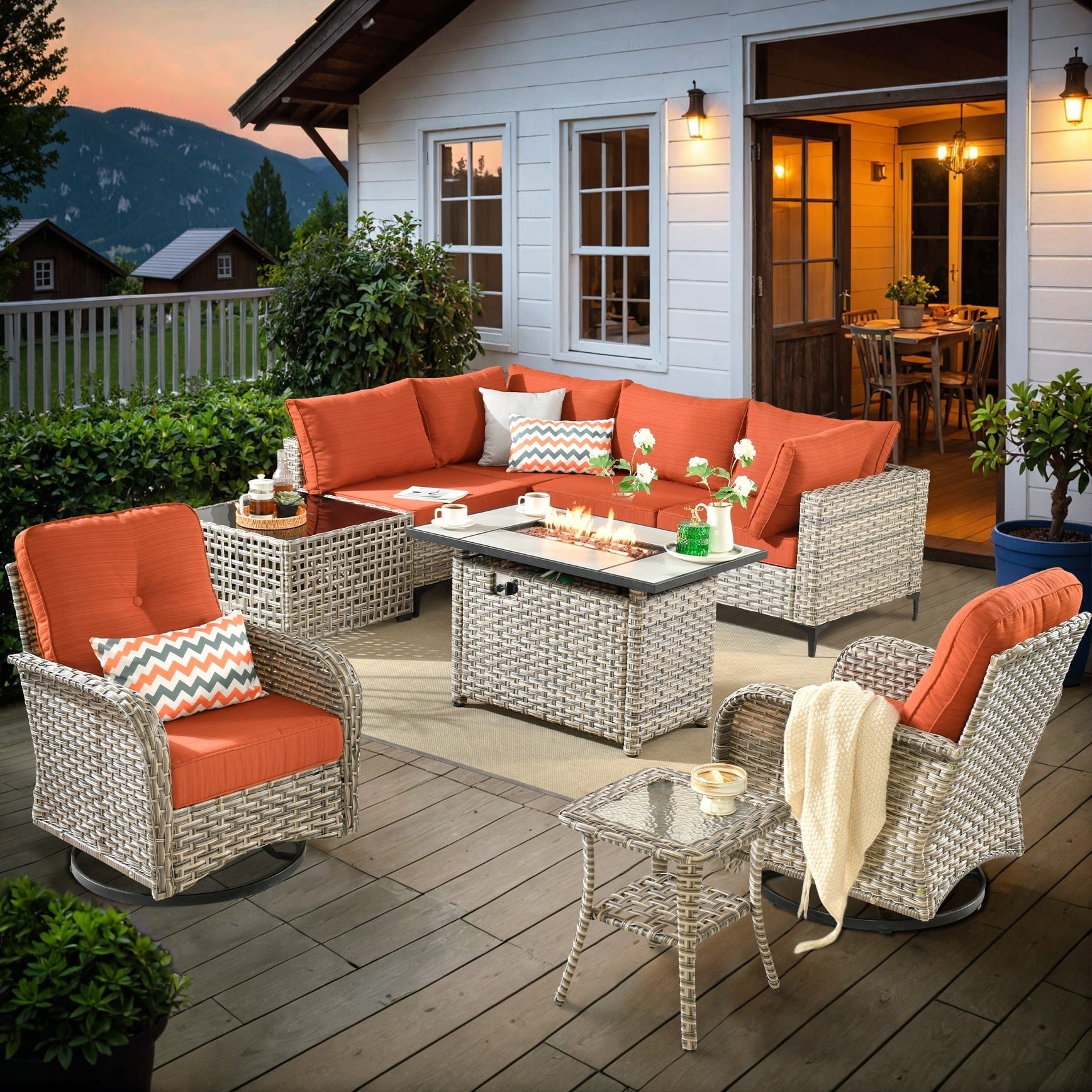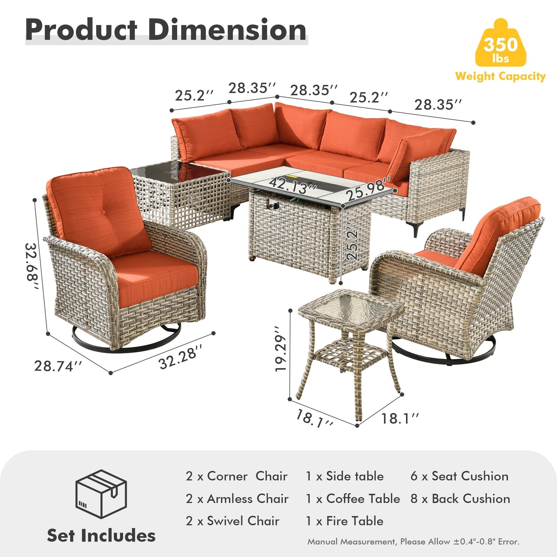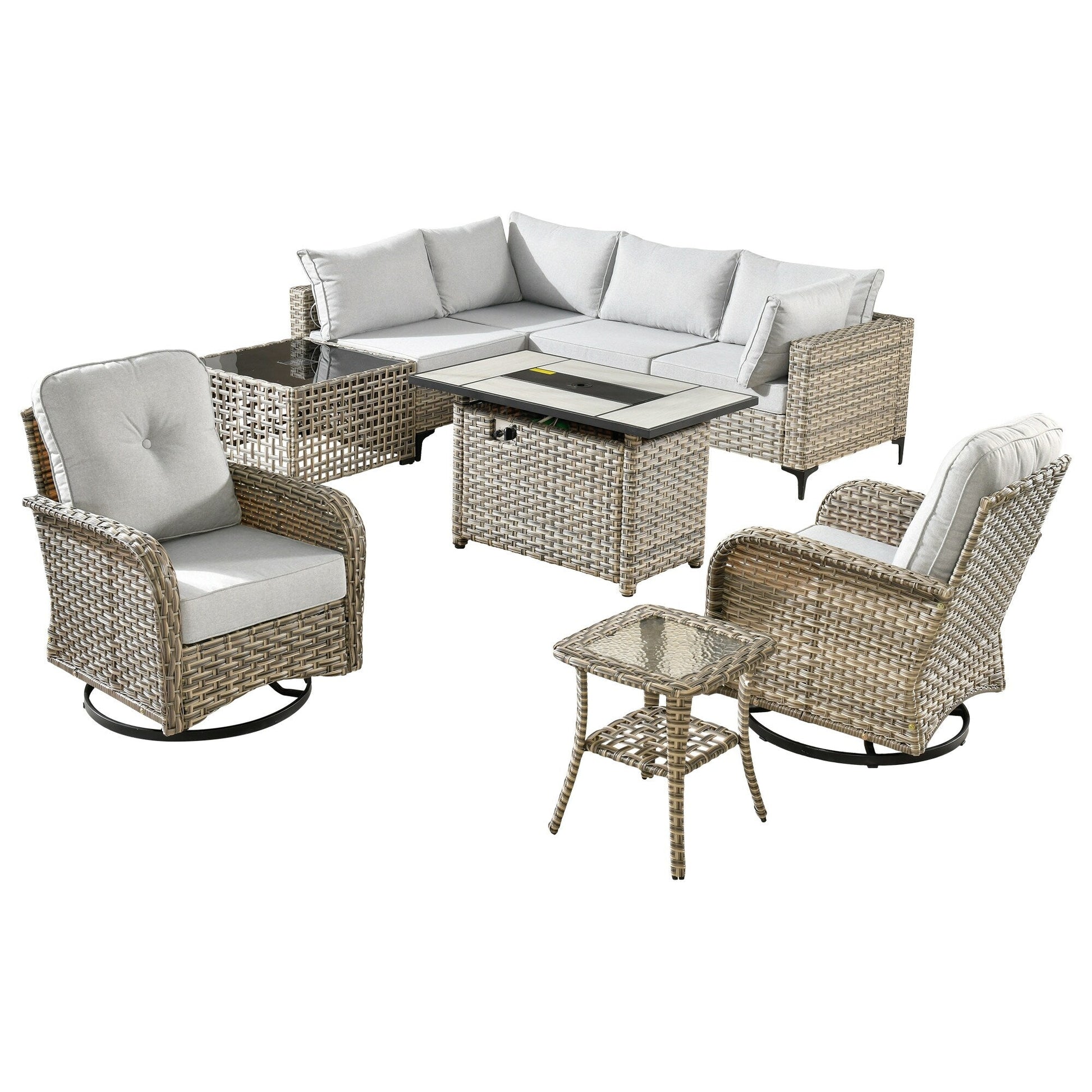 Set di 9 sedie girevoli in vimini per esterni OVIOS con tavolo da fuoco