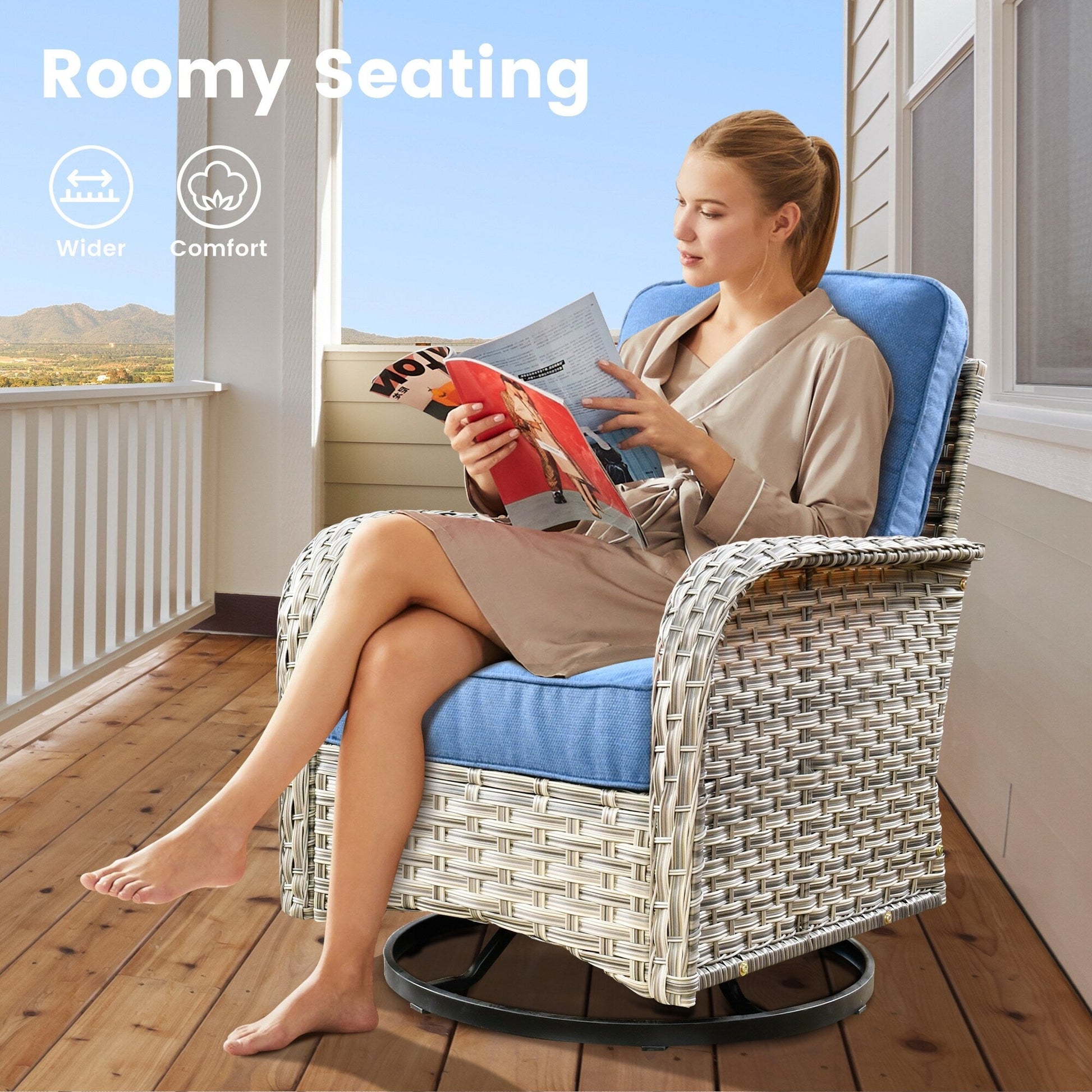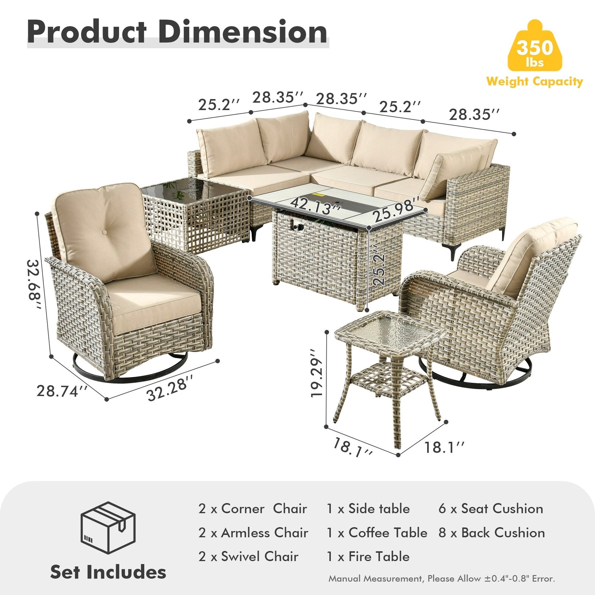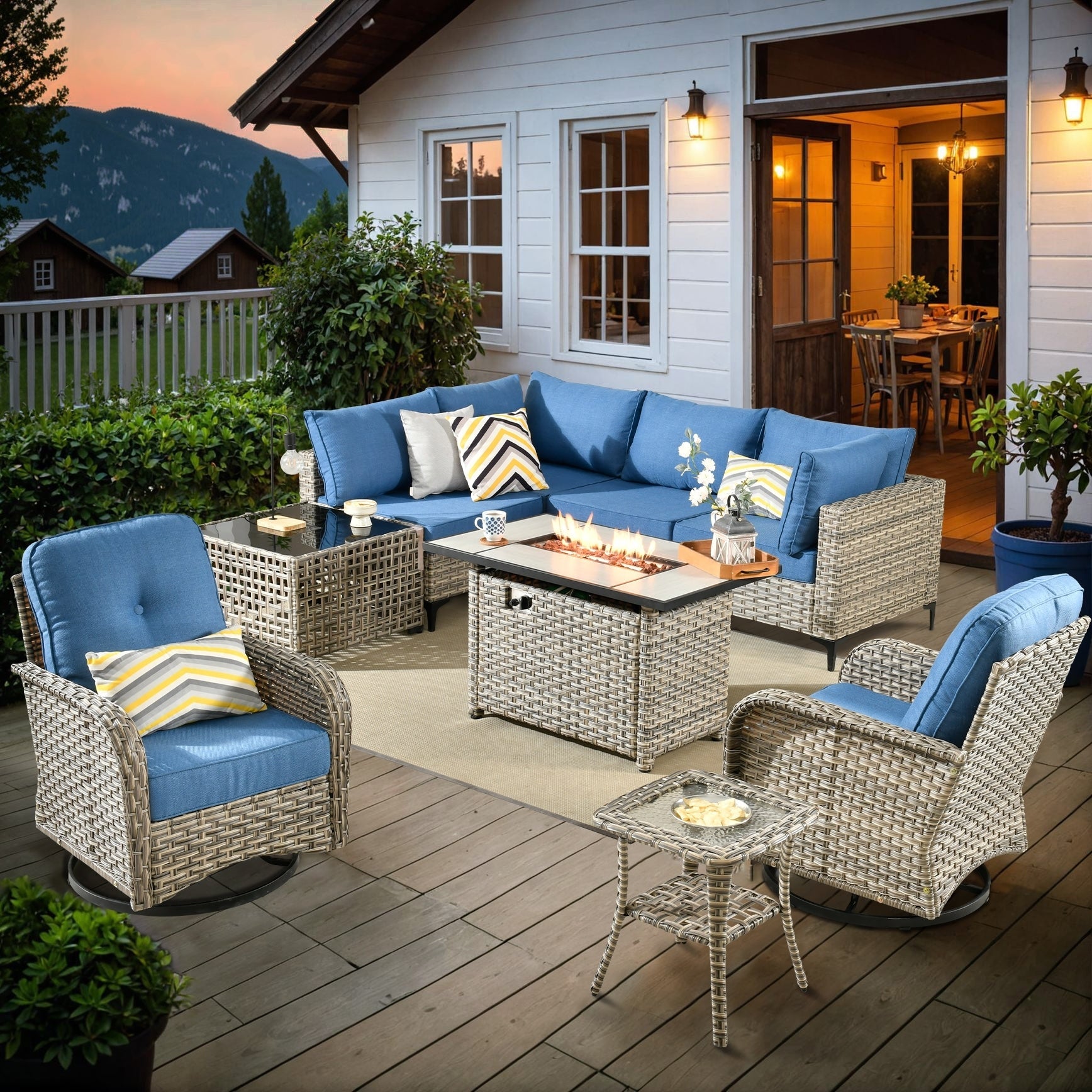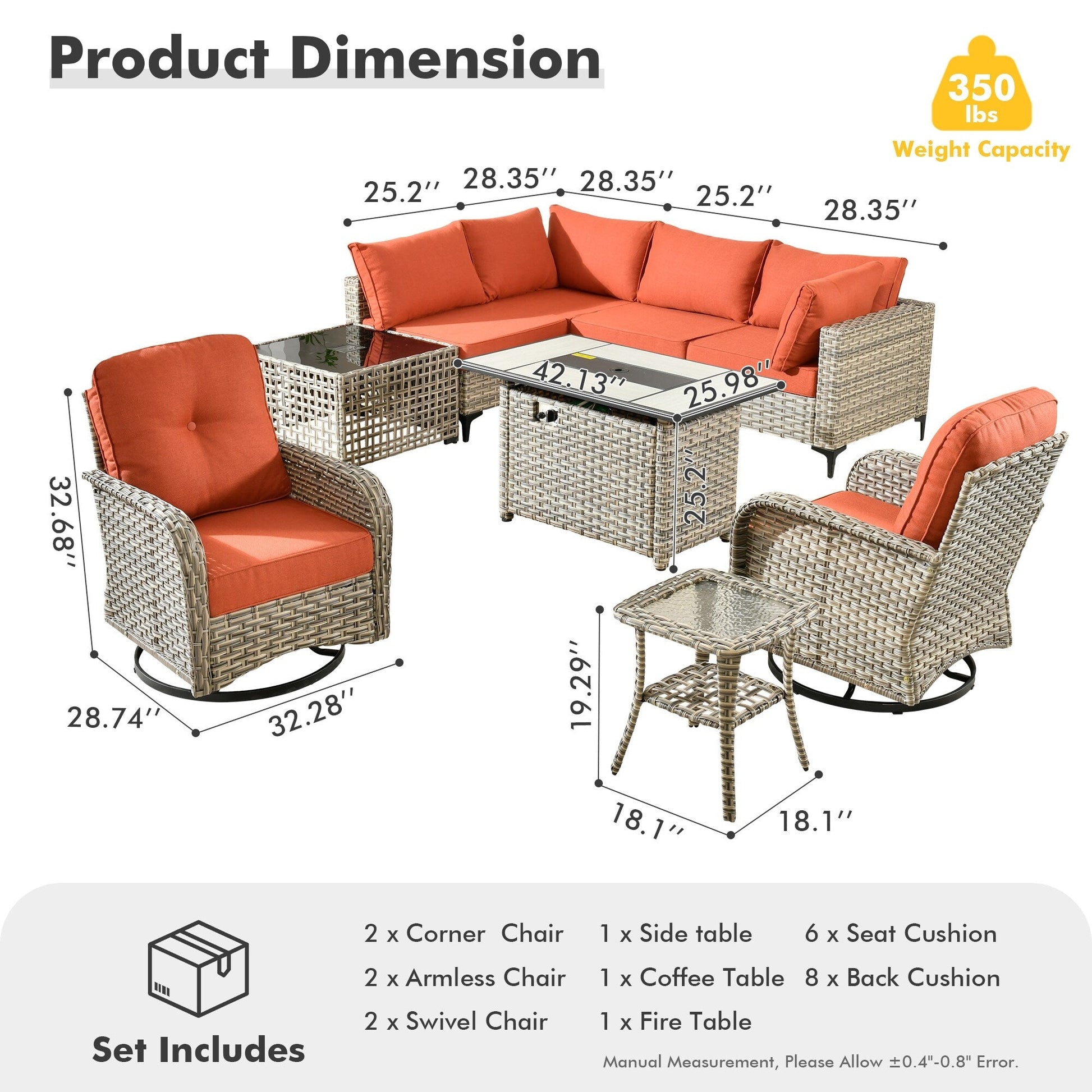 Set di 9 sedie girevoli in vimini per esterni OVIOS con tavolo da fuoco