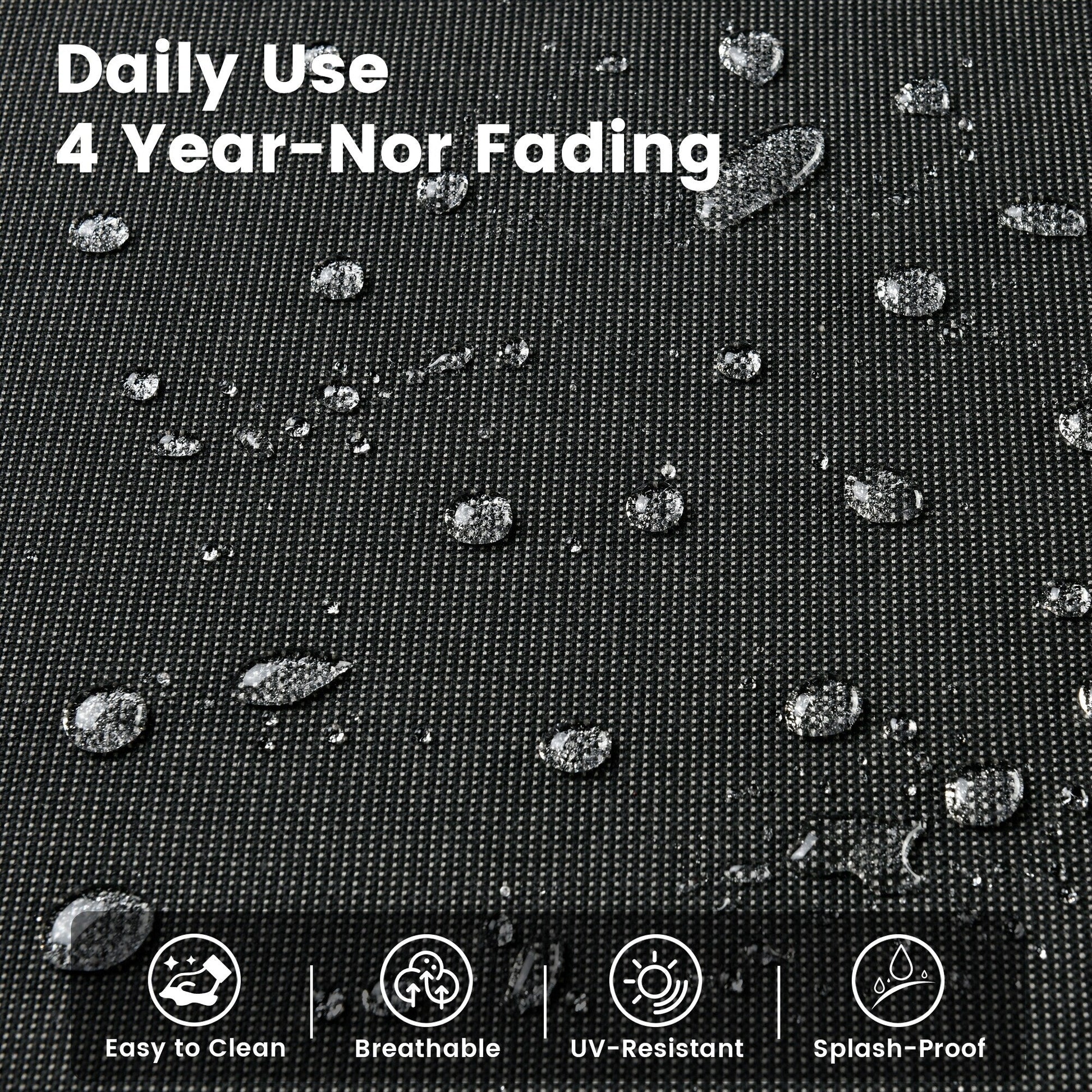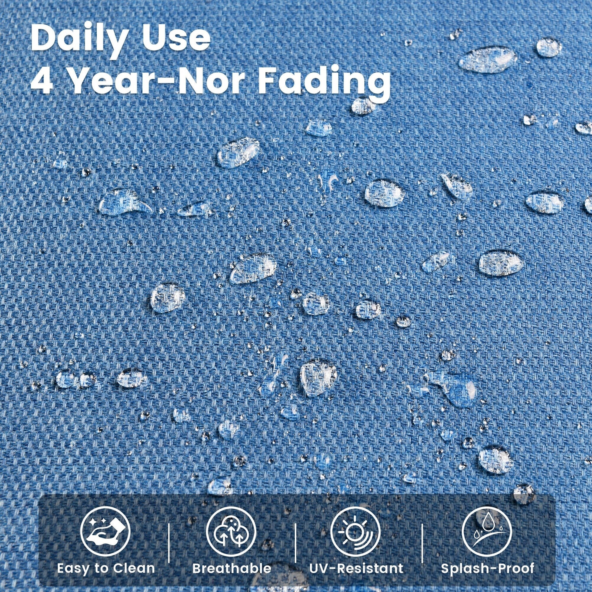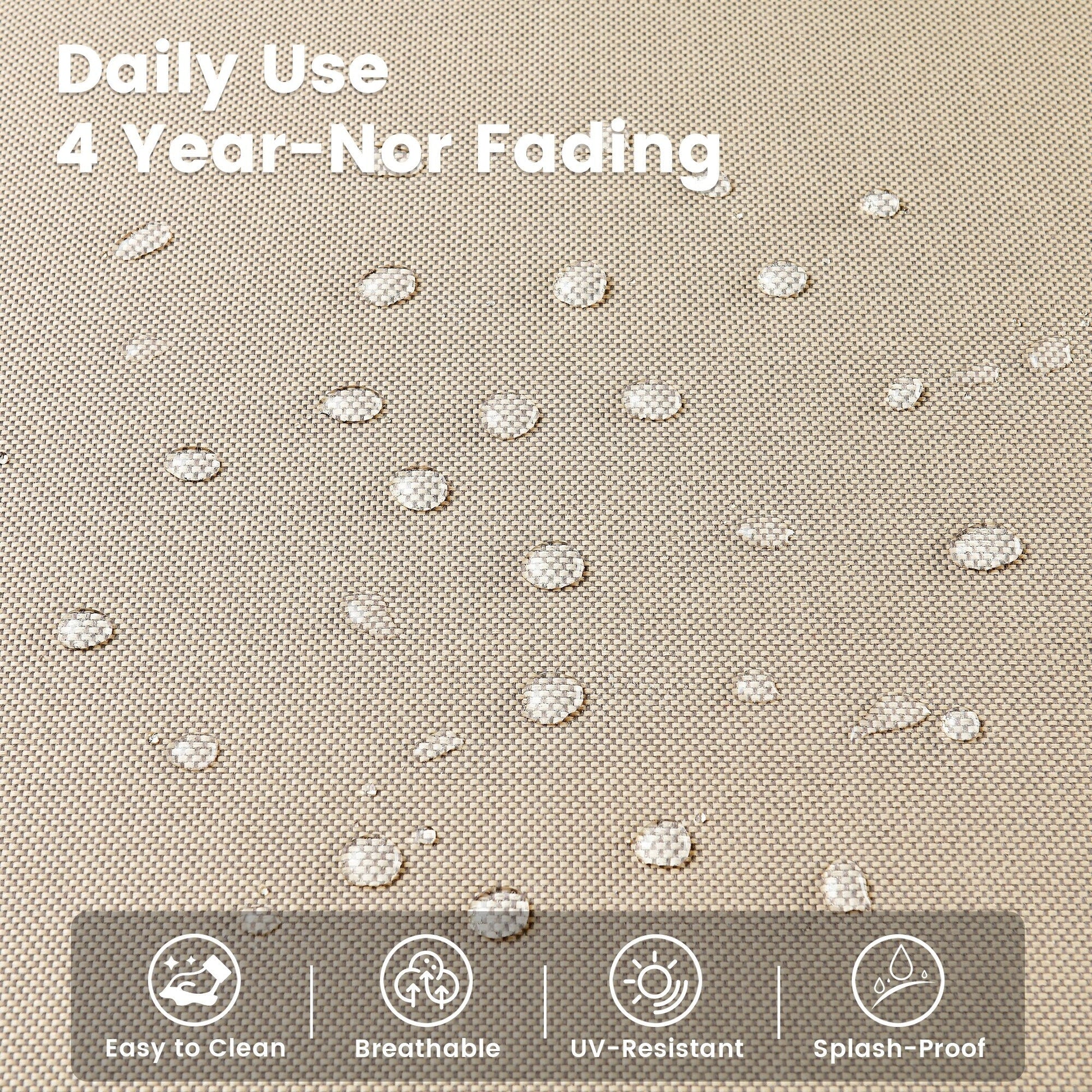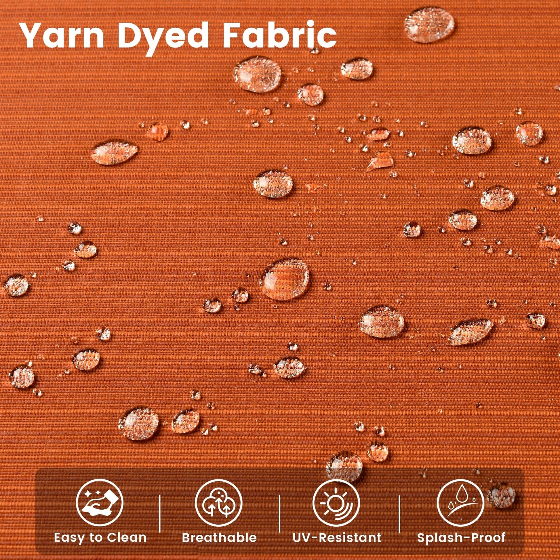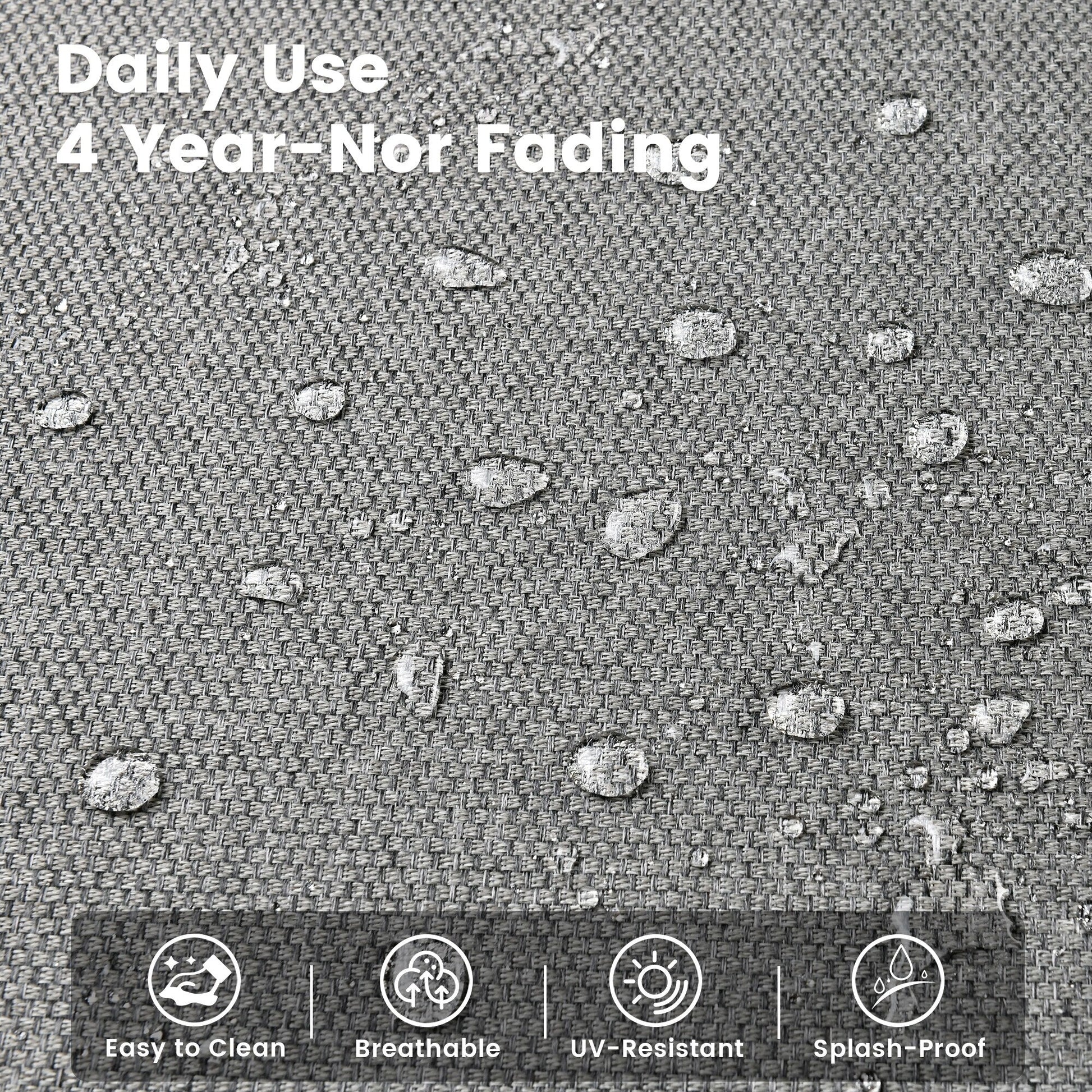 Copricuscini resistenti ai raggi UV e impermeabili: i copricuscini sono realizzati con materiali di alta qualità, resistenti ai raggi UV, impermeabili e anti-scolorimento, che ne mantengono la freschezza e la brillantezza a lungo.