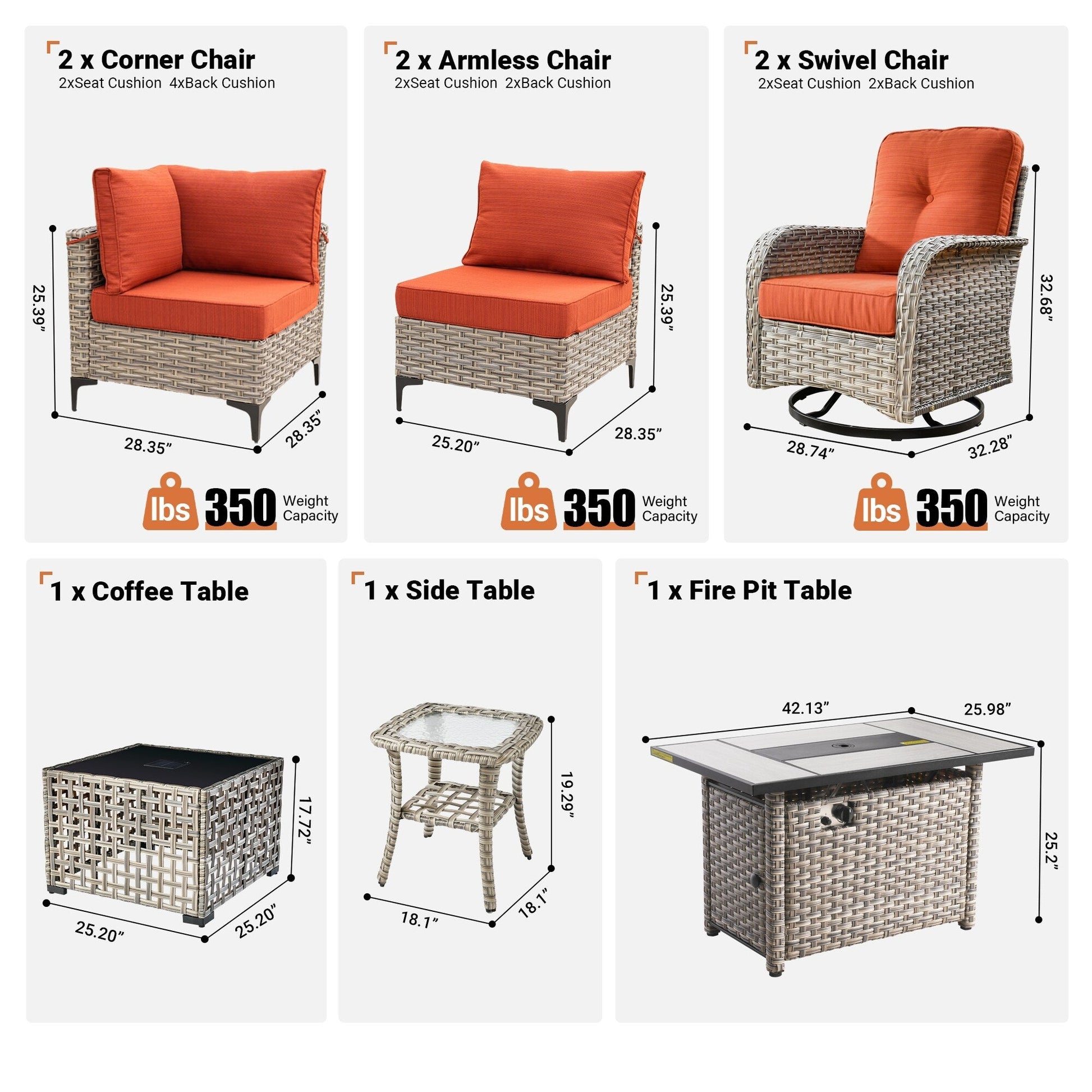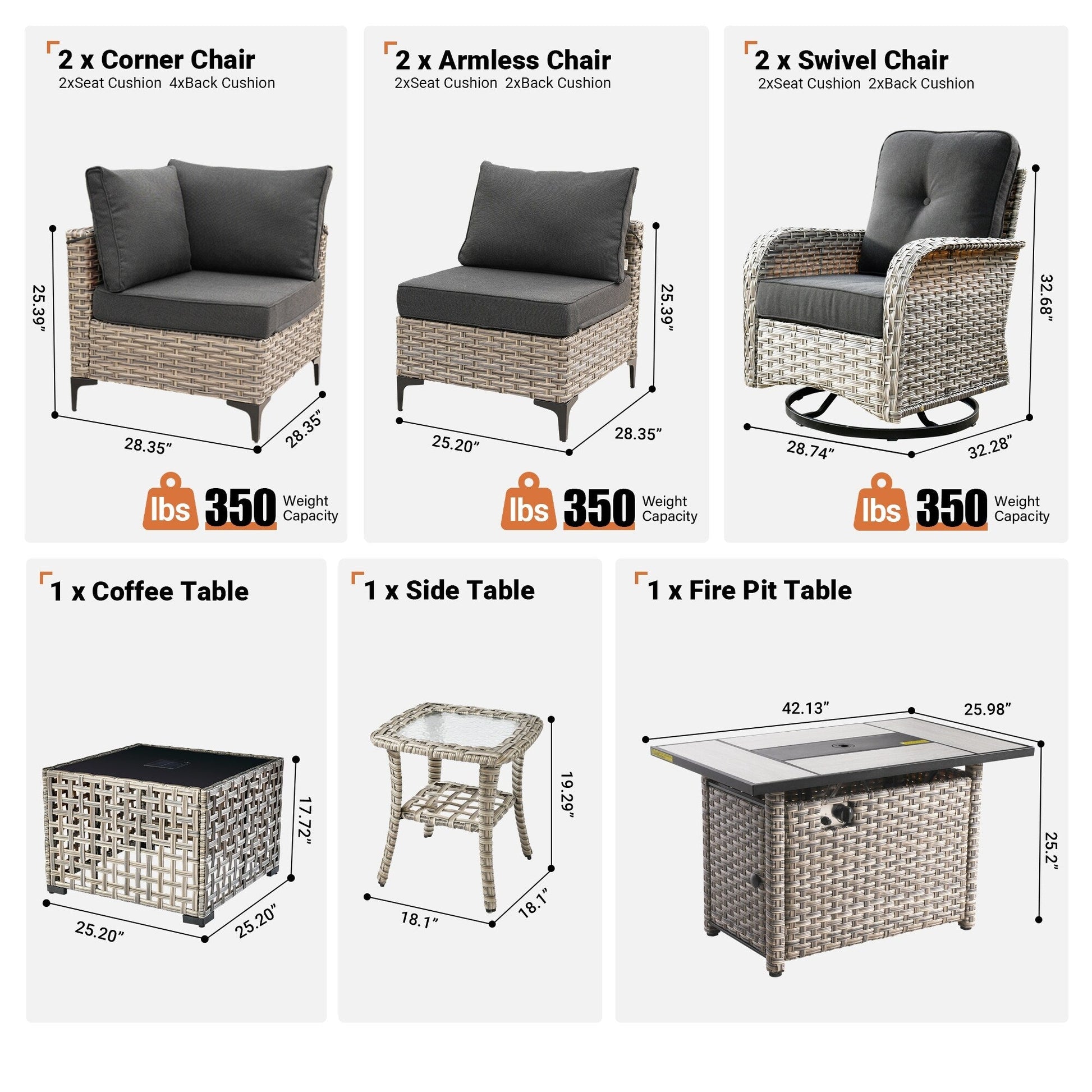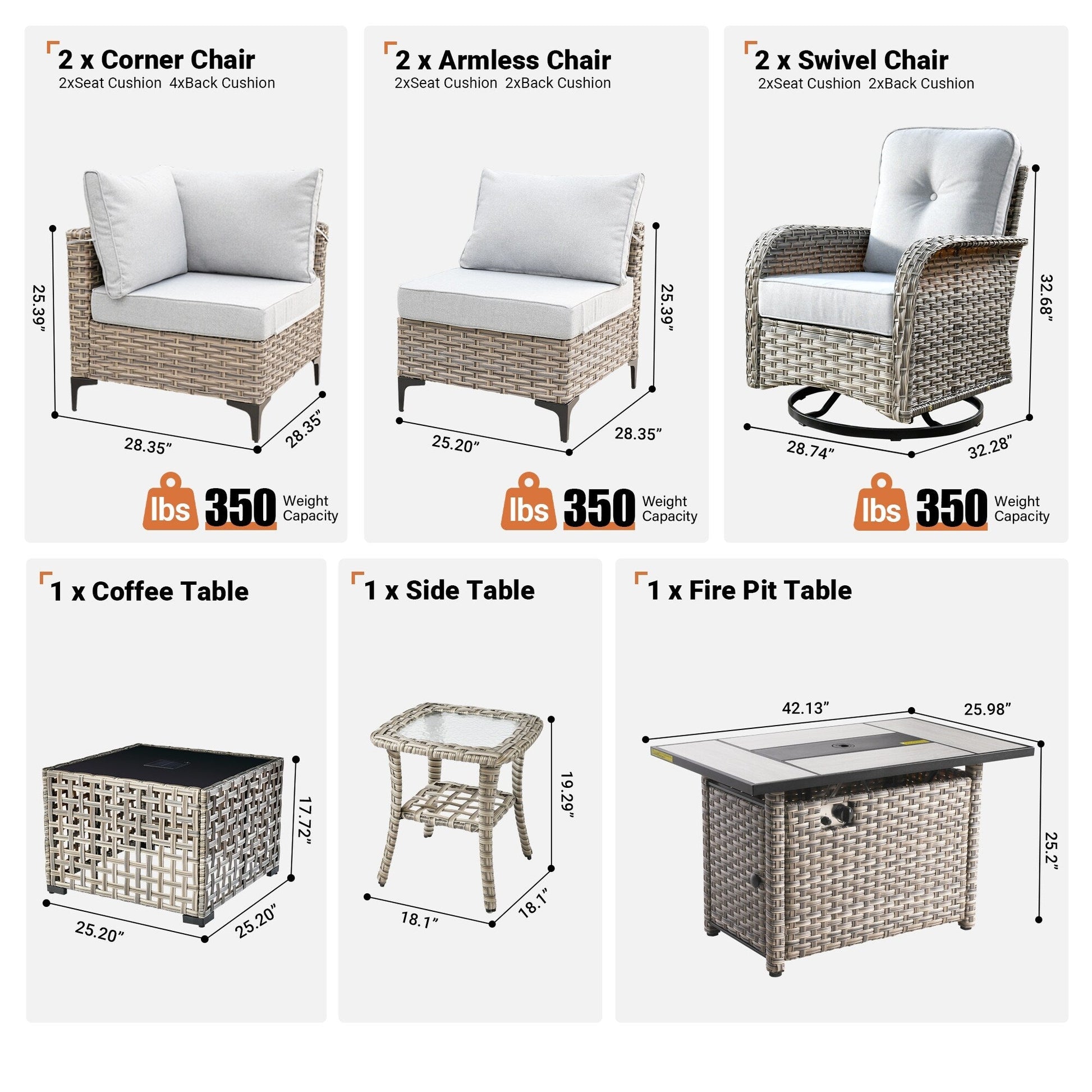 #Il set include: 2 sedie angolari, 2 divani singoli, 2 sedie a dondolo, 1 tavolino da caffè, 1 tavolino laterale, 1 braciere in rattan