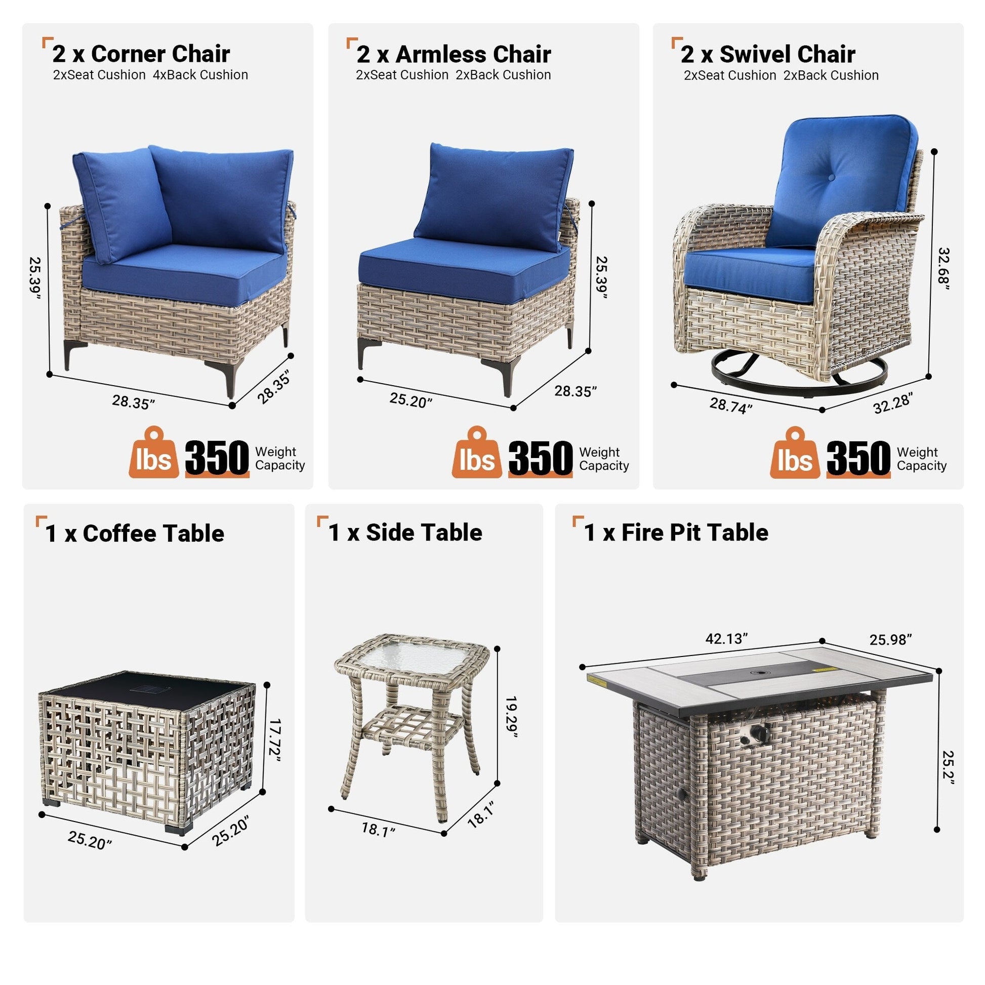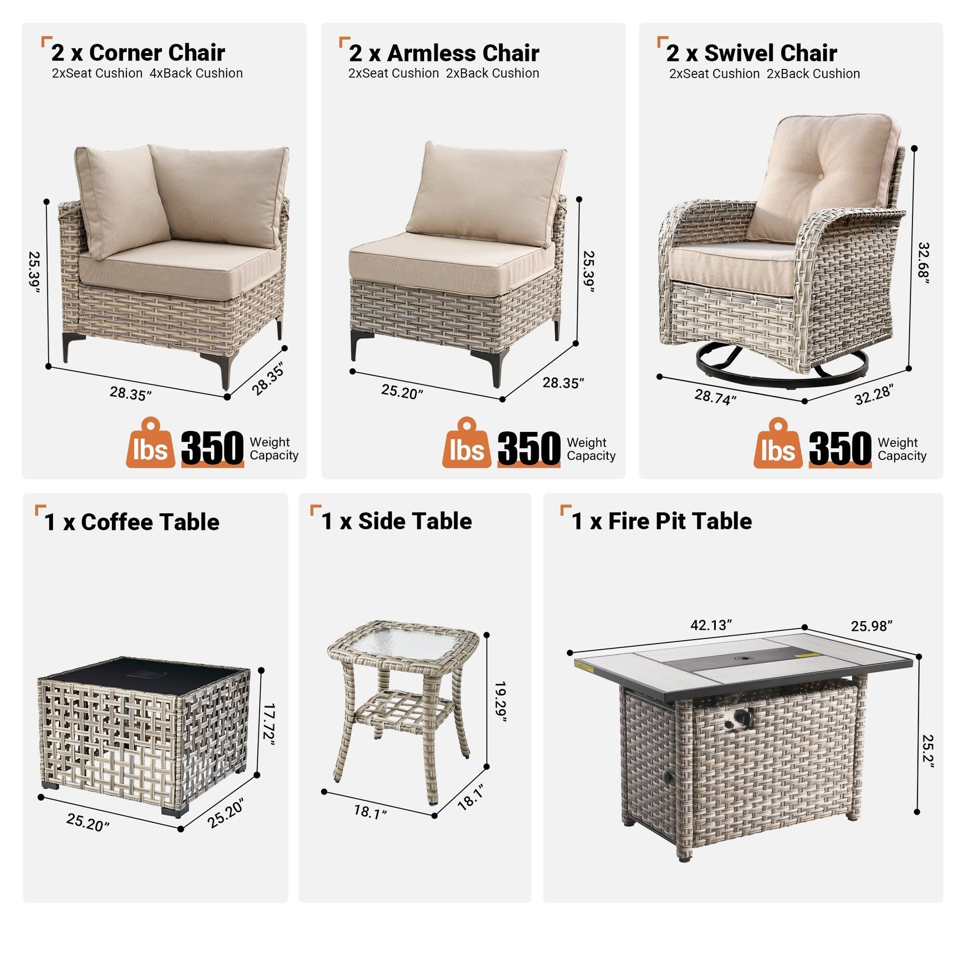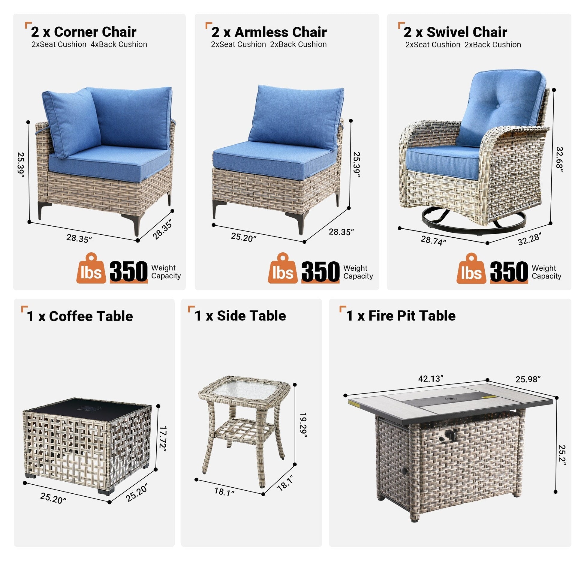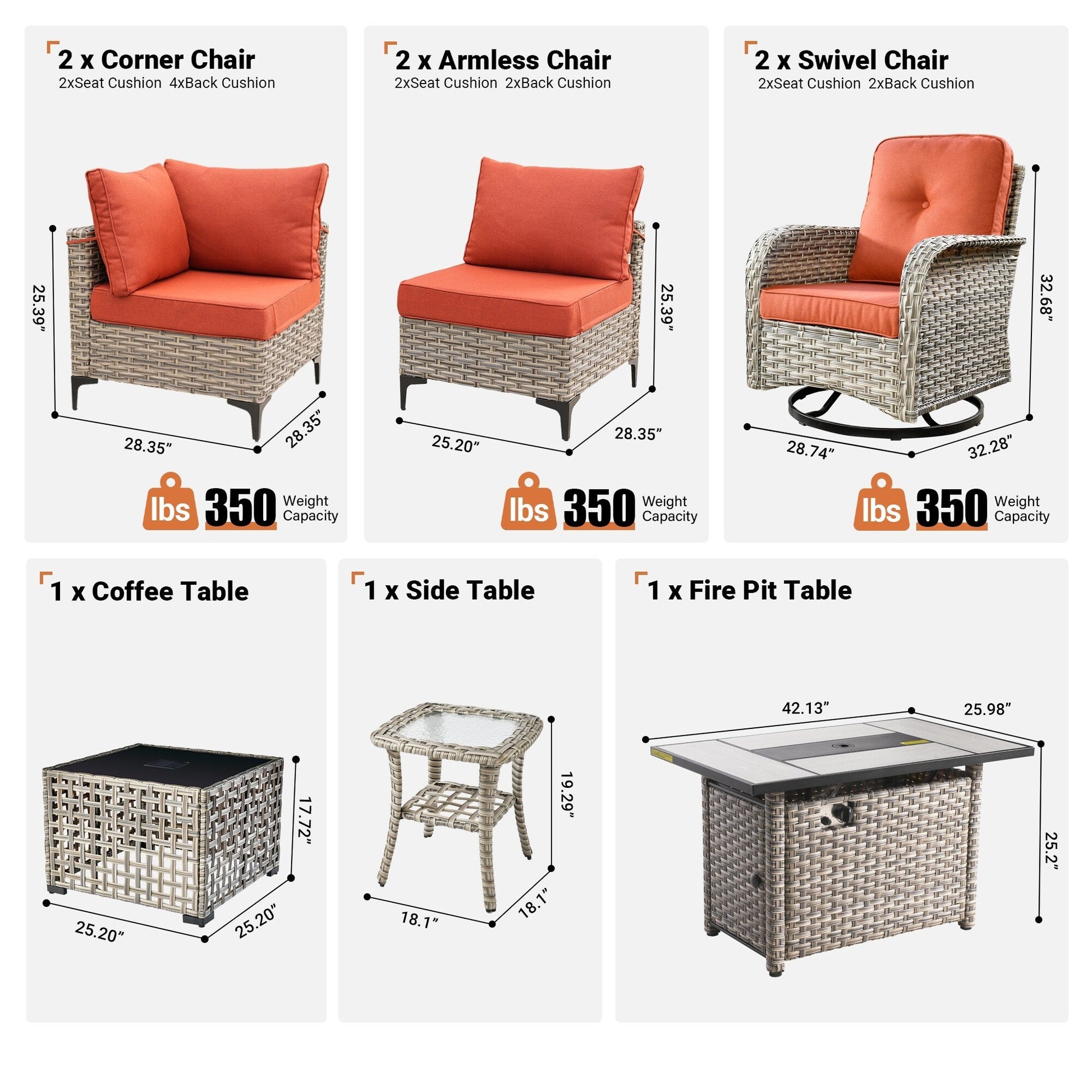 #Il set include: 2 sedie angolari, 2 divani singoli, 2 sedie a dondolo, 1 tavolino da caffè, 1 tavolino laterale, 1 braciere in rattan