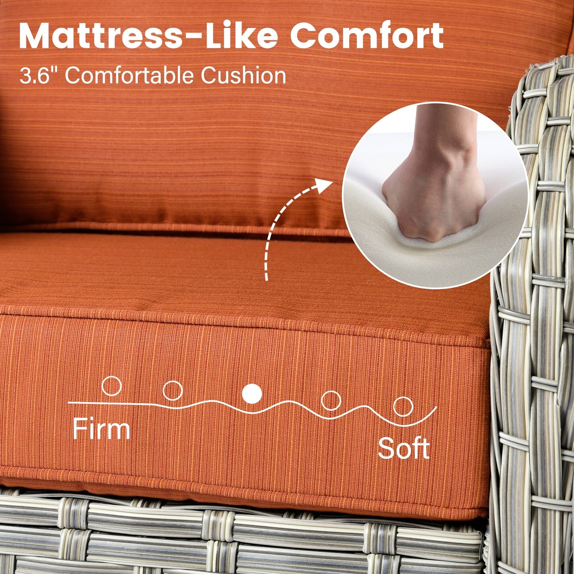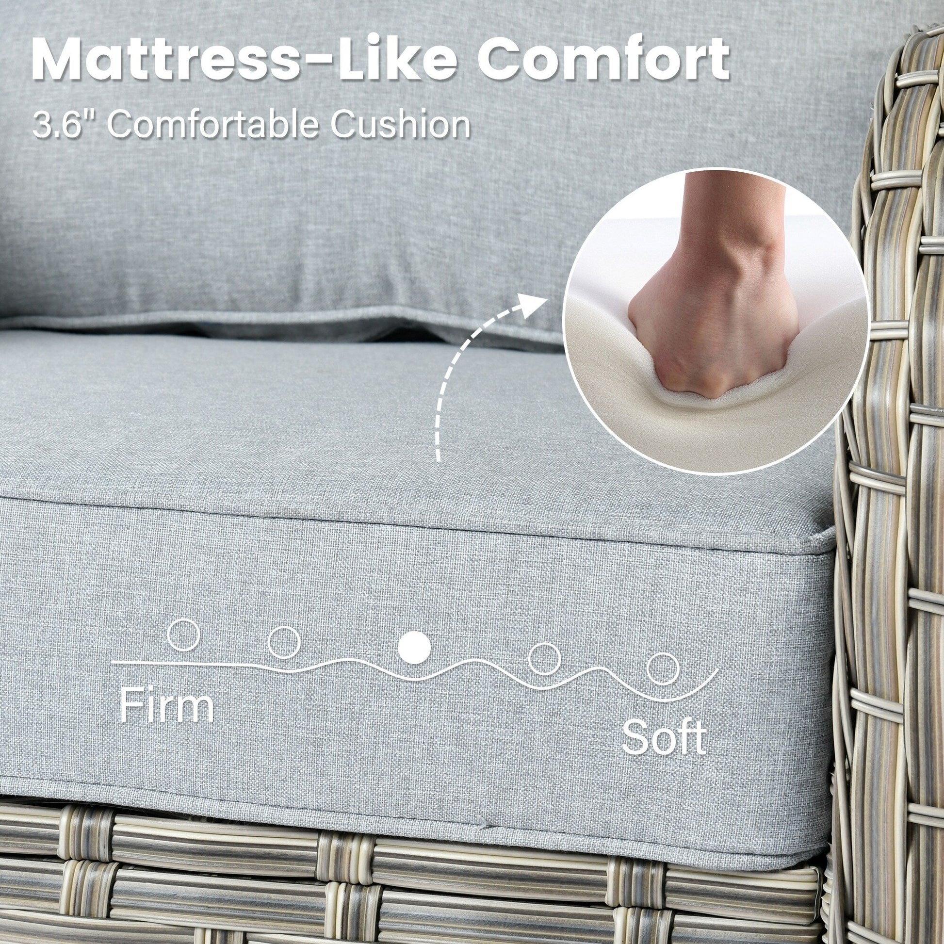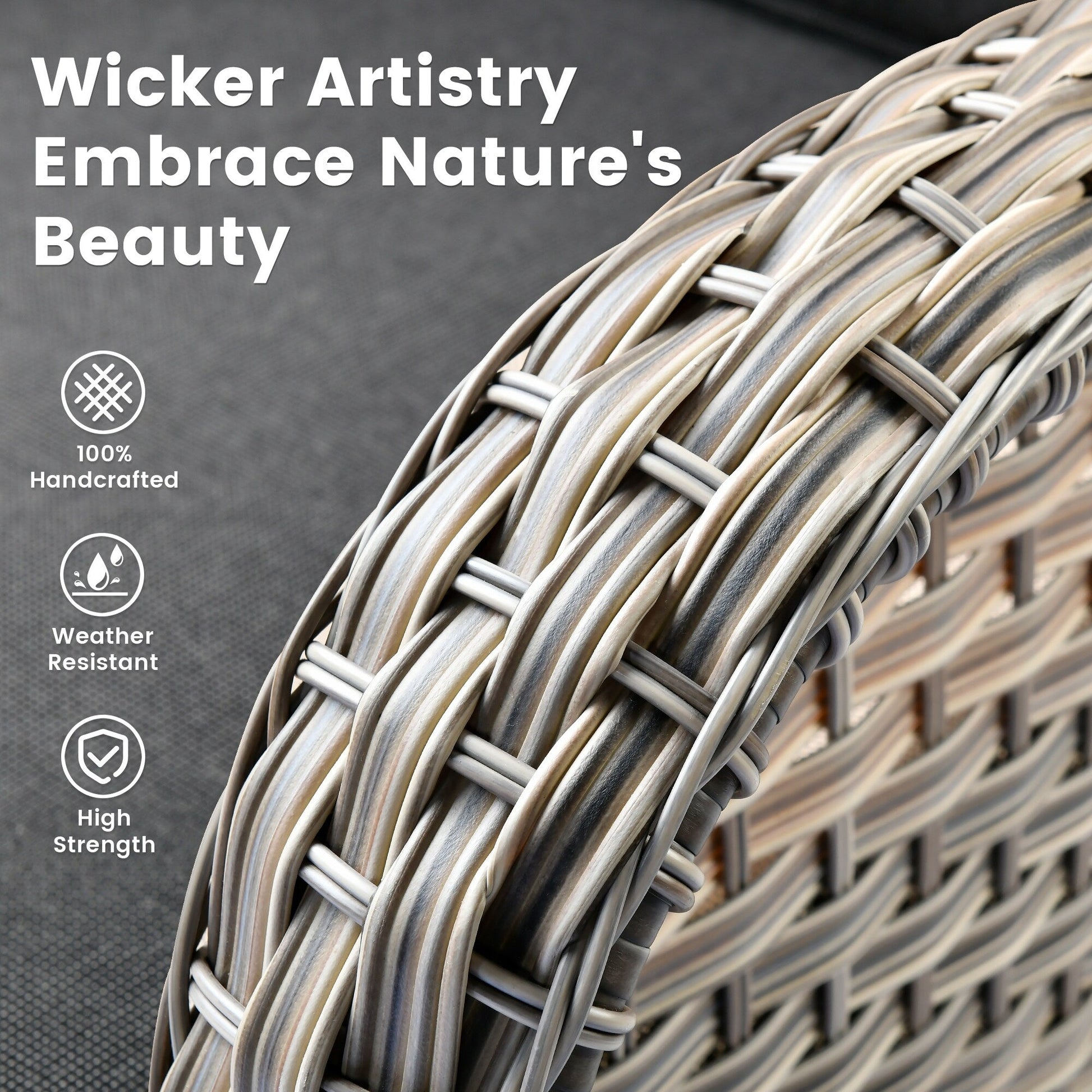 Migliora la tua esperienza di vita all'aria aperta con questo set di mobili da esterno in vimini di alta qualità, ora comprensivo di un elegante braciere in rattan, progettato per combinare stile, comfort e funzionalità. Perfetto per riunioni di famiglia, feste all'aperto o momenti di relax, questo set di mobili offrirà l'ambiente ideale per ogni occasione.