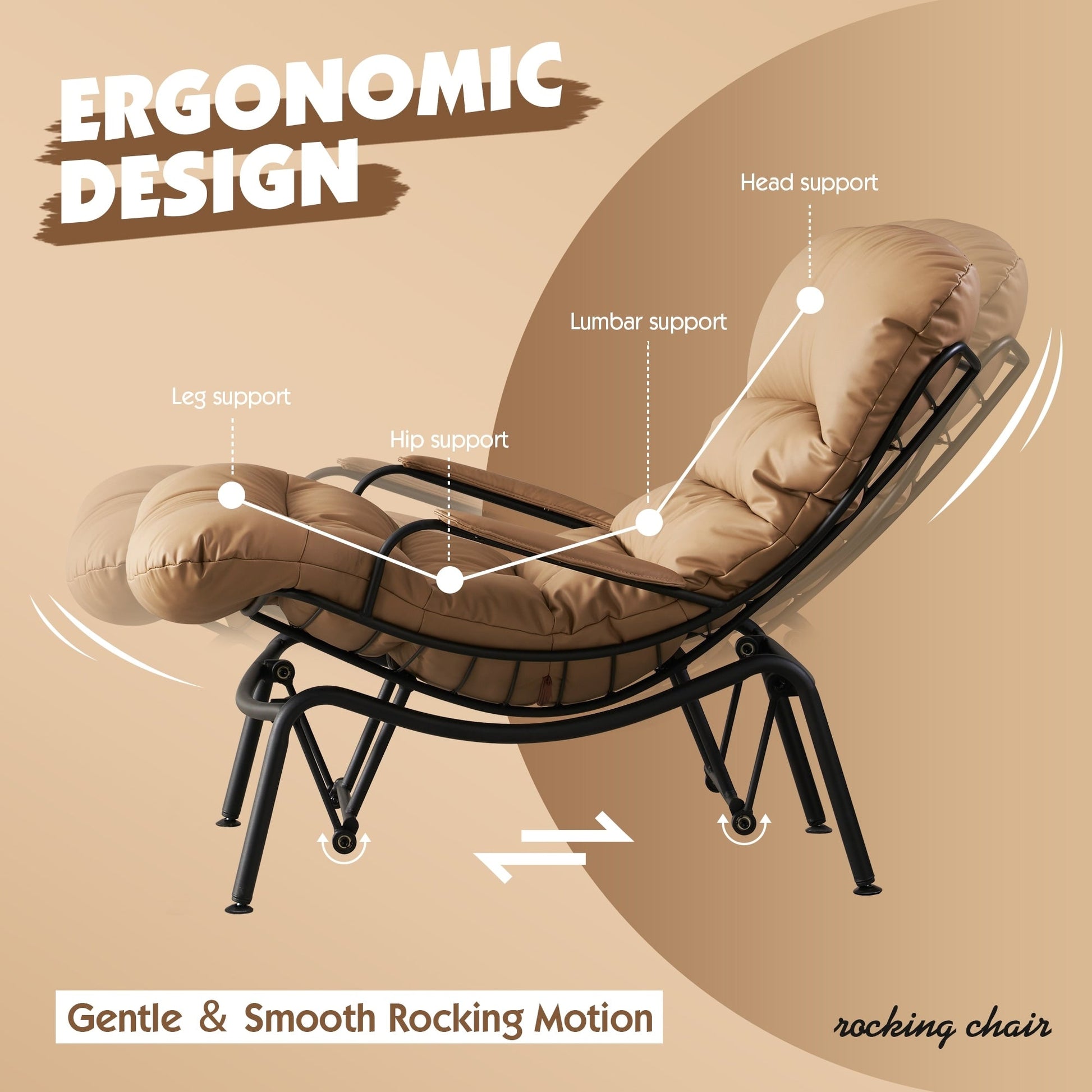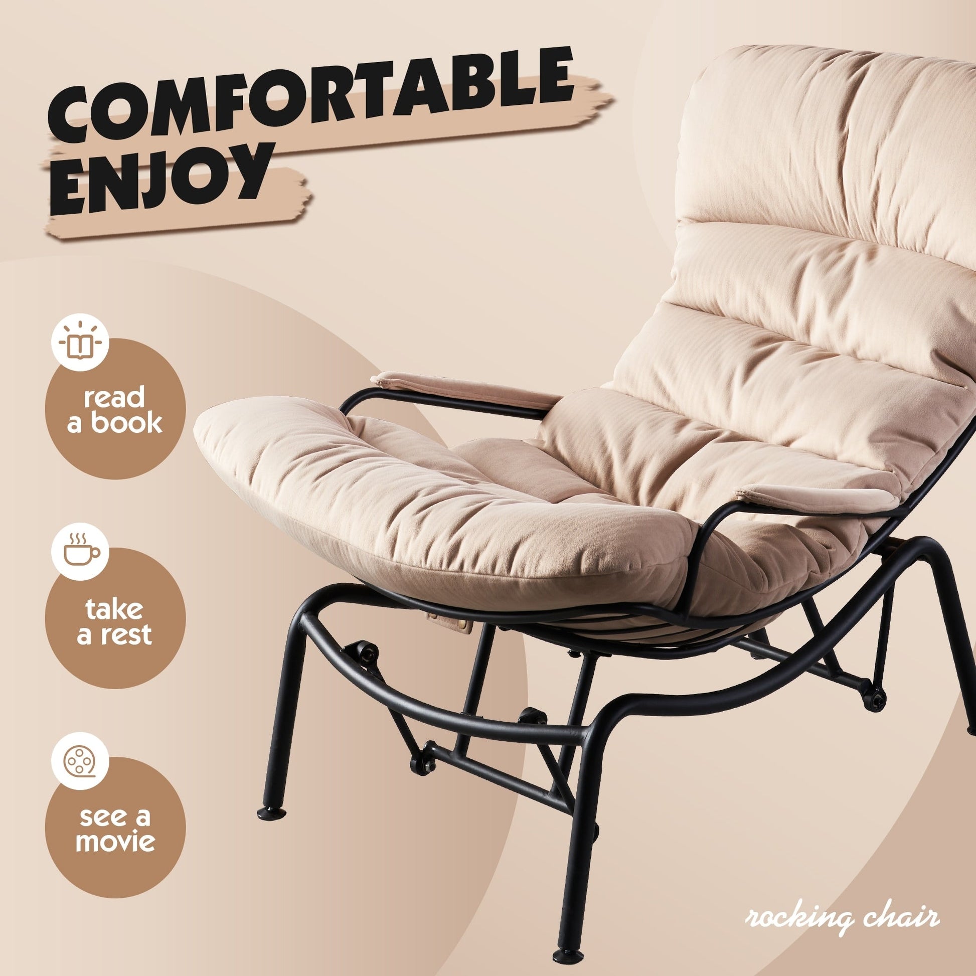 Prova il massimo relax con la poltrona a dondolo reclinabile e il pouf OVIOS Living Room Accent Chair. Questa poltrona è perfetta per qualsiasi spazio della tua casa, dal soggiorno alla camera da letto. Grazie al suo movimento di oscillazione fluido e al design ergonomico, puoi riposare, leggere e rilassarti con stile. L'ampia seduta e la morbida imbottitura offrono il massimo comfort, mentre il pouf sostiene le ginocchia e riduce la pressione sulla vita. Il montaggio di questa poltrona è semplicissimo e il tessuto di alta qualità garantisce una lunga durata.