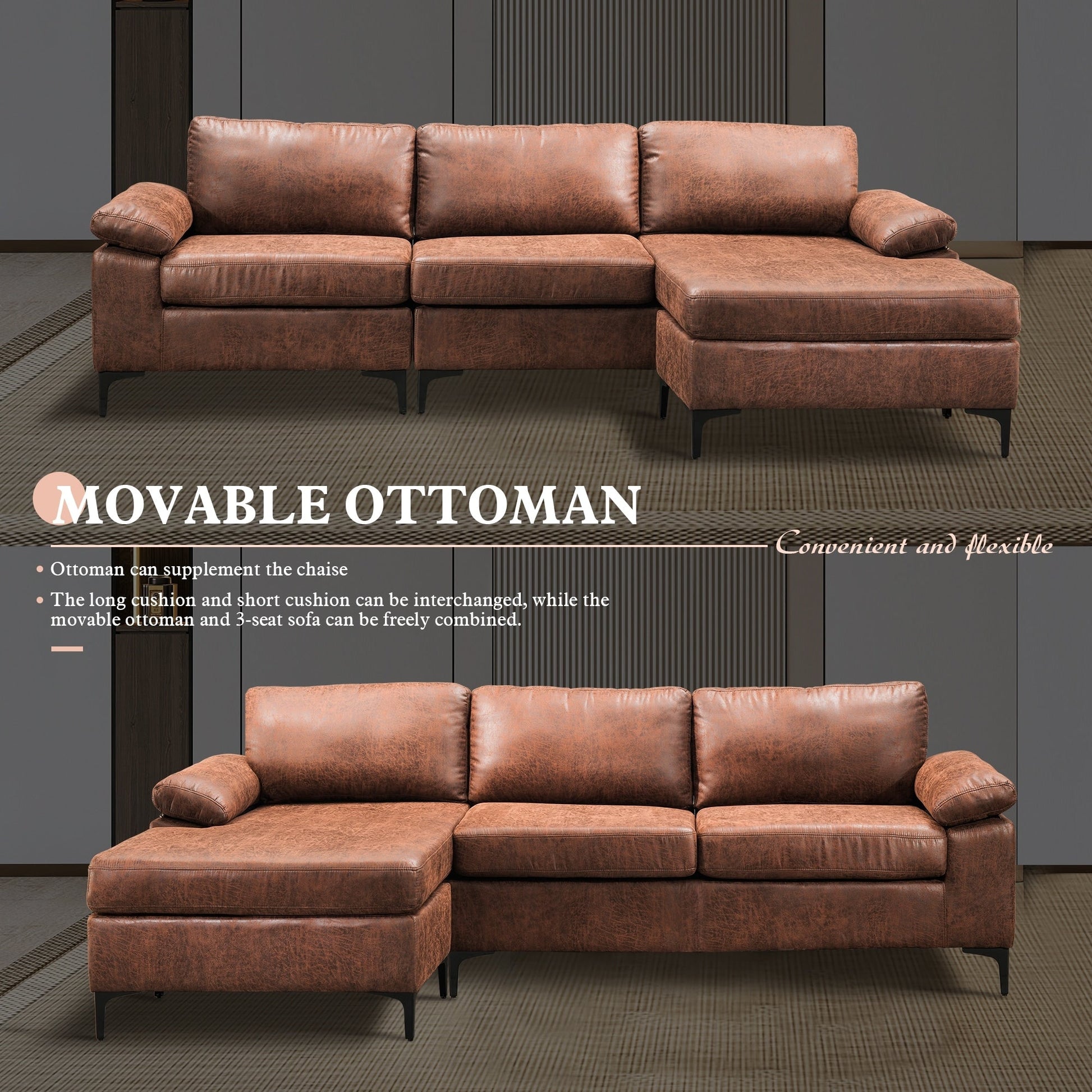 Divano chaise longue reversibile OVIOS Mid-Century in pelle...