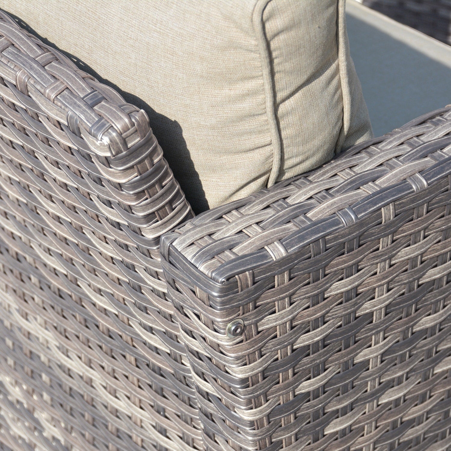 Aggiungi una seduta comoda al tuo patio con questo set di 2 sedie in vimini con schienale alto. Il set è realizzato in vimini intrecciato a mano, rendendolo molto più robusto. Il cuscino ad alta densità offre un solido supporto lombare per un comfort ottimale.