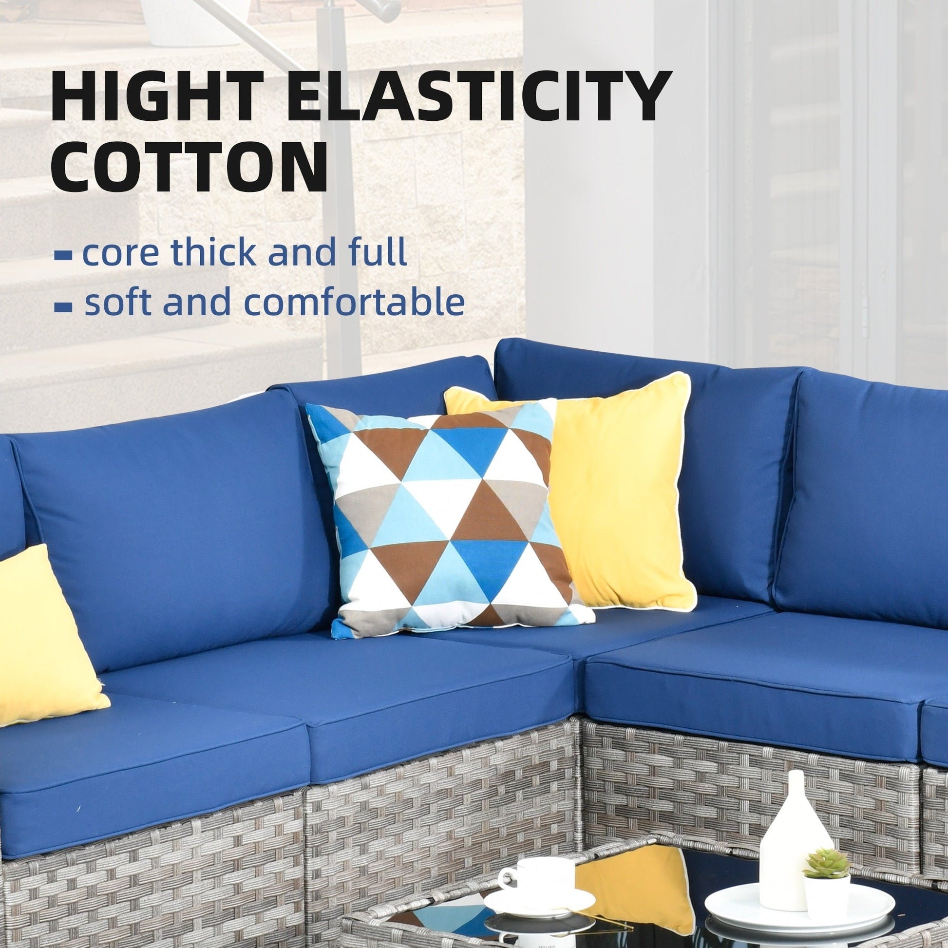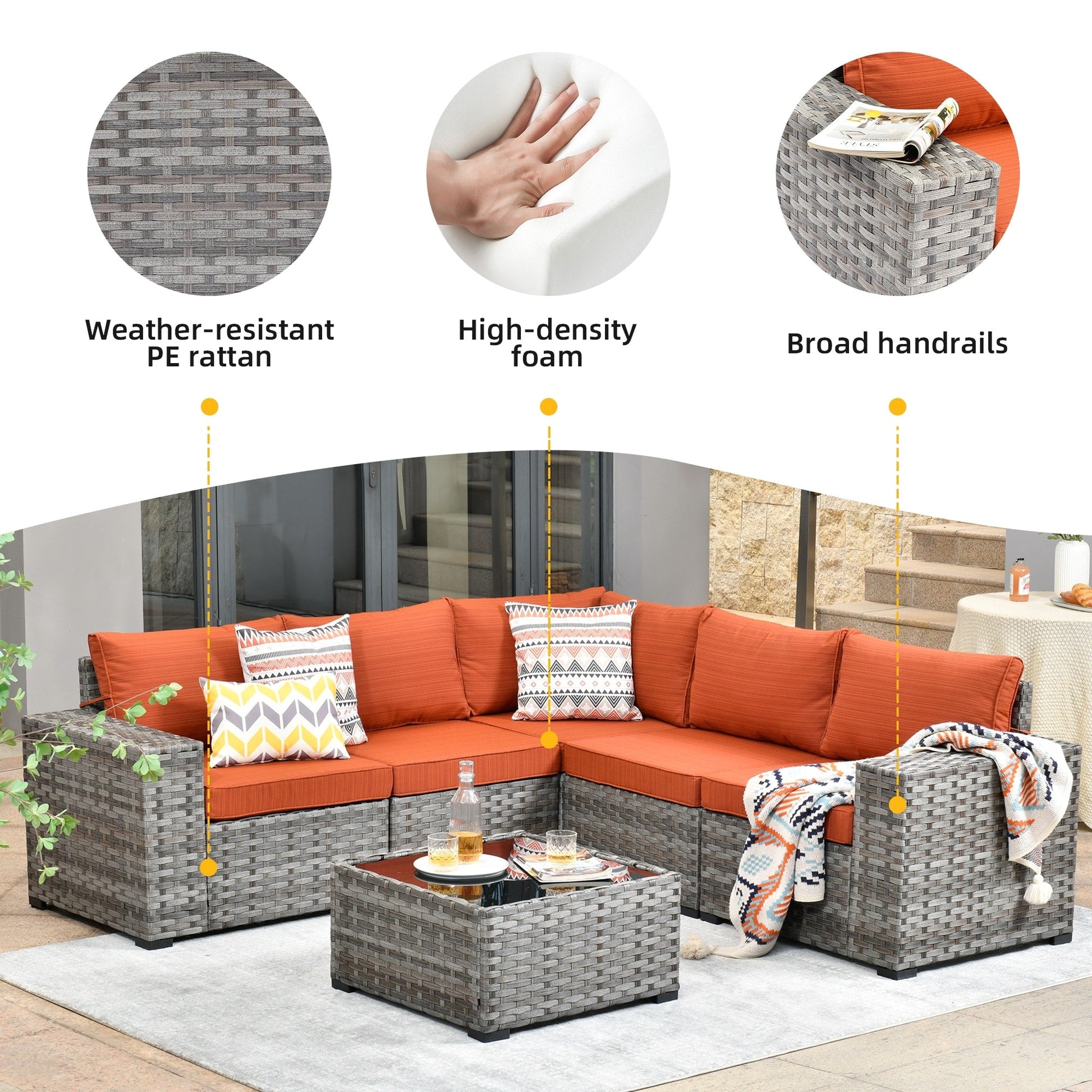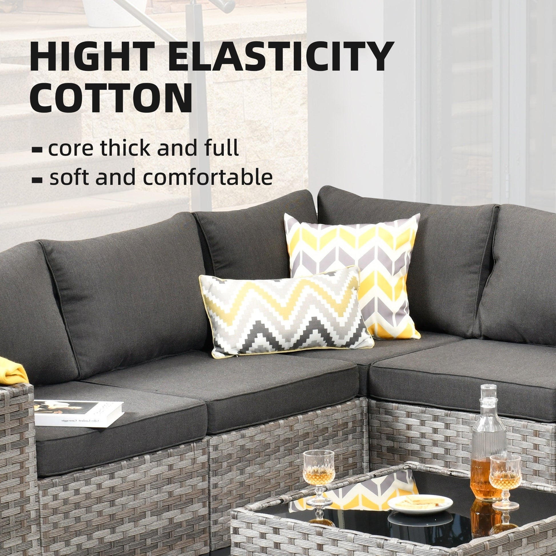 Trasforma il tuo spazio esterno in un rifugio lussuoso con il nostro elegante set di divani da esterno in vimini da 6 pezzi. Sapientemente realizzato con ampi braccioli e cuscini in tessuto Olefin, questo sofisticato set è progettato per offrire comfort e stile senza pari al tuo patio, giardino o bordo piscina.