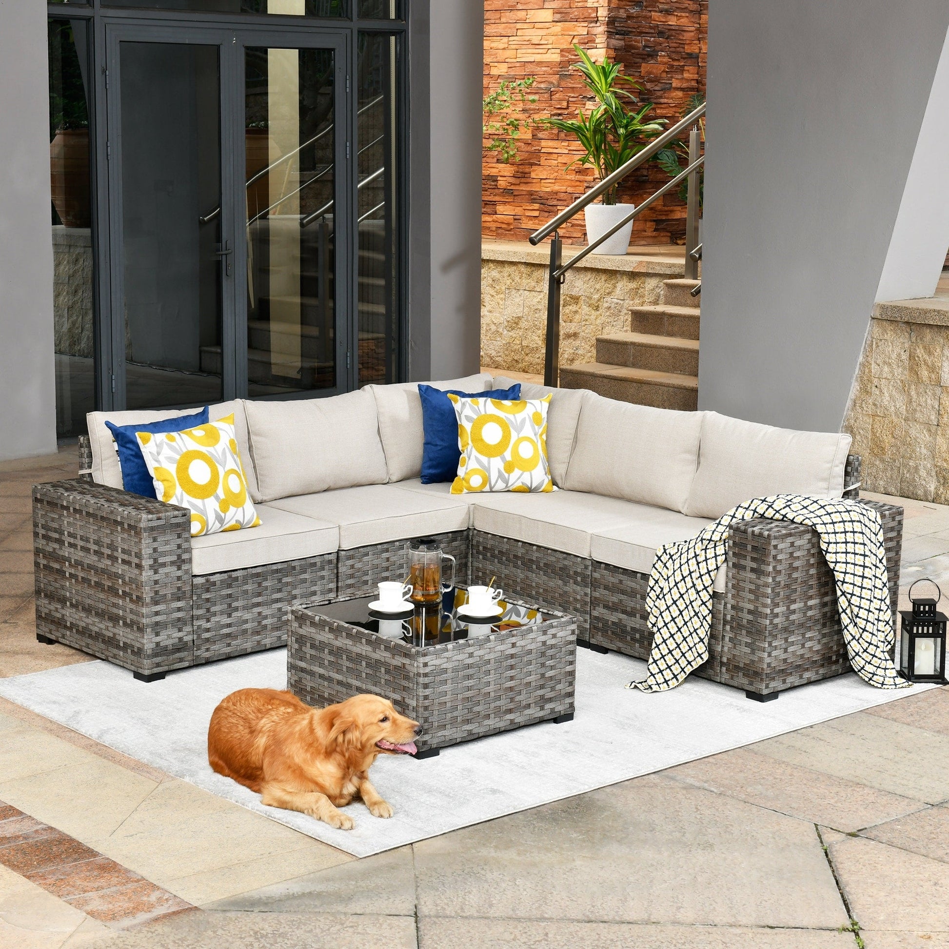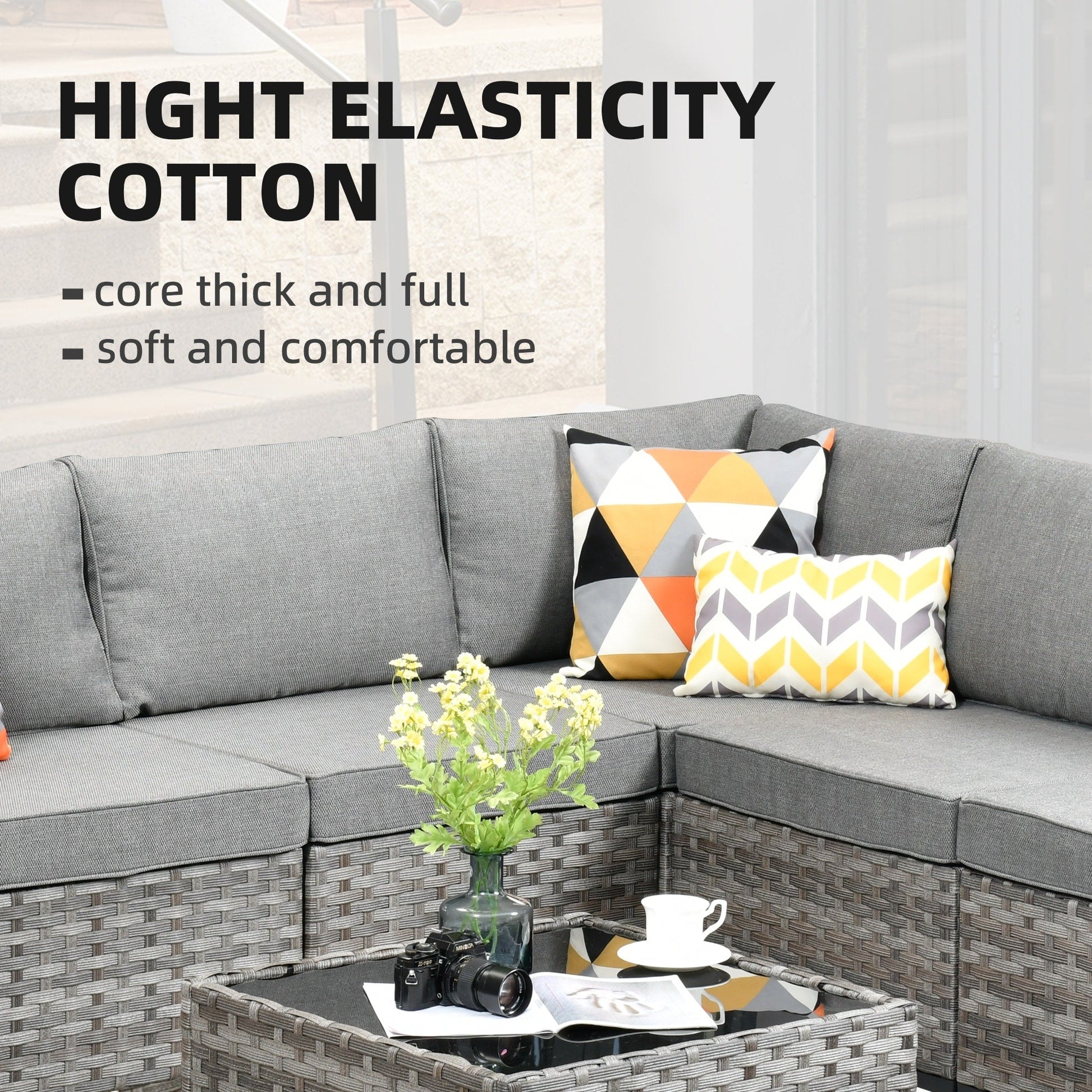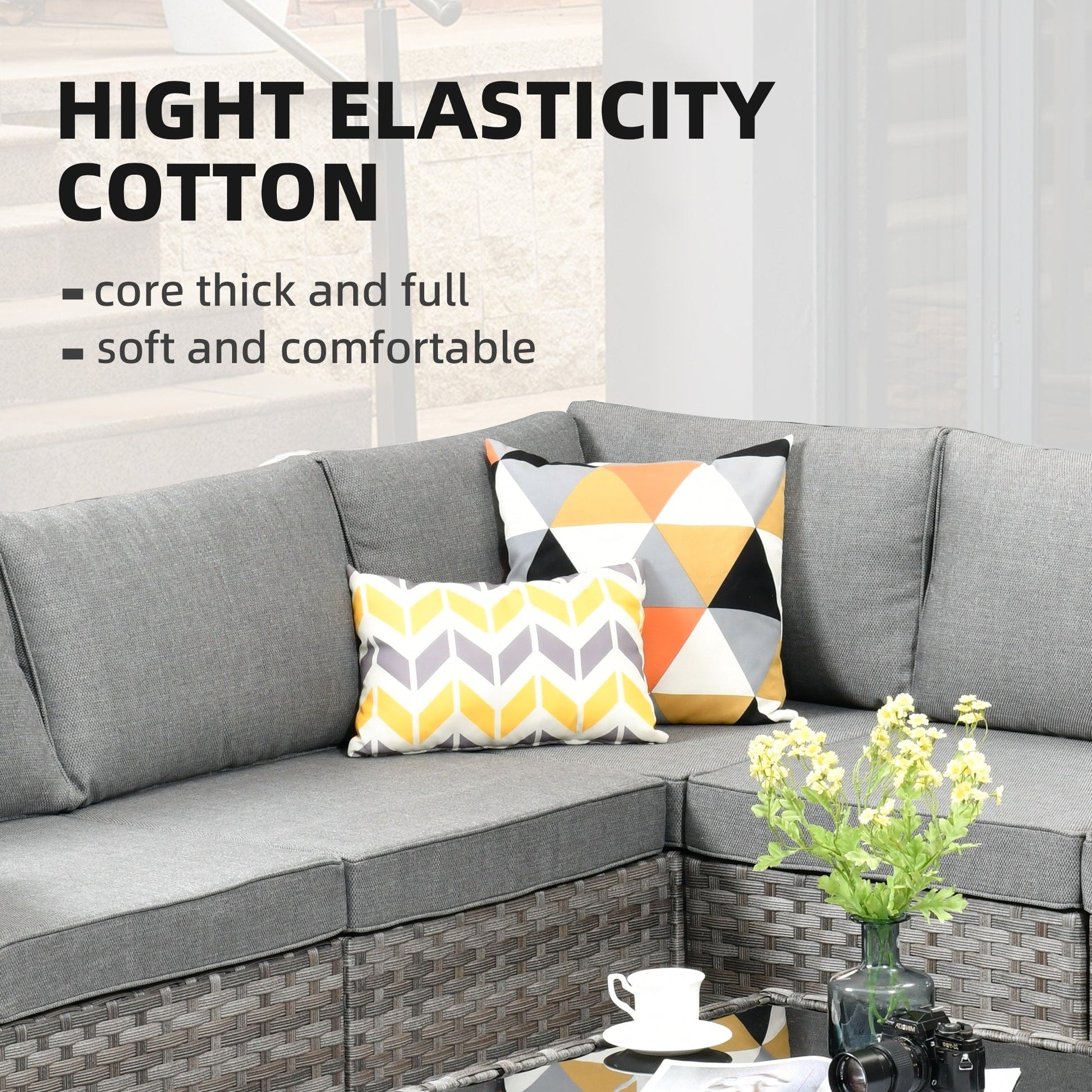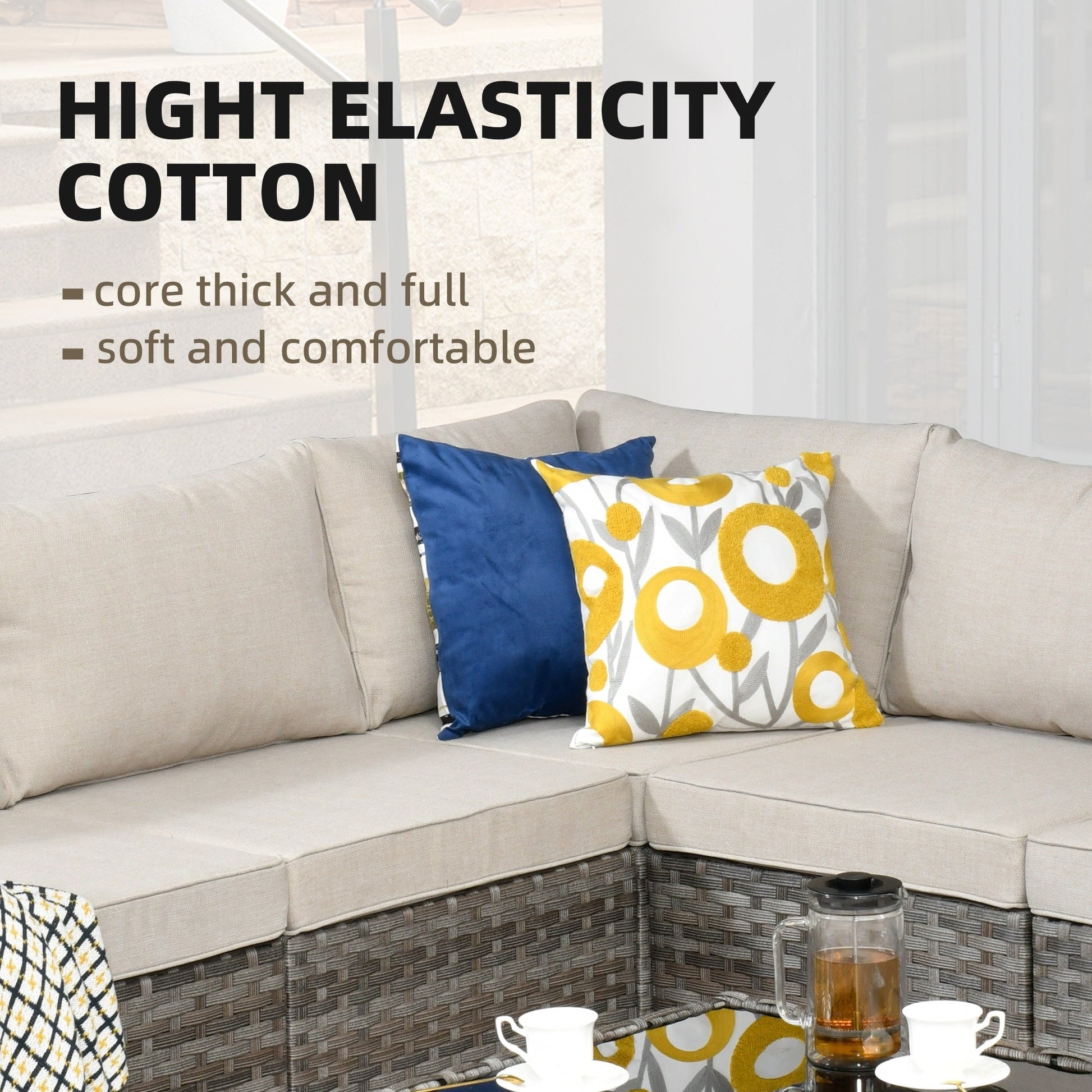 Trasforma il tuo spazio esterno in un rifugio lussuoso con il nostro elegante set di divani da esterno in vimini da 6 pezzi. Sapientemente realizzato con ampi braccioli e cuscini in tessuto Olefin, questo sofisticato set è progettato per offrire comfort e stile senza pari al tuo patio, giardino o bordo piscina.